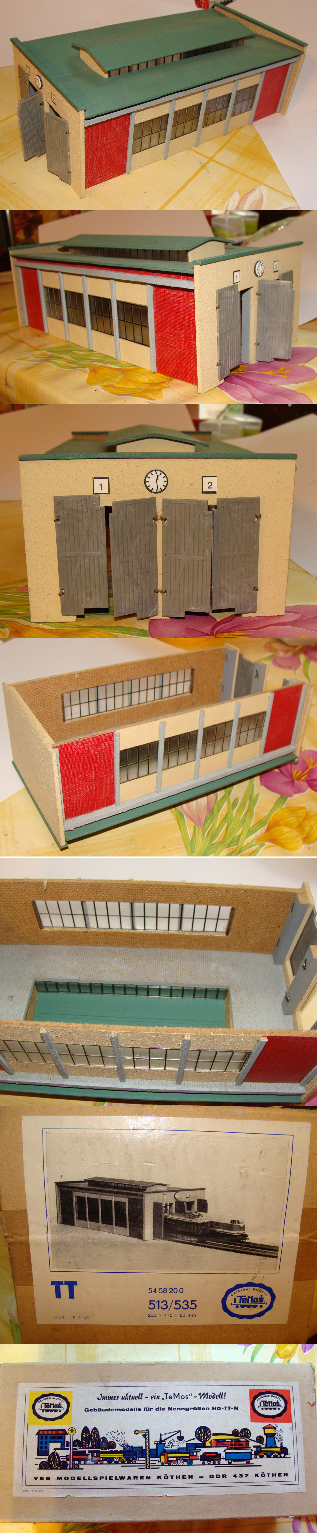 Автор: неизвестен Источник: Р.Мишин Тип файла: jpg. Объем файла: 1.247 Mb Фотографии редкой модели - тепловозного депо производства малоизвестной фирмы "TеMos" (ГДР). Стенки выполнены из материала, напоминающего крышки посылочных ящиков советского периода. Окна выполнены из оргстекла толшиной 2-3 мм., причем перемычки между стеклами объемные. Петли на воротах металлические. Прототип очень напоминает строения, встречающиеся на отечественных железных дорогах. Из коллекции Романа Мишина.