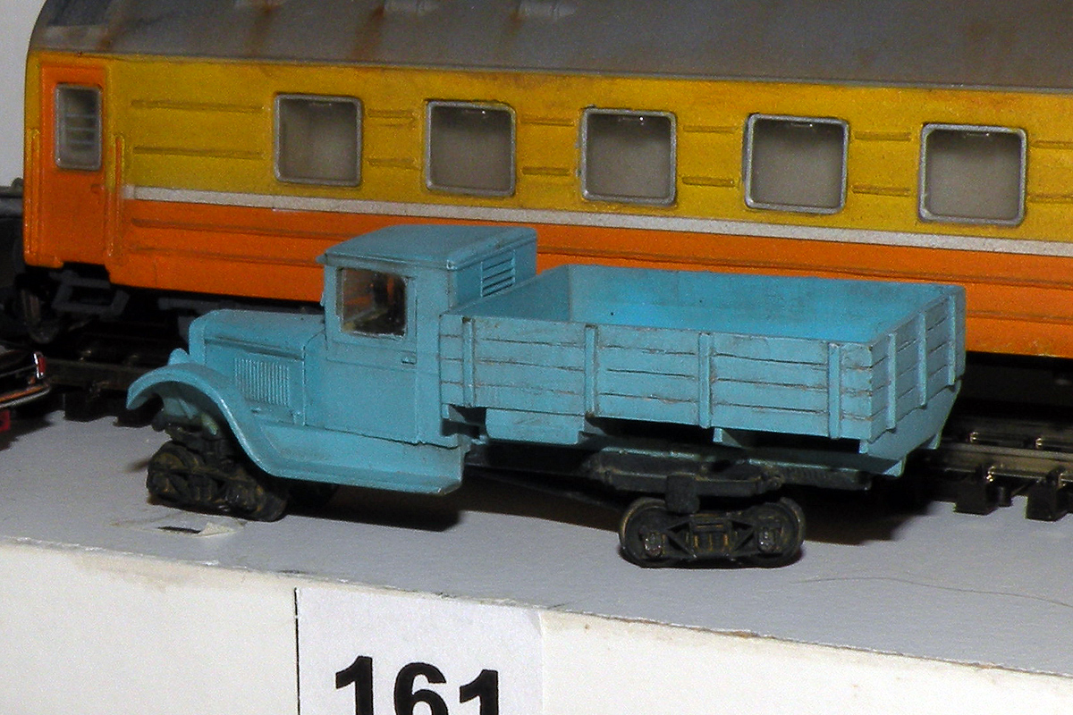 Эпоха: IV Фирма-производитель: Ватаев А. Год начала производства: 2014 Описание моделиДве модели узкоколейных дрезин в типоразмере ТТе были впервые представлены петербургским моделистом Андреем Ватаевым на выставке "Железнодорожная модель. Искусство железнодорожного моделизма" в Центральном ж.д. музее (СПб) в марте 2014 г. Первая модель - дрезина на базе трактора ДТ-54. Для её изготовления использована модель трактора в масштабе 1:120 от украинского производителя. Вторая модель - дрезина на базе автомобиля "Волга" ГАЗ-24 (использована модель в масштабе 1:120 от фирмы "HERPA"). В 2016 г. А.Ватаев представил третью модель - дрезину на базе грузового автомобиля ЗИС-5. Использован пластиковый кузов модели-склейки производства фирмы "Звезда". Описание прототипаСтатья А.Ватаева "Сухопутная «баржа» или «Волга» на рельсах" с описанием прототипа и модели дрезины на базе "Волги" ГАЗ-24.