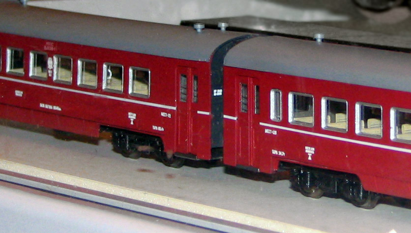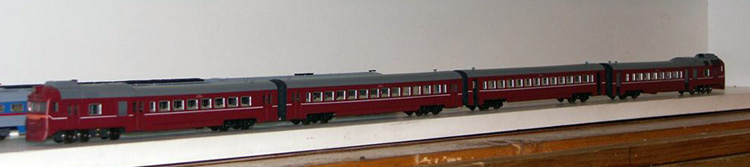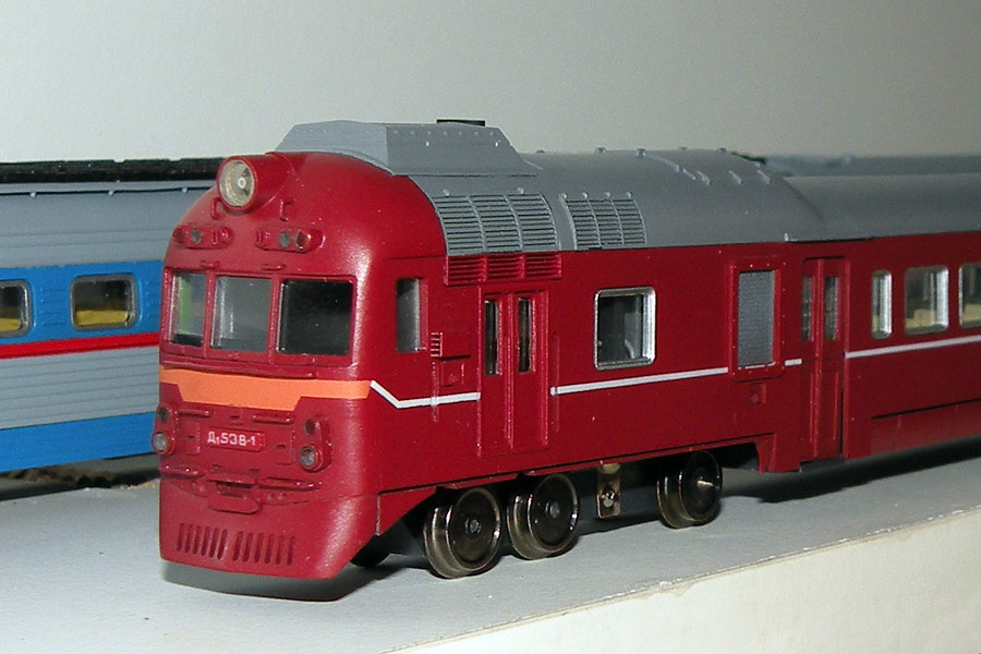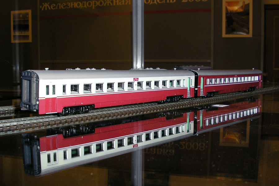 Разновидности: две окрасочные разновидности; номерные разновидности; моторные и немоторные модели; модели, различающиеся степенью деталировки. Эпоха: IV Принадлежность: СЖД. Фирма-производитель: ТТ-ТТ. Год начала производства: выпуск модели отменен Описание моделиМодель дизель-поезда Д1 была заявлена в производственной программе творческого объединения "ТТ-ТТ" (г. Саров Нижегородской обл.) в 2007 г., а в марте 2008 г. на выставке в ЦМЖТ появились предсерийные образцы прицепных вагонов (пока на неродных тележках). Модели отличаются высочайшей степенью деталировки. В 2009 г. были предствлены (также в неполной степени готовности) головные вагоны, в результате чего модель 4-вагонного поезда экспонировалась в полной составности. В 2010 г. та же модель была представленна с нанесёнными надписями, но пока без тележек. Детали моделей-прототипов были изготовлены из АБС-пластика методом фрезерования. В вагонах были сделаны интерьеры и открывающися двери, головной вагон имеет переключающеийся в зависимости от направления движения свет буферных фонарей (белый - красный). Для соединения вагонов использовались неразъёмные соединения. Было предусмотрено наличие встроенных декодеров для цифрового управления. Предполагался выпуск небольшой серии 4-вагонных составов (ок. 30 единиц) в разных версиях: от моторного поезда с повышенной деталировкой (наиболее дорогой вариант модели) до стендового поезда с упрощенной деталировкой (более дешевый вариант). Однако вскоре обннаружилось, что из-за ошибок, допущенных при проектировании модели, корпуса вагонов первой партии подверглись деформации. Производитель потерял к модели интерес, и её выпуск был отменён. Другие модели дизель-поезда Д1: - от Юрия Кацапова; Описание прототипаДизель-поезд Д1 выпускался в Венгрии и в рамках экономической интеграции социалистических государств поставлялся в СССР. Он широко использовался в пригородном и междугородном движении на неэлектрфицированных линиях Прибалтийской, Московской и ряда других ж.д. европейской части СССР. До сих пор эти поезда можно встретить в работе в России и на Западной Украине. В железнодорожные музеи попали фрагменты двух дизель-поездов Д1: головной вагон Д1-719 в Петербурге; головной и прицепной вагоны Д1-538 - в Москве.