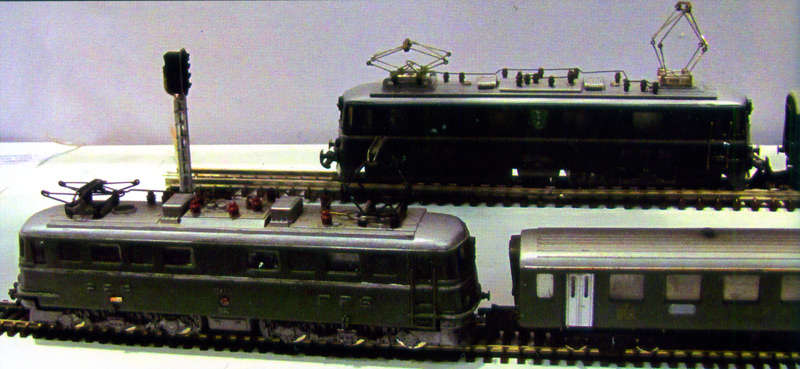 Вверху: электровоз типа Ае6/6 Швейцарских ж.д. WESA, Швейцария, 1958-1966 гг. Внизу: электрооз того же типа с пассажирским вагоном Швейцарских ж.д. Rokal, ФРГ. 1965-1969 гг.
