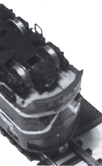 Автор: Р.Мишин. Источник: "Локотранс", 2006, № 3. Не секрет, что ходовые качества пересветовских локомотивов, особенно последних 2-х лет выпуска оставляют желать лучшего, Не будем вдаваться в причины почему это происходит. Согласитесь, конечно, проще высказывать претензии по качеству изготовления и говорить, "мол это не так", "то -не эдак" и т.п. Я не ставлю своей задачей опорочить отечественного производителя моделей в ТТ. Ведь именно усилиями этой фирмы в России возникло полноценное и стабильное производство моделей железных дорог нашей отечественной тематики, причем, именно, тяги. Надеюсь эта публикация поможет вылечить некоторые болезни вполне неплохих по замыслу моделей. У меня в коллекции 9 секций ТЭЗ-ТЭ7. Эксплуатируются от 4 лет до 6 месяцев. Первый тепловоз был принят в эксплуатацию в конце 2001 г,. По своим ходовым качествам оказался весьма хорош и не потребовал каких-либо доводок, смазал только силиконовой смазкой узлы трения машины, С остальными дело обстояло по-разному: ТЭ-3, купленный полгода спустя ехал поначалу вяло, напряжение трогания было около 7,5 В. Достаточной тяги локомотив развивать никак не хотел. Ему в противоположность маневровый ТЭЗ, купленный в ноябре 2002 г., наоборот является одним из лучших, по качеству хода, локомотивов в моей коллекции. Остальные его собратья, купленные в 2003-2005 гг. поначалу совсем не хотели ехать. При попытке тронуться, внутри достаточно долго что-то хрустело и визжало, прежде чем модель начинала движение. Ставить в запас или на полку конечно не хотелось. Проанализировав такое несхожее поведение, напрашивается следующий вывод: Конструкция модели здесь ни причем! Скорее всего - дело в некачественной сборке или наличие дефекта в деталях. Дальнейшие опыты над тепловозами только подтвердили вышесказанное. Разобрав все секции, для чего нужно открутить два винта около топливного бака, я выстроил их в порядке убывания качества хода и подверг досмотру с пристрастием. Рекомендации владельцам и производителям у меня получились следующие, и их я предлагаю вниманию читателей ЛТ: 1. Для начала: если модель не хочет ехать, или едет не так как Вам бы хотелось, необходимо ее полностью разобрать. Снимаем корпус, затем маломощным паяльником отпаиваем провода питания с токосъемных полозьев тележки. Затем аккуратно снимаем поддоны тележек, так, чтобы случайно не обломить защелки, особенно со стороны сцепок. Вытаскиваем колесные пары и две малые шестеренки. 2. Тщательно осматриваем колесные пары, так как именно здесь начи¬наются препятствия плавному и спокойному ходу машины. Прежде всего, обращаем внимание на ведущие пары с шестеренками. На разных экземплярах мне довелось видеть шестерни пар из различных материалов. На последнем месте – материал серо-синий пластик. Мне попались две пары с такими шестернями и еще 4 таких же тележечных шестерни. Благодаря наличию запчастей, они были благополучно изъяты из состава действующих локомотивов. Вышесказанное относится и к другим шестерням в тележке. Пара с латунной шестеренкой. Локомотив с такими деталями будет производить при движении повышенный шум, если на шестерне есть заусенцы и неровности. Можно попробовать уменьшить шум. Для этого придется довести самым тонким надфилем форму зубьев до «идеальной». Надо сказать, что некачественное изготовление шестерен с дан