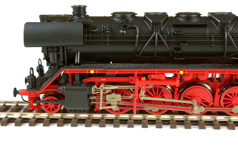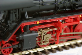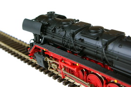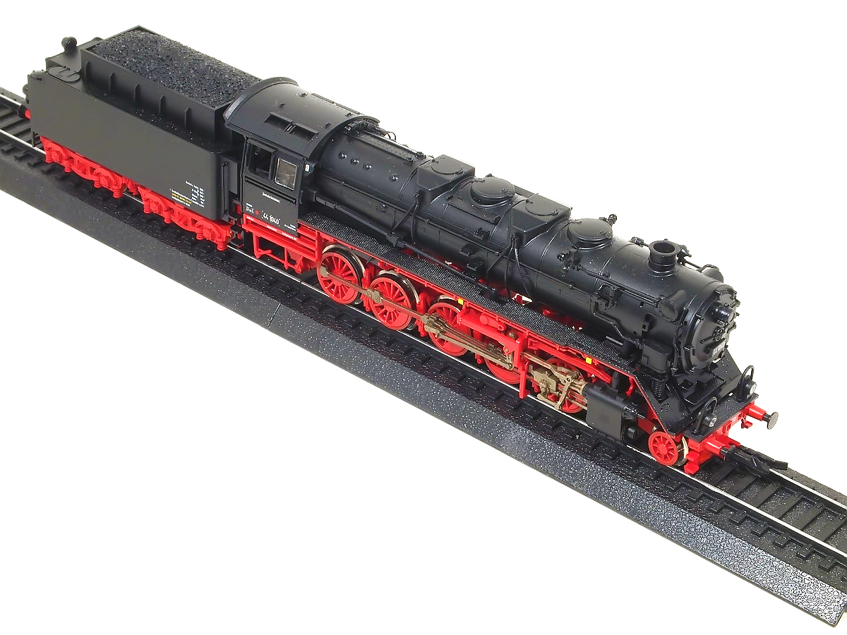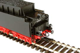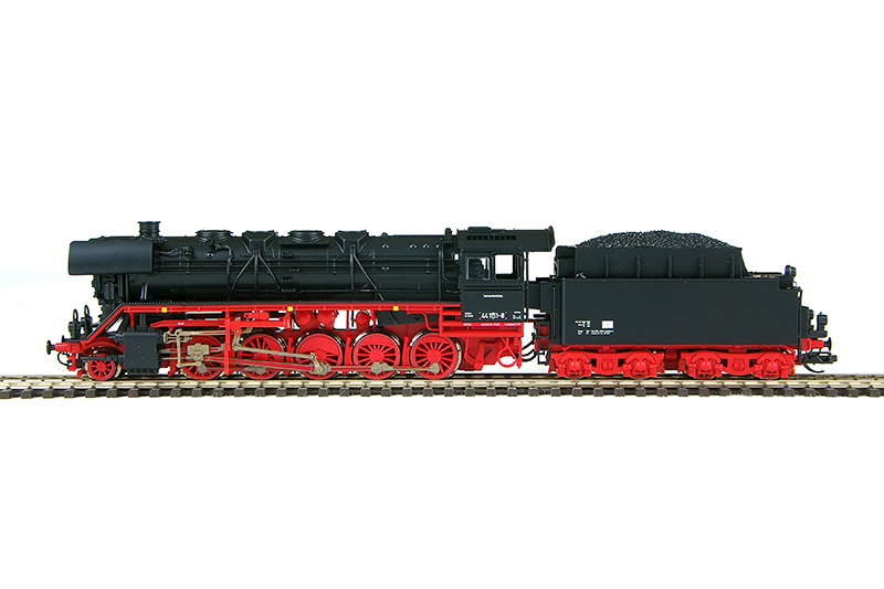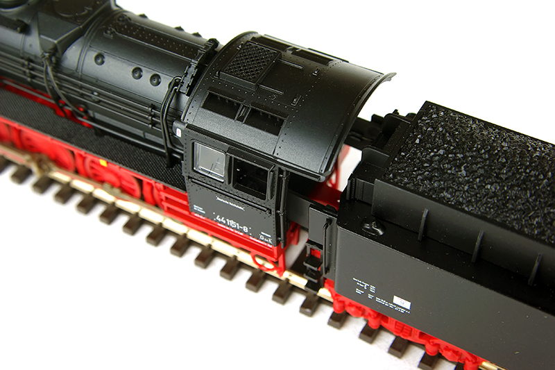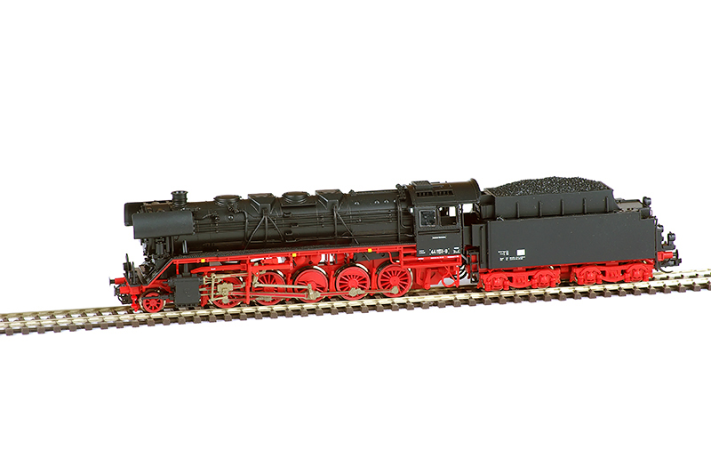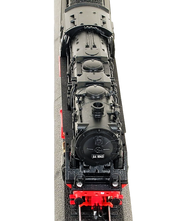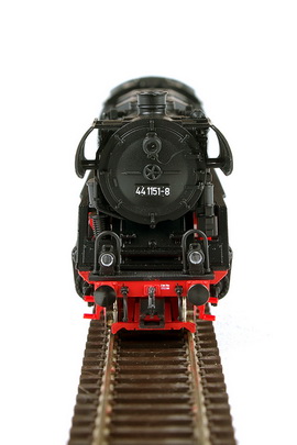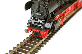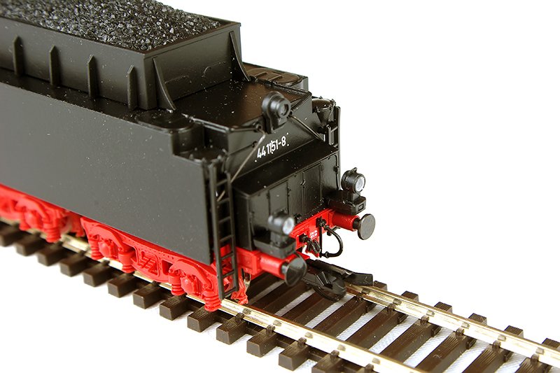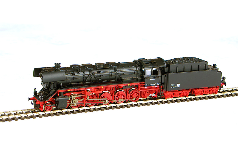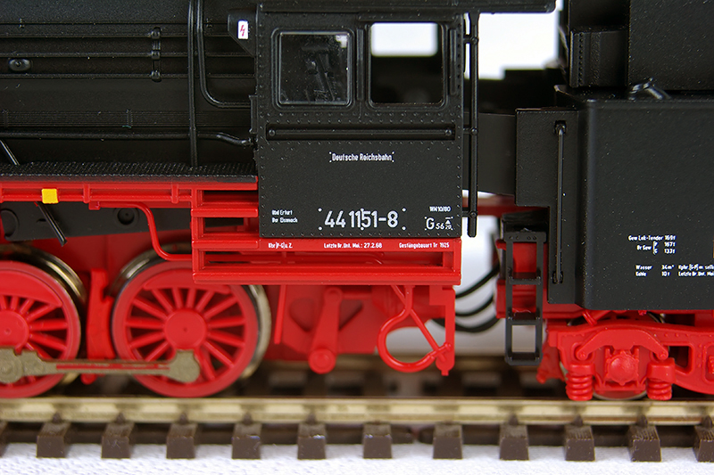 Автор: C.Гуцу. Фото С.Гуцу Предлагаю Вашему вниманию обзор модели паровоза BR-44 в типоразмере ТТ производства Австрийской фирмы ROCO. Данную модель ждали давно. Компания анонсировала ее выпуск еще почти за год до начала продаж, причем обещала при этом небывало низкую для Европейских производителей цену на уровне 175 Евро, что являло собой тоже своего рода маленькую сенсацию, ибо "большие" паровозы 50-й и 52.8-й серии от Тиллига в то время стоили на уровне 225-250 Евро. Конечно в итоле цена оказалась немного выше обещанной но не намного. Всего на 15 евро. Модель анонсирована была изначально в сразу двух версиях: 36010 с дымоотбойниками Вагнера – III эпоха и 36011 c дымоотбойниками Витте IV эпоха. Позже фирма расширила ассортимент модификаций данного локомотива и к этим двум добавились 36012 (DR IV эпоха), 36013 (DRG II эпоха), 36014 (DR III эпоха).  Героем нашего обзора стала модель 36011. Модель упакована в стандартную для моделей ROCO синюю коробку с ложементом из темного мелкозернистого поролона. Думаю, останавливаться на упаковке не стоит, ибо она стандартна и знакома наверное всем, кто как-либо знаком с продукцией фирмы ROCO. Внутри упаковки находился пакетик с накладными деталями, инструкция к модели, листок с перечнем запчастей и, собственно, сама модель.   Модель оснащена пятиполюсным мотором с маховиком, размещенным в тендере и 6-ти штырьковым разьемом под декодер по стандарту NEM651. Разъем установлен вертикально, поэтому для установки декодера придется согнуть его ножки под прямым углом, либо воспользоваться угловым переходником, как в Тиллиговской модели паровоза 50-й серии. Также у данной модели работает освещение спереди и сзади, которое включается в направлении движения модели. Освещение трехточечное. Модель имеет очень плавный и очень тихий ход. Это одна из самых тихих моделей, попадавших ко мне в руки. Мотора почти не слышно даже на полном ходу локомотива. Основной шум при движении это шум от колес во время движения по рельсам.  Длина модели по буферам равна ровно 190 мм. Локомотив немаленький. Отмечу также что и масса днного локомотива тоже заставляет проникнуться уважением. Легонькой модель не назовешь. Вес модели вместе с установленными на нее накладными деталями равен 265 грамм. Корпус модели локомотива изготовлен из пластмссы, а корпус тендера из металла. Сам корпус тендера одновременно является и балластом. Детлировка модели выполнена на очень высоком уровне. Множество элементов конструкции выполнены в виде отдельных деталей. Литье очень качественное без малейших намеков на облои. Накладные детали из пакетика представляют собой дополнительную сцепку для установки в передней части модели по желанию, кожухи шатунов паровых машин и тормозные шланги с винтовыми упряжьями для установки на буферные брусья. В инструкции к модели фирма предупреждает, что установка данных деталей может привести к увеличению минимального проходимого радиуса кривой. Я их установил, ибо не люблю кривые малого радиуса, да и с данными деталями модель смотрится эффектнее.    Довольно неплохо проработан также и интерьер кабины машиниста. Единственный элемент модели,который вызывает легкое недоумение, это уж очень сильно отстоящие от корпуса тендера назад задние буферные фонари. Будь они хоть на 1,5-2 мм ближе к тендеру, они бы не смотрелись столь вычурно.  Окраска выполнена весьма акку