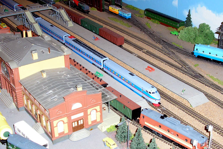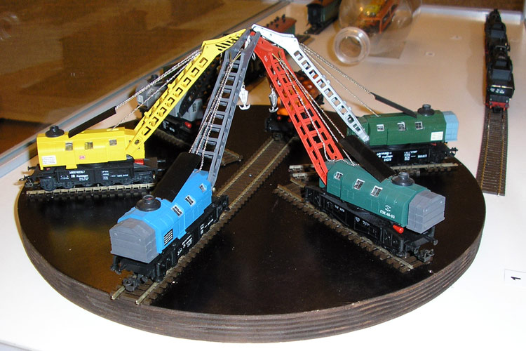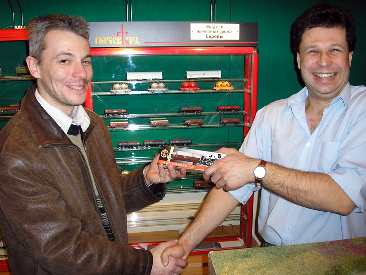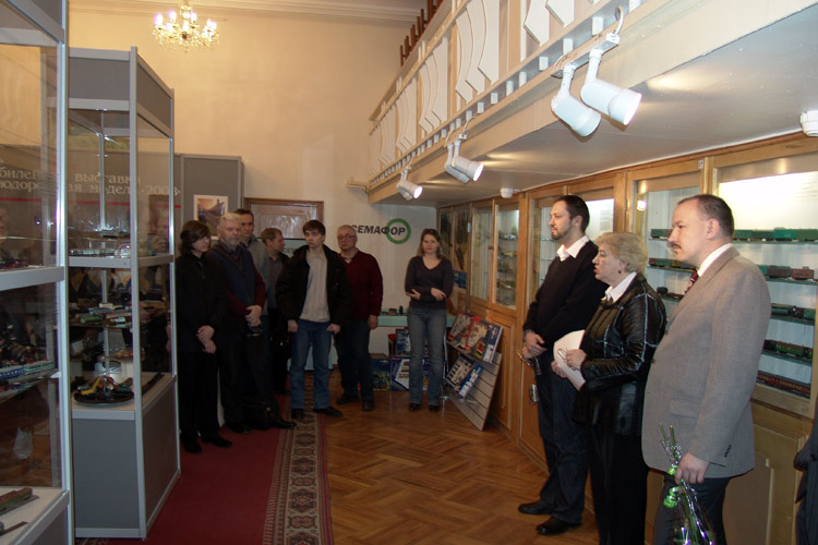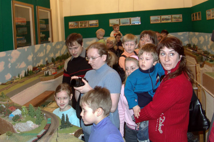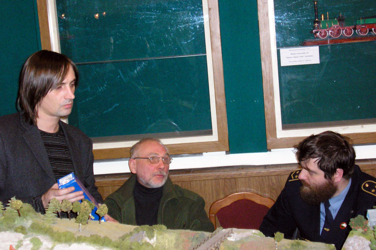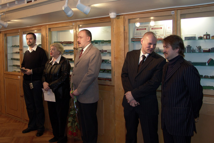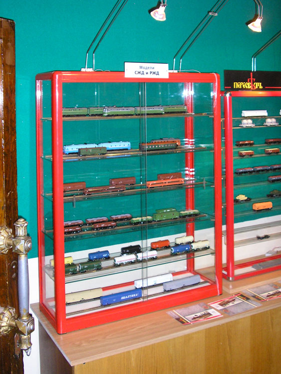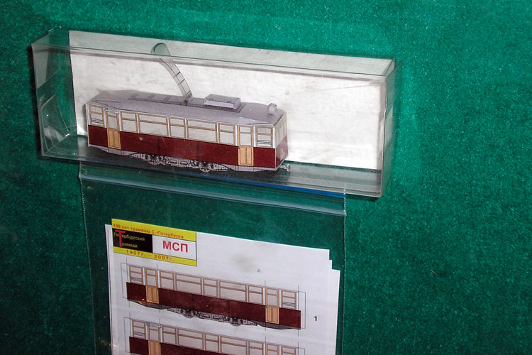 Автор: И.Сергеев. В последний день весенних каникул, 31 марта, в 15.00 состоялось торжественное закрытие 15-й юбилейной выставки "Железнодорожная модель-2008" в Центральном музее железнодорожного транспорта, Петербург. По традиции предлагаем Вашему вниманию перечень экспонировавшихся моделей отечественного подвижного состава в типоразмере ТТ. 1. Мелкосерийные производители. - "TT-TT" (Саров, Нижегородская область): 67-тонные и 72-тонные вагоны-хопперы для перевозки цемента в различных вариантах окраски и принадлежности; прицепные вагоны дизель-поезда Д1 (предсерийные модели, экспонировались впервые); - "Modellmix" (Москва): тепловоз ТЭП70БС (модель из коллекции И.Сергеева); - "Мodelldepo" (Москва): паровозы ТЭ в различных вариантах (модели из коллекций В.Дёмина и А.Земскова); агрегатный вагон рефсекции ZB-5 бежевый (модель из коллекции И.Сергеева); - "Karsei" (Германия): тепловоз ТГК2 (модель из коллекции И.Сергеева); - "Gonchar TT" (Украина): 4-осные полувагоны с деревянными бортами и с металлическими откидными бортами; - "ES" (Чехия): путеукладчик УК25 (модель из коллекции И.Сергеева). 2. Моделисты-самодельщики. Блазнин Александр (Москва): тепловоз 2М62 (конверсия на основе моделей М62 от "Пересвет", из коллекции И.Сергеева). Ватаев Андрей (Санкт-Петербург): тепловоз ДГ14-1 (конверсия модели от ВТТВ); вагон-путеизмеритель КВЛ-П1 (конверсия на базе ЦМВ от «ТТ-Модель»). Дёмин Виктор (Санкт-Петербург): багажный "егоровский" вагон (модель в работе, экспонировалась впервые); пригородный "егоровский" вагон; "столыпинский" вагон (экспонировался в составе мини-диорамы "погрузка арестантов"); экспозиция "все краны "Пересвета" (включала 6 кранов ПЖ-45, включая модель в уникальной серой раскраске, не пошедшая в серию); юмористическая экспозиция "вагон в бутылке". Дерунов Владимир (Санкт-Петербург): вагон-гараж пожарного поезда и 16-осный транспортер с грузом (обе модели экспонировались впервые); Загребельский Алексей (Москва): тепловоз ТЭ109 (конверсия на основе модели тепловоза серии 130 от ВТТВ); две 4-осных платформы для перевозки контейнеров (с контейнерами от "ROCO" и от "ТТ-Модель"); 4-осные полувагоны с неразъемными бортами в разной окраске (модели выполнены с участием О.Волузнева); 4-осный вагон-скотник (все модели - из коллекции И.Сергеева) Кечетов Михаил (Москва): паровоз Нв; паровоз Ок; паровоз С; два односекционных оранжевых тепловоза ТЭ7-22 и ТЭ7-034; двухсекционный сиреневый тепловоз ТЭ7-064 (модель экспонируется впервые; все ТЭ7 - конверсии на основе моделей от "Пересвет"); тепловоз Дг14-1 (конверсия на основе модели от ВТТВ); две автомотрисы АС1А (конверсия моделей от "Пересвет"); две автомотрисы Уа; мотовоз М3/2; 50-т крытый товарный вагон (модель самостоятельного изготовления); вагон для перевозки скота; две двухосные цистерны СЖД (бензин, нефть); вагон-путеизмеритель (модель экспонировалась впервые); кран КДЭ-151/161 с подкрановой платформой; два разных вагона ПМС (РЖД, Бел.); путевая машина ВПР-1200 (модель экспонировалась впервые); снегоуборщик ЦУМЗ; снегоочиститель-плуг Мишин Роман (г.Нахабино, Московская область): электровоз ЧС3 (конверсия модели ЧС1 от ВТТВ); состав фирменного поезда «Тихий Дон» (старотипные купейные вагоны, плацкартный вагон, вагон-ресторан - конверсия моделей ЦМВ от «ТТ-Модель»); паровоз ТО (конверсия модели от «Tillig» на новой ходовке); состав хозяйственного поезда из трофейного подвижного состава (цист