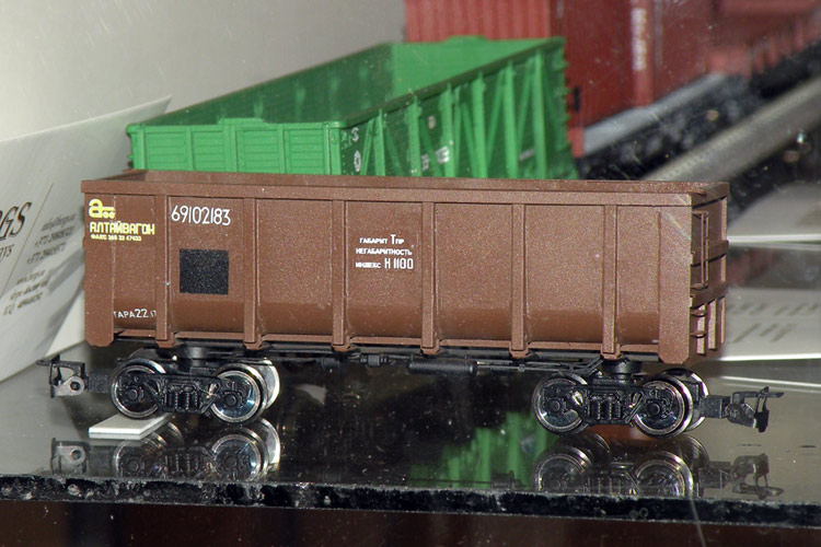 Кадр 10. Но, возможно, больше всего не повезло этому полувагону: он не просто оказался задвинут в угол на полку чужого типоразмера (Н0), но и получил в качестве "подарка" визитку фирмы Bergs, не имеющей к ниму никакого отношения. А ведь это наш (12mm.ru) первый малосерийный проект, разработанный совместно с фирмами "Норкин-Модель" и "Б.В.-Ж.Д."