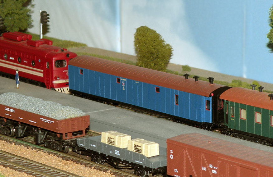 Кадр 4. Ещё одна авторская работа от В.Дёмина - почтовый "егоровский" вагон (на выставке был представлен в двух таких же окрасках, что и мягкий).