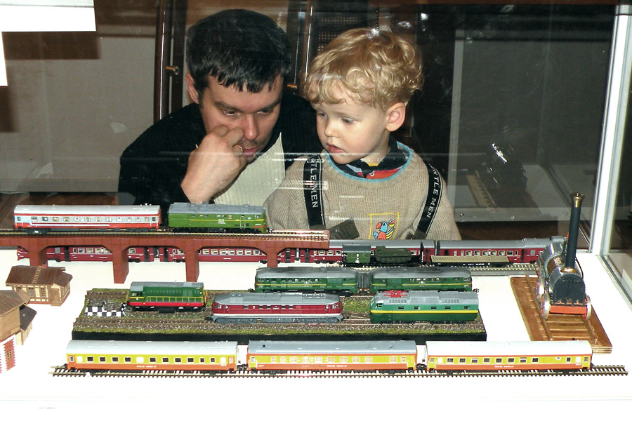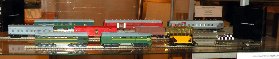 Кадр 8. Мануфактура "Норкин-Модель" впервые выставлялась в Петербурге, и поэтому её витрина, хотя и не отличалась размерами, вызывала у посетителей большого зала особый интерес (лидеры по популярности - модели агрегатного вагона рефсекции ZB5 и тепловоза 2ТЭ116). Хотя многим экспонатам и витринам не досталось на этой выставке своей поясняющей этикетки, фирма "Норкин-Модель" от этого не пострадала: ее полочку украшали изящные мини-проспекты с разборчивой надписью "Норкин-Модель".