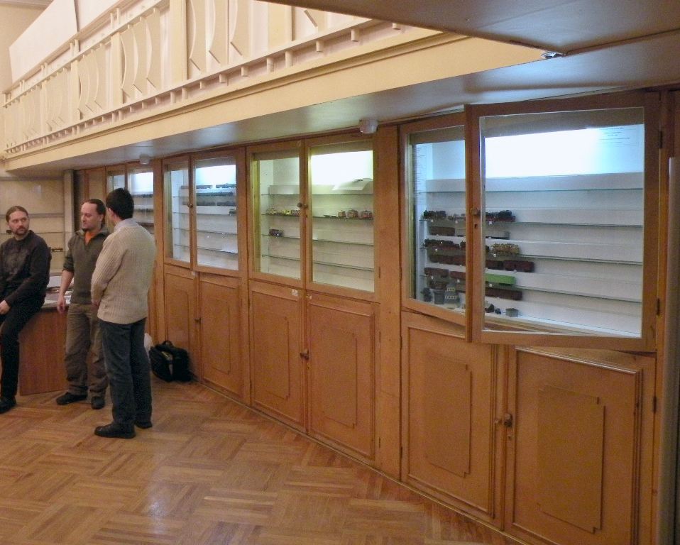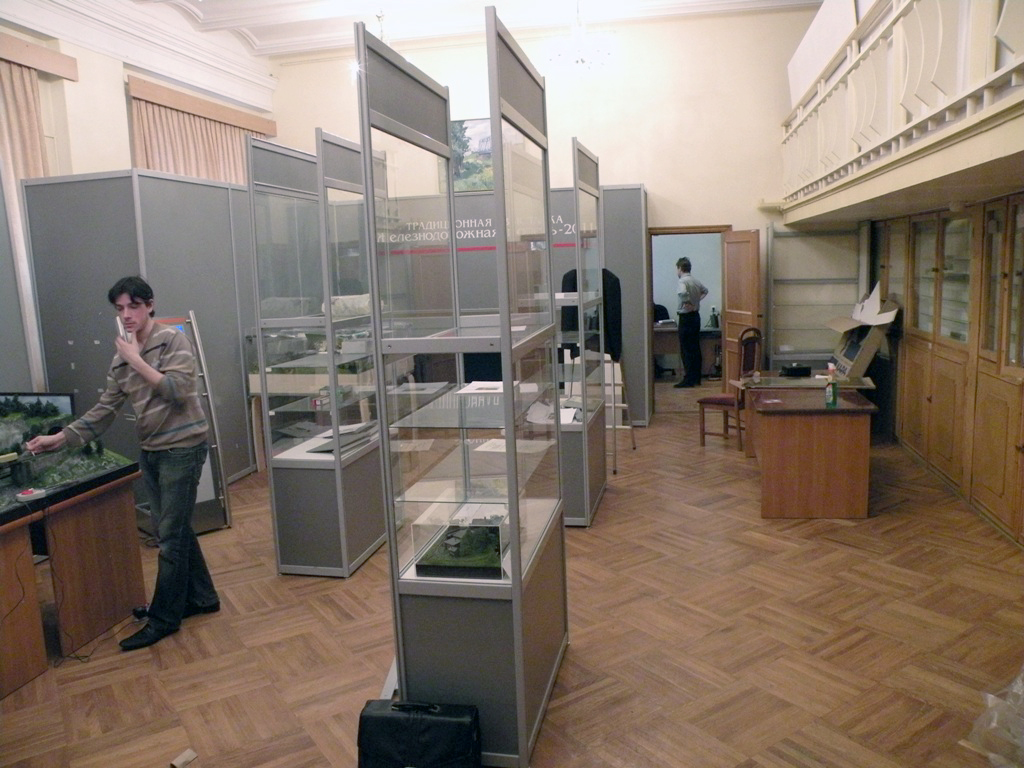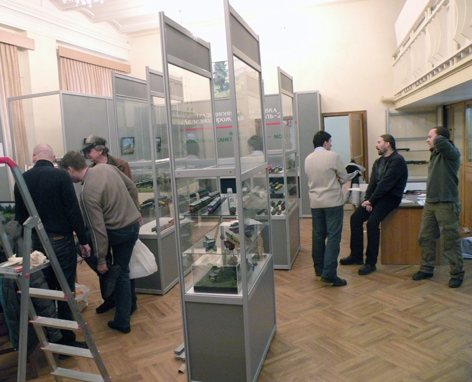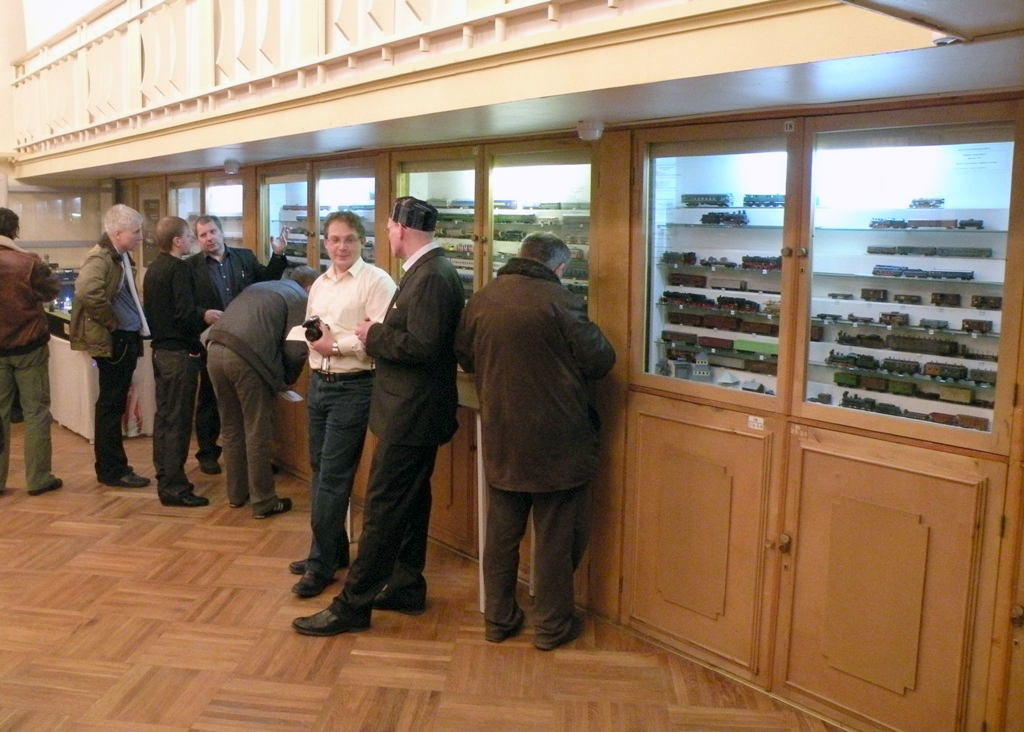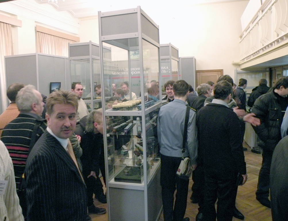 Автор: И.Сергеев. 26 марта в 13.00 состоялось торжественное открытие 19-й традиционной выставки «Железнодорожный моделизм – 2011» в Центральном музее ж.д. транспорта, Санкт-Петербург. На открытии выступили: от музея - директор Г.П.Закревская и зам.директора В.А.Морозов, от моделистов – Л.М.Москалев и И.С.Сергеев. Все отметили организованность участников, высокое качество и разнообразие представленных моделей. На выставку приехало около 450 моделей, примерно от 60 участников и 20 организаций. Представлены Россия (Петербург и область, Москва и область, Саров, Туринск), Украина (Донецк, Запорожье, Симферополь), Латвия, Чехия. С утра в день открытия прибыла большая делегация московских ТТ-любителей в составе: А.Андреев, С.Антонов и Д.Мамин (Клуб «Локторанс-ТТ-Центр»); И.Дерин и С.Животков (Творческое объединение «Б.В.-Ж.Д.»); А.Шалимов (Фирма BLO-DL); О.Баронов (магазин «Лейбъ-Компания»); С.Шугаев (Мануфактура «Норкин-Модель»); А.Нигиян. На открытии присутствовали также представители телевидения (Пятый Канал). В малом зале, как обычно, работает большой модульной макет «Пересвета» (в прошлогодней конфигурации). Здесь же продаются новинки «Пересвета» - мягкий «егоровский» вагон в зеленой окраске (арт. 2230), крытый 5-тонный вагон с тормозной площадкой III эп. (арт. 3514) и 4-осная бортовая платформа V эп. (арт. 3651). Как обычно, действует выставочна скидка – 10%. В большом зале – прекрасная экспозиция, по-видимому, лучшая за всю историю выставки. Очень много новинок, как в ТТ, так и в НО. Представлено восемь макетов и диорам, из них три макета – действующие, с движением составов и освещением. Одни из них в НО и два в ТТ (от «12mm.ru», построенный Л.Москалевым, отечественной тематики, и от магазина «Семафор», немецкой тематики). Ещё одна ТТ-диорама выполнена А.Райкерусом. Лежат визитки и календарики от новых производителей, среди них – «Холдинг Вагонзаводъ» и «МодельМаш» . От последнего представлен, в том числе, демонстрационный стенд, подойдя к которму, каждый может нажатием клавиш локмауса осуществить синхронное открывание и закрывание дверей в модельном вагоне метро. Одна из экспозиций посвящена памяти моделиста Вадима Воронина (1947-2011); её венчает незавершённая модель паровоза ФД, над которой Вадим работал в последний год своей жизни. Все его модели выполнены в типоразмере N. Вторая экспозиция посвящена 160-летию открытия движения по Николаевской ж.д. от Петербурга до Москвы. Здесь представлены модели составов, курсировавших (и курсирующих сейчас) по этой дороге, в типоразмере ТТ. Это пассажирские поезда «Красная Стрела» (три различные эпохи), «Смена», «Березка», ЭР-200 и «Сапсан». Здесь же установлен предсерийный образец малосерийной модели электровоза ЧС2т («Б.В.-Ж.Д.» совместно с «Норкин-Модель»). Привлекает внимание модель паровоза Су во главе состава «Красной Стрелы» 30-х гг. Паровоз выполнен Р.Мишиным (Москва), а сам состав – В.Дёминым (Петербург). Кроме этого, в типоразмере ТТ представлены модели, выполненные О.Балакиным (Туринск), А.Бахтиным (Москва), А.Ватаевым (СПб), К.Виноградовым (СПб), С.Дворниковым (Москва), С.Ивановым (СПб), М.Кечетовым (Москва), К.Лукмановым (Москва), А.Мурашовым (Наро-Фоминск), А.Норкиным (Москва), Д.Поповым (Саров), И.Сергеевым, Д.Телеповым (СПб); из коллекций И.Дерина (Москва), А.Толстикова (СПб) и А.Цаплева (СПб), С.Шугаевым (Москва), А.Яценко (Симферополь). В малосерийн