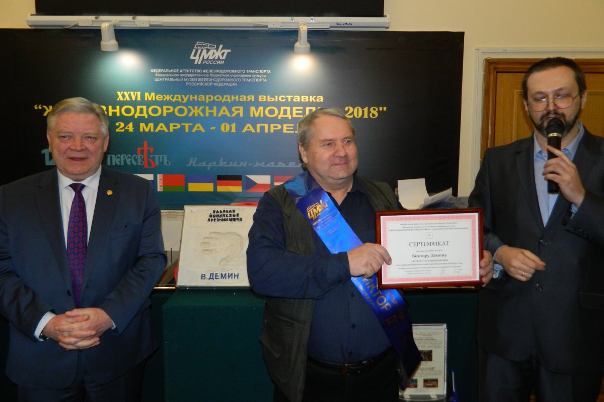 Дёмин Виктор Владимирович - известный петербургский моделист. Родился в 1951 г. Состоит в Ленинградском обществе коллекционеров. Коллекционировать модели начал в 1976 г. С 1986 г. первым в России начал самостоятельное изготовление ж.д. моделей по серийной технологии (литьё из пластика под высоким давлением). Первой серийной моделью стал ж.д. кран КДЭ-151/161, затем появилась модель 20.2-метрового пассажирского ("егоровского") вагона. Активно сотрудничает с фирмами "Пересвет" и "ТТ-Модель" с момента их основания; является членом творческого коллектива фирмы "Пересвет". Активный участок многих модельных выставок в Варшаве, Будапеште, Санкт-Петербурге, Москве; имеет конкурсные дипломы модельных выставок I-III степеней. Награжден медалью ВДНХ СССР. В 2018 г. был удостоен почётной Титульной Премии "За выдающийся вклад в развитие и распространение железнодорожного моделизма".