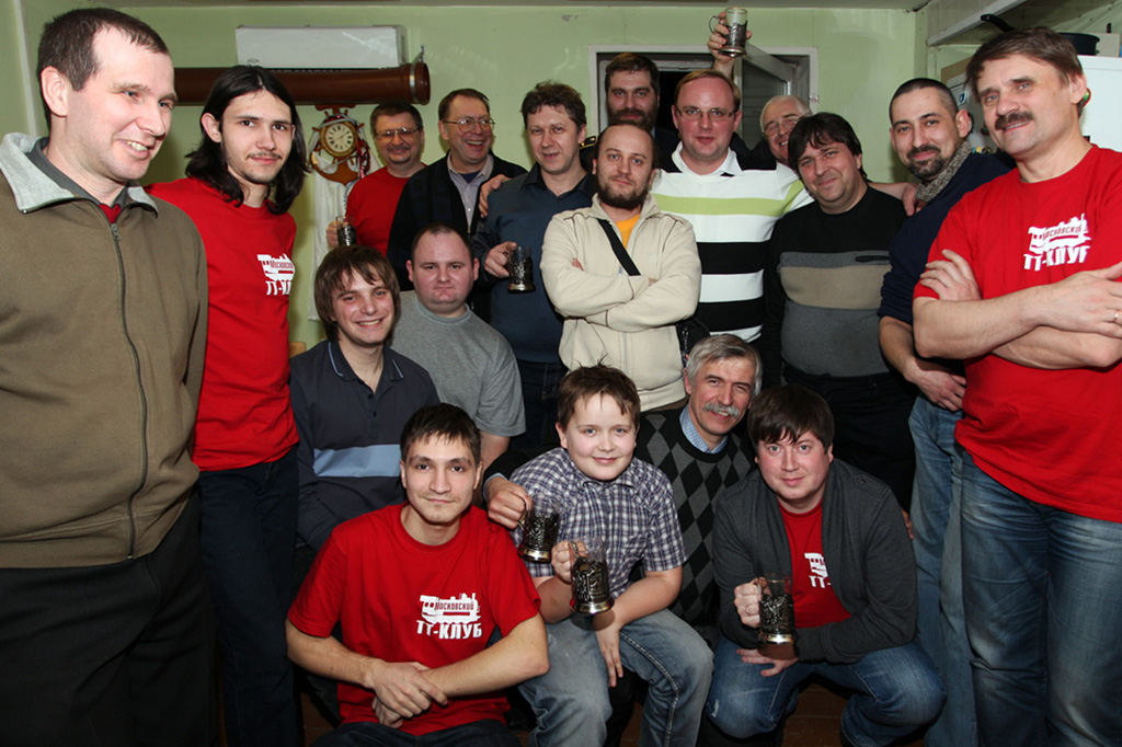 Московский ТТ-Клуб - добровольное самоуправляющееся творческое объединение любителей ж.д. моделизма в типоразмере ТТ центрального региона страны. Клуб открыт для посещения всеми интересующимися, и в его творческой жизни периодически принимают участие представители других регионов страны, других государств и других типоразмеров ж.д. моделизма. Клуб был создан в 2009 г. В настоящее время в его состав входят как самодеятельные моделисты, так и малосерийные производители. Моделисты - участники Московского ТТ-Клуба: - Андреев Александр. - Андреев Алексей. - Антонов Сергей - Хозяин Базы. - Артёмов Андрей. - Баронов Олег - Главснаб клуба ("Лейбъ-Компания"). - Бахтин Александр (проект "МоделисТТ"). - Блазнин Александр. - Глотов Сергей. - Дворников Сергей. - Дерин Илья (Творческое объединение "Б.В.-Ж.Д."). - Животков Сергей. - Екимов Дмитрий. - Кечетов Михаил. - Климентьев Антон. - Литвинов Александр. - Лукманов Константин. - Мамин Дмитрий ("DM-Wagen"). - Мурашов Алексей. - Недовиченко Антон. - Нигиян Александр. - Норкин Андрей (Мануфактура "Норкин-Модель"). - Пантелеев Максим. - Фокин Вячеслав. - Шугаев Сергей (Проект "RusTrain"). - Шалимов Алексей. - igorek99 Игорь. Регулярные участники жизни Клуба из соседних регионов: - Попов Дмитрий ("ТТ-ТТ"). - Сергеев Игорь. Молодёжная секция Клуба: - Андреева Настя. - Антонов Кит (Никита). - Дерин Егор. - Ермаков Данила. Зарубежная секция Клуба: - Маттиас Палмер (Matthias Palmer). - Дирк Отте (Dirk Otte). - Андреас Хинце (Andreas Hinze). - Маттиас Фитцнер (Matthias Pfitzner). Любители типоразмера Н0, участвующие в жизни Клуба: - Гува Павел. - Корчагин Денис. . Встречи Клуба проводятся раз в месяц в Москве, по адресу: проспект Маршала Жукова, 19-2. Обсуждение клубных встреч на форуме "Макетмаркет". С лета 2013 г. обустраивается новая клубная площадка по адресу: Рязанский проспект, 2. Клубные проекты: - Клубный ТТ-макет в Раменском историко-художественном музее (2006-2013). - Переезд клубного макета на Рязанский проспект и обустройство новой площадки: обсуждение на форуме "ТТ-Хобби"; обсуждение на форуме "Макетмаркет". - Клубная модель почтового "егоровского" вагона". - Первый выездной московский ТТ-семинар. - Проект клубного модульного ТТ-макета.