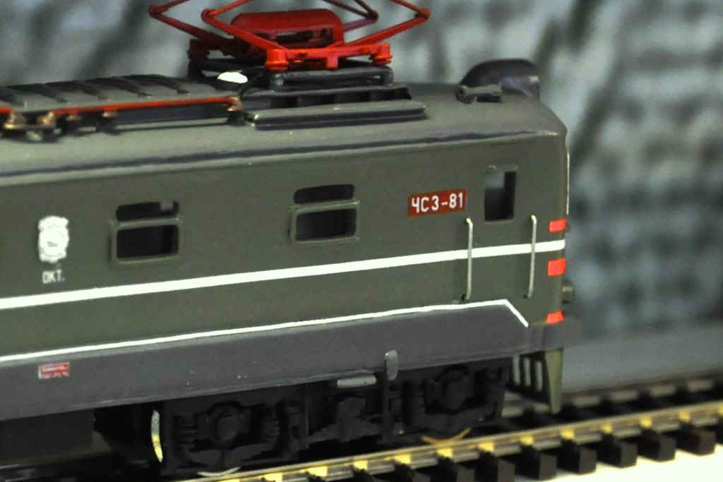 Разновидности: модель выполнена в одном экземпляре Эпоха: III-IV Принадлежность: СЖД Фирма-производитель: Бояров В., Виноградов К. Год окончания производства: 2017 Описание моделиЭта модель, изначально представлявшая собой электровоз ЧС1-012 - авторский дебют петербургского моделиста Владимира Боярова. Модель впервые экспонировалась на выставке в Центральном музее ж.д. транспорта (Санкт-Петербург) в марте-апреле 2017 г. *** Мне давно хотелось сделать модель ЧС1 или ЧС3. ЧС1 от ВТТВ подходил для этого. Поначалу хотел поменять только пантографы и сделать "правильный" метельник. Но в процессе работы понял,что модель абсолютно не соответствует оригиналу. В итоге решил делать модель с "нуля", благо чертежи прототипа есть в свободном доступе. Корпус-полистирол. Боковины тележек соответствуют оригиналу (смола). Кроме изготовления нового корпуса, полностью переделал ходовку (новый мотор, карданы, червяки, маховики). Ход стал плавнее и тише, чем у модели от ВТТВ (проверено на макете "Пересвета" с благословения Алексея Земскова). Добавил плату от BR151 (есть возможность оцифровки). В.Бояров *** В дальнейшем модель оказалась в коллекции петербургского любителя К.Виноградова, подверглась глубокой конверсии и в настоящее время представляет иной прототип - электровоз ЧС3-81. В обновлённом виде модель впервые экспонировалась на выставке "Железнодорожная модель" в Центральном музее ж.д. транспорта (Санкт-Петербург), в марте 2018 г. *** Другие модели ЧС1/ЧС3: - от МТВ (серийная модель и её конверсии); - от А.Ходакова (конверсия модели от ВТТВ); - от ВТТВ и конверсии на её основе (временная сборная страница). Описание прототипаВ ноябре 1956 г. Советский Союз и Чехословакия подписали контракт о поставке в СССР двух опытных электровозов постоянного тока напряжением 3000 В с осевой формулой 20-20 на базе серии (типа) 12Е, уже строившихся заводами Шкода с 1953 г. Заказанные электровозы прибыли в Советский Союз в начале 1957 г. и получили серию ЧС1 (чехословацкие, 1-й тип) и номера 001 и 002. В 1959-1960 гг. в СССР были поставлены ещё 99 локомотивов серии ЧС1, имевших конструктивные изменения (чехословацкий тип 41Е). Изменения коснулись и внешнего вида: вместо шести круглых боковых окон кузова появились четыре прямоугольных (со скруглёнными углами); исчезли буфера; изменились форма верхнего прожектора, раскраска кузова и оформление лобовой части кабины. В 1960 г. было выпущено 87 электровозов серии ЧС3 (чехословацкий тип 29Е), являвшейся модификацией серии ЧС1 и внешне не имевших отличий. Электровозы ЧС1 работали на Московской, Октябрьской, Приднепровской и Западно-Сибирской железных дорогах. Почти все они были исключены из инвентаря в конце 1970-х – начале 80-х гг. Электровоз ЧС1-041 установлен в железнодорожном музее на Варшавском вокзале Петербурга; электровоз ЧС3-73 – экспонат Новосибирского железнодорожного музея; ЧС3-45 установлен в Московском музее.