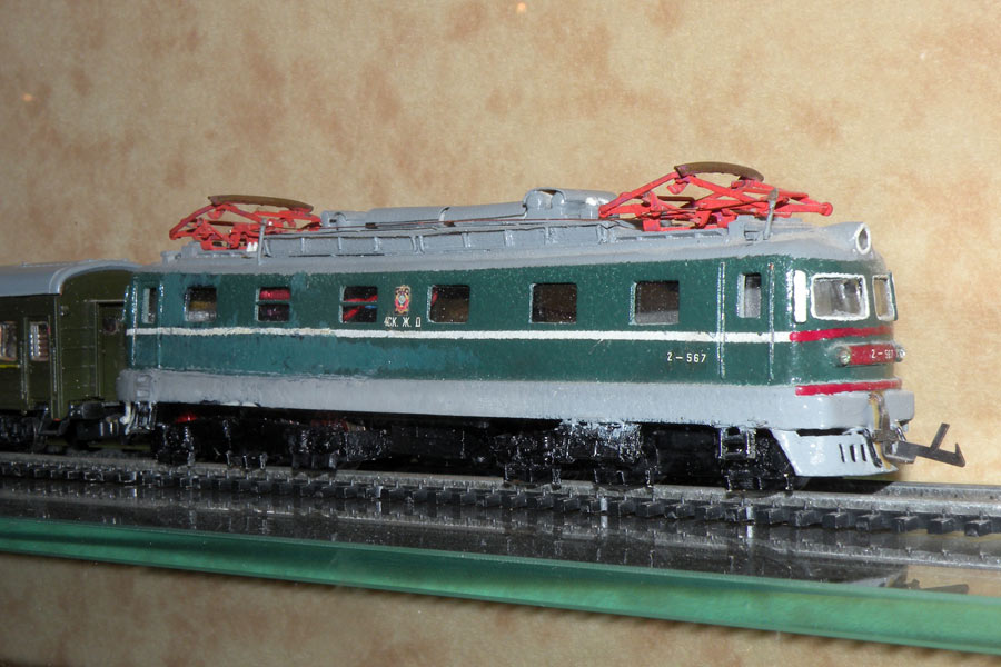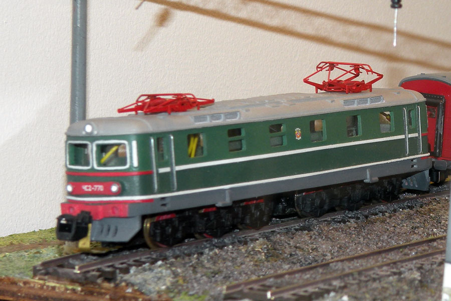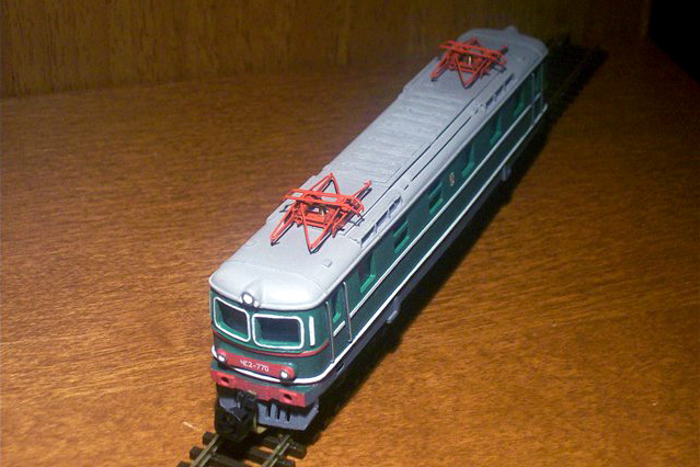Эпоха: III-IV Принадлежность: СЖД Описание моделиМодель электровоза ЧС2-606 приписки Октябрьской ж.д. изготовлена московским моделистом Александром Шувиковым. Другая модель самостоятельного изготовления - ЧС2-567 приписки Московской ж.д. - создана моделистом Юрием Третьяковым из г.Люберцы. Чешский мелкосерийный производитель Peter Ciz с 2003 г. производит набор заготовок для модели чешского аналога ЧС2 в ТТ, включающий корпус и 4 боковины тележек. Известна модель электровоза ЧС2-770 из коллекции И.Дерина, созданная на основе этой модели. (Модель пока в работе, в частности, на ней пока не смонтировано крышевое оборудование). Описание прототипаШестиосные пассажирские электровозы постоянного тока ЧС2 строились заводами Шкода два опытных электровоза, выпущены в 1958 г.; с 1962 г. строились серийно. Конструкция электровоза являлась развитием ранее выпускавшихся ЧС1 и ЧС3. На серийных машинах использовались тяговые электродвигатели мощностью 700 кВт. Скорость электровозов этой серии с составами на линии Москва-Ленинград достигала 160 км/ч и более. В 1965 г. были проведены опытные поездки, при которых электровозы серии ЧС2 с составом проходил путь от Ленинграда до Москвы за 4 ч 59 мин. Два электровоза этой серии, выпущенные в 1965 г. и имевшие обозначение ЧС2м – модернизированные (№№ 565 и 566), во время испытаний развивали скорость 205 км/ч (1966 г.) и 220 км/ч (1971 г.). Всего в СССР было поставлено 944 электровоза серии ЧС2 (чехословацкие типы 25Е, 34Е и 53Е). Электровозы этой серии получили относительно широкое распространение на железных дорогах Советского Союза, имевших участки, электрифицированные на постоянном токе напряжением 3000 В. Наибольшее их количество эксплуатировалось на Московской, Куйбышевской и Южной железных дорогах. В первом десятилетии ХХI в. электровозы ЧС2 всё ещё трудились на стальных магистралях России с пассажирскими поездами. Один из электровозов этой серии (ЧС2-039) экспонируется в музее Новосибирска, ещё одни (ЧС2-023) представлен на Варшавском вокзале в Петербурге.