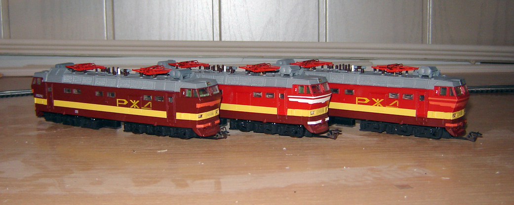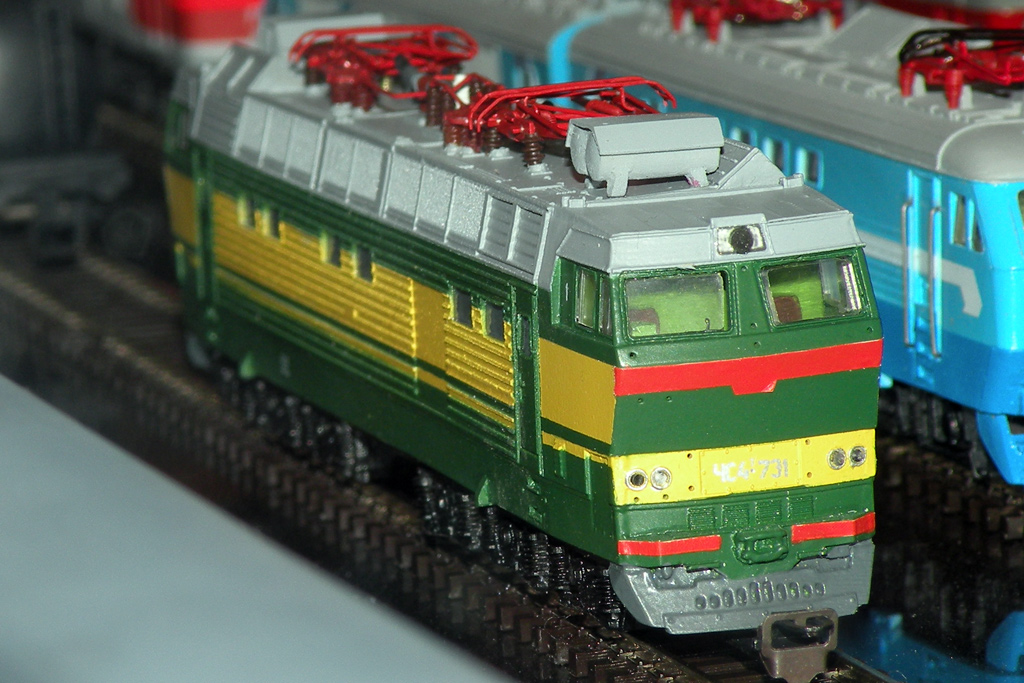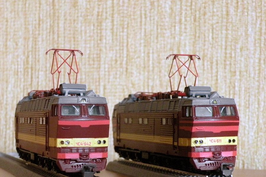 Разновидности: две конструктивных разновидности и несколько цветономерных разновидностей Эпоха: IV-V Принадлежность: СЖД, РЖД Фирма-производитель: Gonchar TT Год начала производства: 2010 Год окончания производства: производился небольшими партиями до 2013 г. Описание моделиПервая партия моделей электровоза ЧС4т была представлена киевским производителем Юрием Гончаренко ("Gonchar TT") на "Раменском Форуме - 2010" 23 января 2010 г. Модель изготовлена по малосерийной технологии (корпус из полиэфирной смолы). Использована ходовка австрийского происхождения (аналогичная модели ЧС4 от "Gonchar TT"). Освещение переключается при направлении движения (белое - "галогенный" прожектор и желтоватые буферных фонари, красное - правый задний буферный фонарь). Имеется разъем под декодер. В комплект входят дополнительные детали (тифоны, площадки под лобовыми окнами, тарелка антенны). Модели первой партииизготовлены с двумя номерами: 611 и 642, отличающихся, кроме того, формой и количеством сигнальных полос на лобовой части локомотива. Новая партия моделей, поступившая летом 2010 г., включала новый вариант - модель в нетипичной зелёной окраске (ЧС4т-652, затем в этой же окраске появилась модель ЧС4т-731). В 2011 г. появилась новая конструктивная разновидность модели - ЧС4т с гладкими боковинами и прямоугольными буферными фонарями, три варианта покраски с различными номерами. В 2013 г. представлен ещё один вариант окраски "гофрированной" разновидности: ЧС4Т-552 для состава фирменного поезда "Воронеж" (Москва-Воронеж). Описание прототипаЧС4т - пассажирский электровоз переменного тока, изготавливался в Чехословании на фирме "Шкода" и поставлялся в СССР в рамках экономического сотрудничества стран-членов СЭВ. Известны локомотивы ЧС4т с гладким (более ранние) и гофрированным кузовом (более поздние). Многие электровозы этой серии до сих пор работают с поездами на железных дорогах России. Электровоз ЧС4т-611 работал с 1984 по 1994 год в депо Россошь, с 1994 по 1999 год в депо Мичуринск, с 1999 года по 2008 год вновь в депо Россошь, а с 2008 года в депо Балашов. Мог работать с поездами "Тихий Дон", украинскими и белорусскими поездами. Электровоз ЧС4т-642 с 1984 года и по 2010-е гг. работает в депо Кавказская и тоже мог работать с поездами "Тихий Дон".