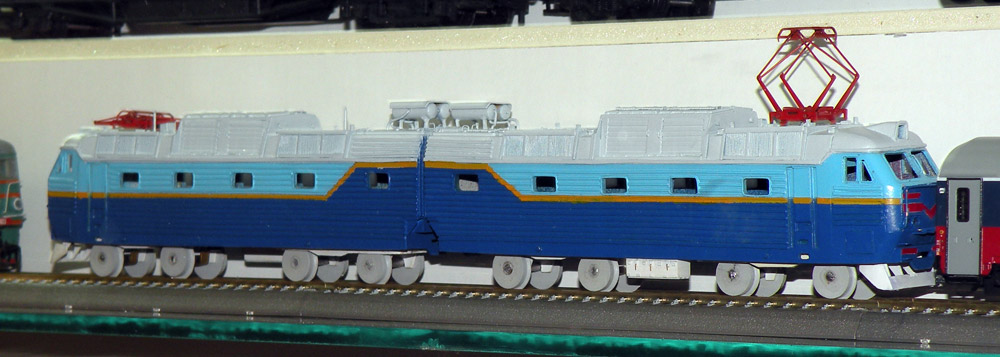 Фирма-производитель: Е.Горобцов, А.Яценко, Д.Брыксин Год начала производства: 2010 Описание моделиМодель электровоза ЧС7 выполнена коллективом авторов (Евгений Горобцов, Антон Яценко, Денис Брыксин) из г. Симферополя, Украина. Модель экспонировалась в Петербурге на выставке "Жедлезнодорождная модель-2010" без остекления, надписей и имитации боковин тележек. В 2012 г. предполагался выпуск этой модегли на основе малосерийной технологии (материал корпуса - эпоксидная смола ПРОТОКАСТ, деталировка - травлёнка и токарка; привод - предусмотрен, разработан самостоятельно). Однако затем проект был свёрнут. Другие модели электровоза ЧС7: - от Творческого объединения "Б.В.-Ж.Д."; - от П.Шестакова. Описание прототипаДвухсекционный электровоз ЧС7 был создан чехословацкой фирмой «Шкода» (заводской тип 82Е) как универсальный электровоз постоянного тока для вождения пассажирских поездов со скоростями до 160 км/ч и составами до 32 вагонов. Электровоз имел мощность длительного режима 6160 кВт и сцепной вес 172 т. В конструкции были применены многие аппараты электровозов ЧС2т, ЧС200 и ЧС6. Потребность в новой машине была вызвана тем, что шестиосные ЧС2 имели ограниченные тяговые возможности на участках с тяжёлым профилем пути, а восьмиосные ЧС200 и ЧС6 предназначались для работы на высоких скоростях с малым количеством остановок. Поставка ЧС7 в Советский Союз началась в 1983 г. Двадцать первых электровозов поступили в депо Челябинск Южно-Уральской ж.д. и в депо Москва- Киевская Московской ж.д. Всего, вплоть до 1992 г., в СССР и Россию было поставлено 286 электровозов этой серии. Ещё 5 ЧС7 Россия закупила в 1999 г. И ещё 30 машин закупила независимая Украина. В России электровозы этой серии эксплуатируются на Московской, Свердловской и Южно-Уральской ж.д.