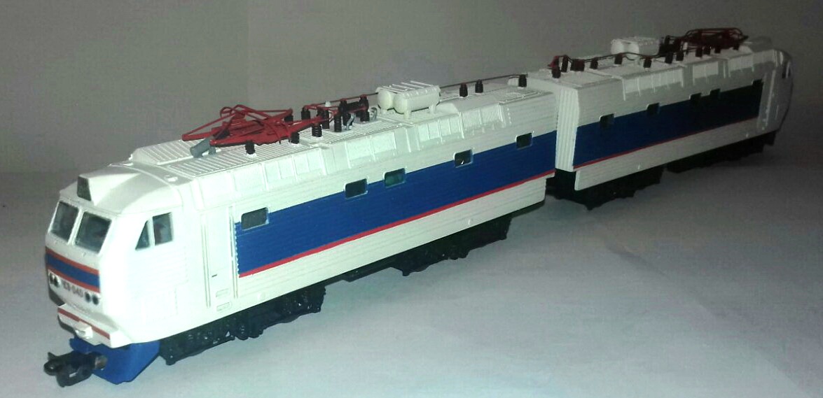 Разновидности: различные окраски и номера Эпоха: IV и V Принадлежность: СЖД, РЖД, УЗ Фирма-производитель: Гончар-ТТ, Киев, Украина Год начала производства: 2018 Описание моделиМодель пассажирского электровоза ЧС8 производится украинской мелкосерийной фирмой «Гончар-ТТ» с 2018 г. Корпуса модели и боковины тележек выполнены из полиэфирной смолы. Для изготовления ходовой части, как и в других моделях локомотивов «Гончар-ТТ», использованы узлы и детали от шасси трамваев в типоразмере HOm австрийской фирмы «Халлинг». Мотор установлен в одной секции модели, вторая является прицепной. Для работы освещения в прицепной секции межсекционная сцепка выполнена токопроводящей. Освещение светодиодное, вперед белое, назад красное. У модели проработано всё крышевое оборудование, применены стандартные пантографы фирмы «Зоммерфельд». Прилагаемые дополнительные детали для самостоятельной установки изготовлены методом фототравления. Описание прототипаК концу 1970-х годов в СССР резко вырос пассажиропоток на железнодорожном транспорте. Для повышения провозной способности железных дорог МПС планировало увеличить количество вагонов в пассажирских поездах. На линиях электрифицированных на переменном токе для этого требовались электровозы, обладающие более высокой силой тяги, чем шестиосные ЧС4 и ЧС4т. Заказ на постройку двухсекционных восьмиосных пассажирских электровозов переменного тока получил чехословацкий завод «Шкода», основной поставщик пассажирских электровозов для СЖД. Первые, опытные, машины были выпущены в 1983 г., серийные поставки шли с 1987 по 1990 г. Всего произведено 82 локомотива серии ЧС8. Их мощность составляет 3600 кВт, конструкционная скорость – 180 км/ч. По деталям ходовой части и кузова ЧС8 широко унифицирован с пассажирским электровозом постоянного тока ЧС7. Все электровозы ЧС8 были сконцентрированы на Северо-кавказской ( д. Тимашевская ) и Юго-западной ( д. Киев-пасс. ) железных дорогах. После распада СССР они оказались примерно поровну разделены между Россией и Украиной. Большинство ЧС8 до сих пор находится в работе в обеих странах.
