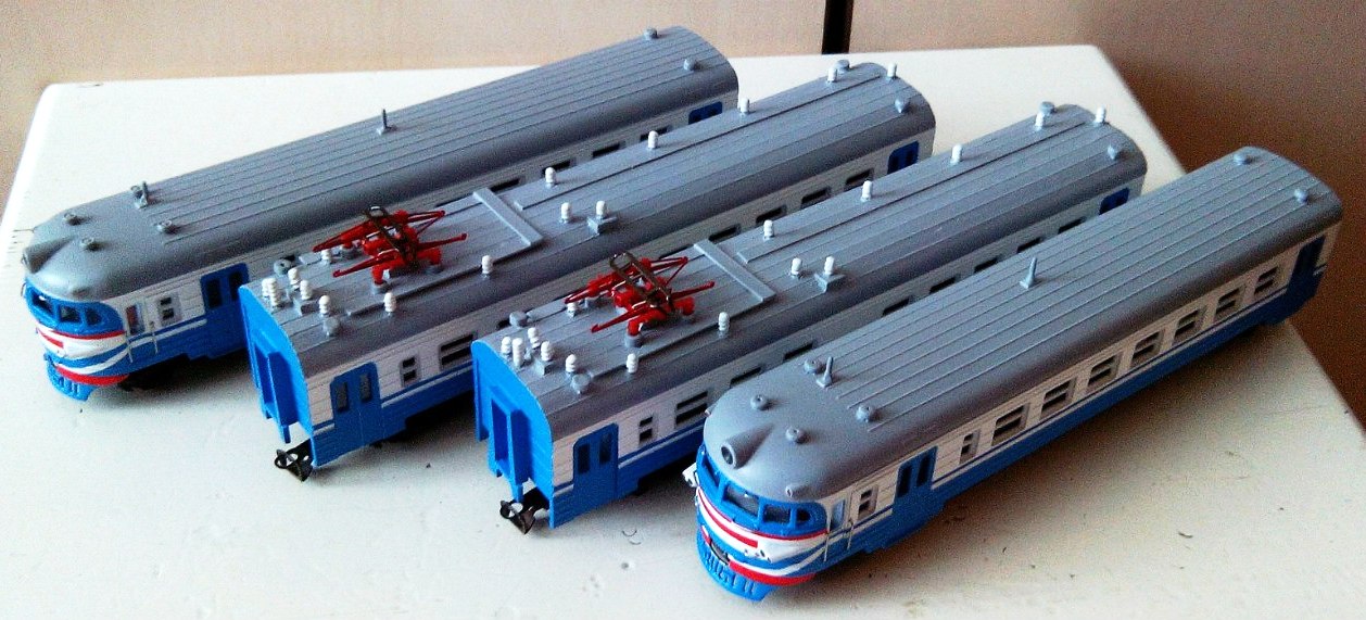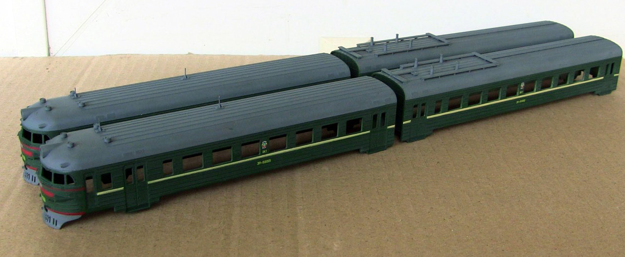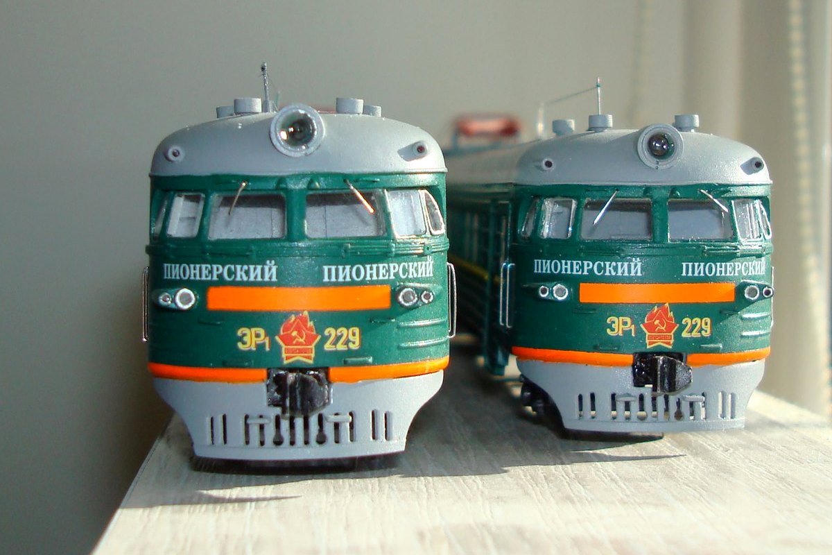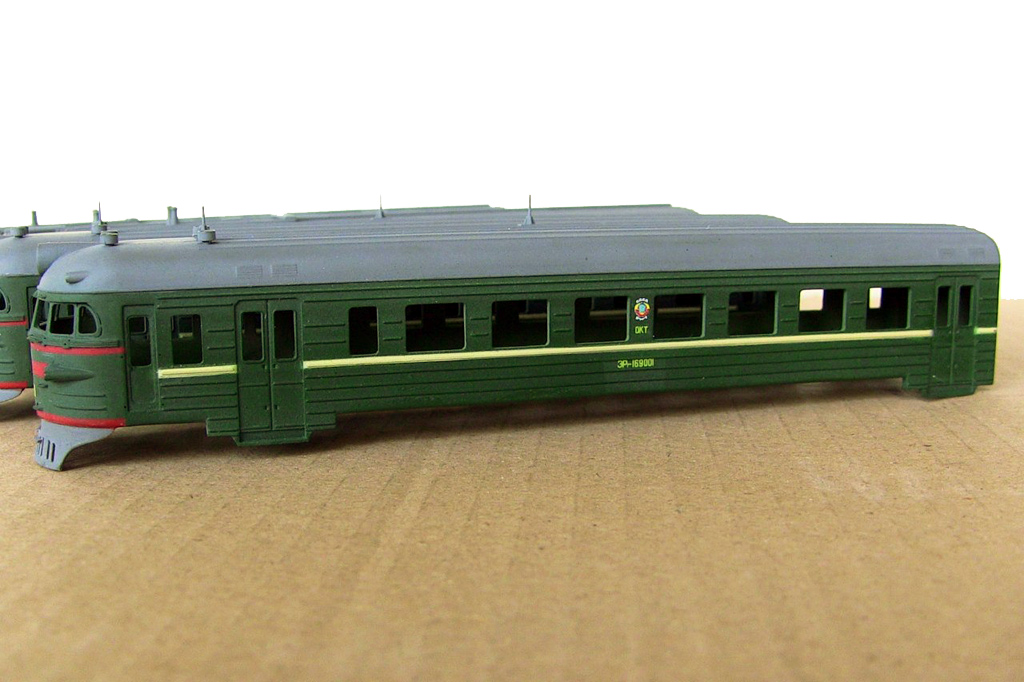 Эпоха: IV Принадлежность: СЖД Фирма-производитель: Караго В. Год начала производства: 2014 (малая серия) Описание моделиМодель электропоезда ЭР1 - малосерийный проект харьковского моделиста Вадима Караго, успешно ранее реализовавшего подобный проект в типоразмере Н0 (и затем - в типоразмере N). В середине 2014 г. началась окраска корпусов головных и промежуточных вагонов из первой партии. В конце 2014 г. была изготовлена первая партия из пяти полностью готовых 4-вагонных составов. Известны модели электропоездов с различными номерами, например: ЭР1-36 Мск ж.д., ЭР1-40, ЭР-169 Окт. ж.д. Модель стендовая, при этом обладает хорошими "пассивными" ходовыми качествами. Корпуса отлиты из эпоксидного материала. Проработаны и окрашены интерьеры пассажирских салонов, кабин машинстов, тамбуров. Часть моделей реализуется в виде окрашенных или неокрашенных "китов". Другие модели электропоезда ЭР1/ЭР2 типа "глобус": -от "Parovoziki.ru" совм. с Ю.Кацаповым - малая серия; -от А. Шустова - малая серия; -от А.Кожуховского; -от Ю.Третьякова; - от В.Прийменко. Интересная ссылка: "Как покрасить электричку" - страница блога харьковского моделиста Сергея Попова, осуществляющего окраску моделей по проекту Вадима Караго.