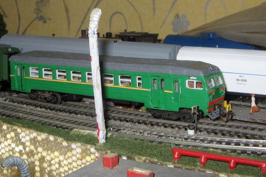 Эпоха: IV Принадлежность: СЖД Фирма-производитель: Денисов Д. Год начала производства: 2009 Описание моделиТульский моделист Денис Денисов (Тула) изготовил модель головного вагона электропоезда ЭР2 из картона. Модель стендовая, снабжена интерьером и установлена на 4-осные тележки от спальных вагонов ВТТВ. Другие модели электропоезда ЭР2 с изменённой формой кабины: - от Ю.Третьякова; - от А.Шустова; - от "Parovoziki.ru" (малая серия). Описание прототипаЭлектропоезд постоянного тока ЭР2 с новой формой кабины изготавливался на Рижском вагоностроительном заводе с 1974 г. До настоящего времени в пассажирской эксплуатации ещё сохранилось много этих электропоездов.