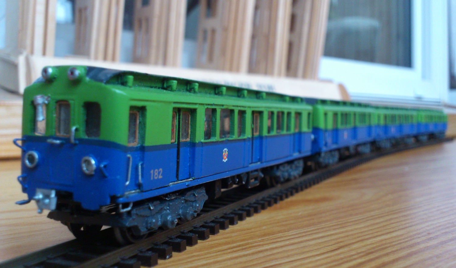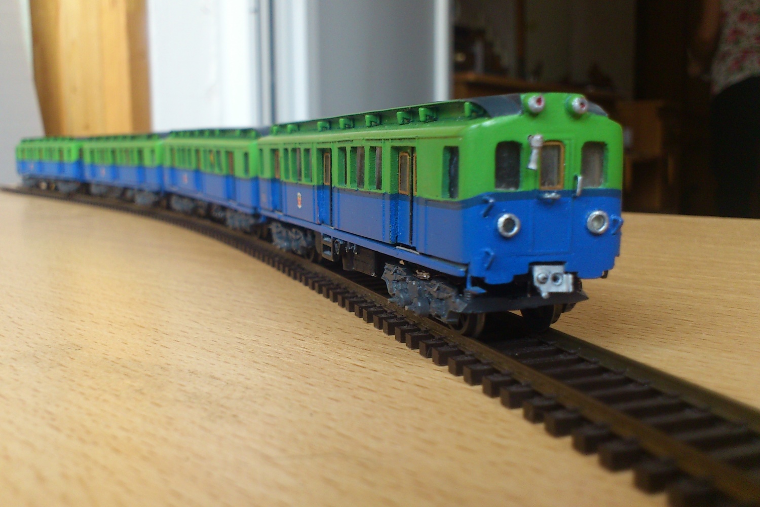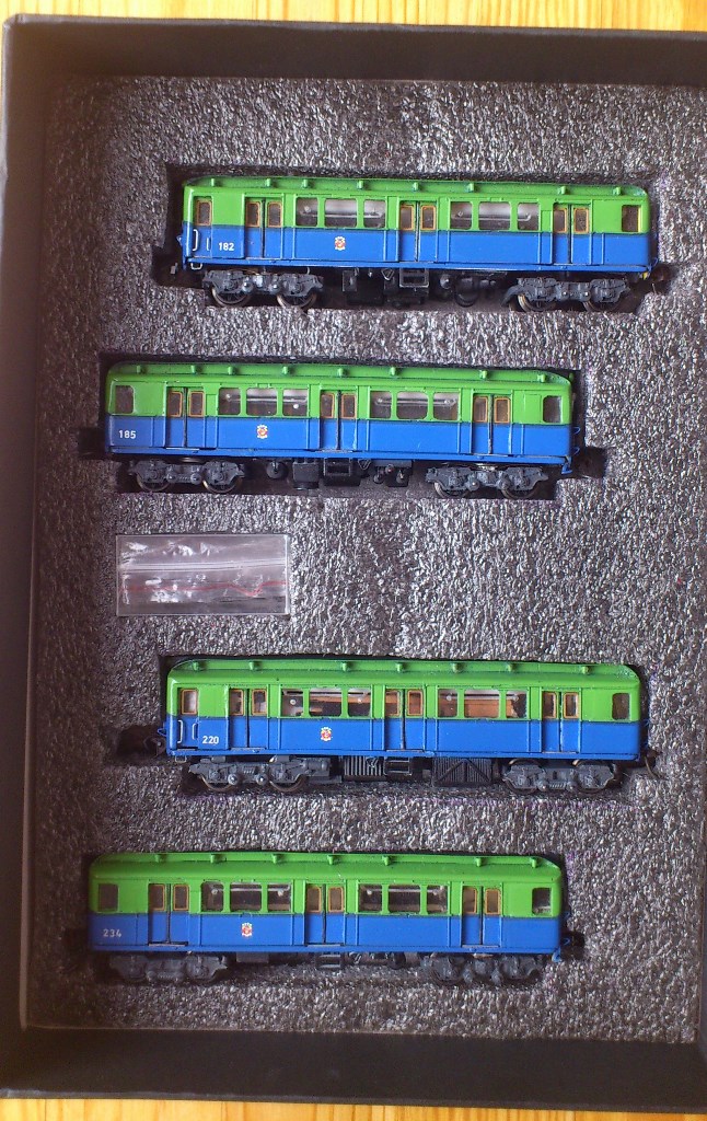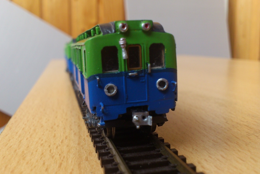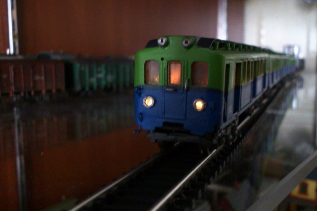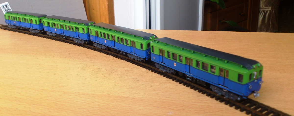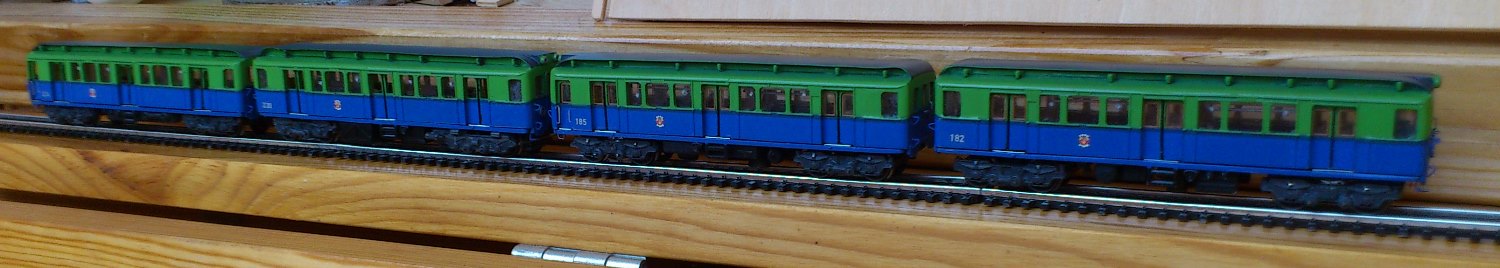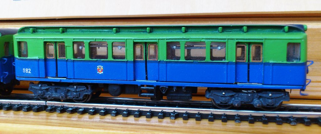 Разновидности: 4-вагонный состав выполнен в одном экземпляре Эпоха: III Фирма-производитель: Луковкин С. Год начала производства: 2016 Описание модели4-вагонный состав московского метрополитена, состоящий из трофейных вагонов типа В-2 - авторская работа московского моделиста Сергея Луковкина. Для изготовления вагонов использованы детали (элементы кузовов, тележки, оконные рамы и др.) различных моделей немецких вагонов производства фирм ВТТВ и Tillig, подвергшиеся глубокой конверсии. Многие детали (двери, тифоны и др.) изготовлены самостоятельно В модельном составе три вагона прицепные, один - моторный. Использован мотор от Tillig; привод на одну тележку изготовлен самостоятельно. Выполнено освещение (лобовые и хвостовые огни, свет в салоне). В прицепных вагонах есть имитация интерьера. Подвагонное оборудование выполнено с определенной степенью условности. Описание прототипаНачиная с 1946 г. в Москву в порядке послевоенных репараций было доставлено 120 вагонов, ранее работавших в берлинском метро. Изначальная немецкая серия С была изменена на "В". В Московском метро эксплуатировались три разновидности немецких вагонов - В1, В2 и В3. Вагоны В2 - моторные, поступили в Москву количестве 61 шт. и перед началом работы были модернизированы на Мытищинском машиностроительном заводе. С 1958 г. эти вагоны эксплуатировались в четырехвагонных составах на вновь открытой Филёвской линии Московского метро.