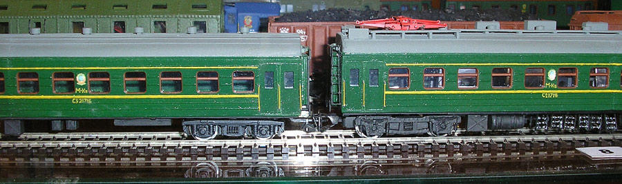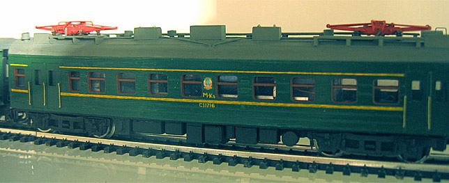 Эпоха: III-IV Принадлежность: СЖД Фирма-производитель: Алексей Мурашов Описание моделиМодель трёхвагонной электросекции Ср3 выполнена наро-форминским моделистом А.Мурашовым. Модель моторная, изготовлена в смешанной технике и многократно экспонировалась на модельных выставках в разных городах РФ. Другие модели Ср3: - модель от Е.Запорожченко. Описание прототипаТрёхвагонные электросекции Ср3 выпускались Рижским вагоностроительным заводом в 1952-58 гг. и являлись модификацией электросекций Ср образца 1947 г. В состав электросекции Ср3, рассчитанной на напряжение постоянного тока 3000 В, входило два головных прицепных вагона и один моторный промежуточный. Общее число мест для сидения в секции равнялось 321; максимальная скорость составляла 85 км/ч – эту скорость электричка, составленная из секций Ср3, могла набрать на перегонах длиной не менее 5 км. Секции выпускались с выходами как на низкие платформы (Ср3-Н), так и на высокие (Ср3-В). Первые из них эксплуатировались на курском, рижском и савёловском направлениях Московского узла, на пригородных участках Новосибирска и Омска; вторые – на киевском, ленинградском, павелецком, смоленском и ярославском направлениях Московского узла и на Финляндском направлении в Ленинграде. Всего была изготовлена 351 трёхвагонная секция Ср3. В начале 2000-х гг. последние электрички Ср3 всё ещё эксплуатировались в Украине (ТЧ Мукачево), однако и там готовились к списанию. В России вагоны электросекций Ср3 сегодня можно встретить в Московском (Ср3-1668), Новосибирском (Ср3-1239) и Екатеринбургском железнодорожном музеях.