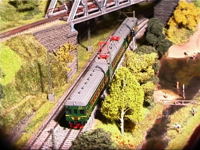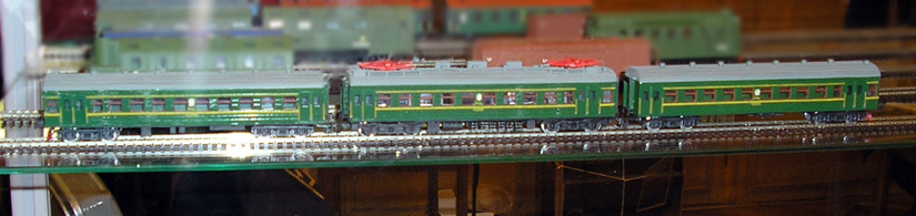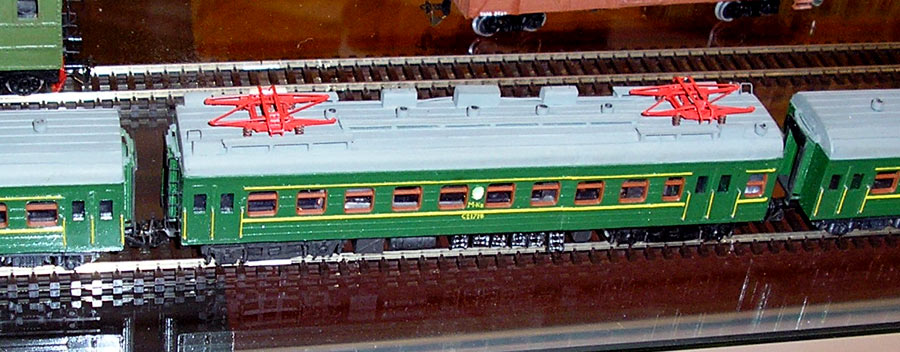 Кадр 1. Модель электросекции Ср3 (моторный вагон) на выставке в ЦМЖТ, Петербург.