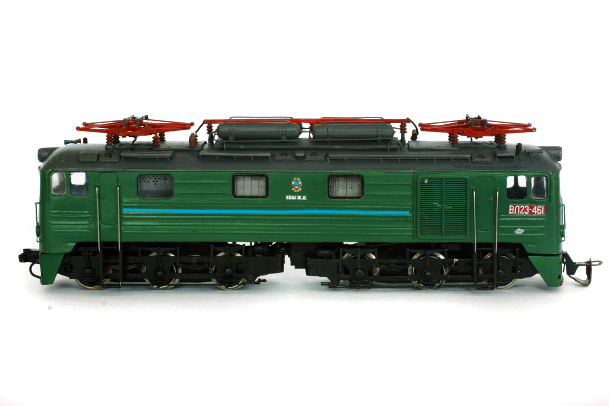 Разновидности: модель выполнена в единственном экземпляре Эпоха: IV Принадлежность: СЖД Фирма-производитель: Братский С. Год начала производства: 2013-14 Описание моделиМодель электровоза ВЛ23-461 самостоятельно изготовлена московским моделистом С.В.Братским. Модель находится в коллекции Сергея Животкова (Москва). Другие модели электровоза ВЛ23: - от В.Бражника (малая серия); - от А.Шувикова; - от А.Щербакова; - от А.Яценко. Описание прототипаЭлектровоз серии ВЛ23 был разработан на Новочеркасском электровозостроительном заводе под руководством главного конструктора Б.В. Суслова в 1954-56 гг. Этот шестиосный электровоз имел конструкционную скорость 100 км/ч и развивал силу тяги в 3 – 3,5 раза больше, чем его предшественник – ВЛ22м. Электровоз ВЛ23 имел унификацию ряда деталей с выпускавшимся в те же годы восьмиосными электровозами серии ВЛ8. С 1956 по 1961 г. было построено 489 электровозов серии ВЛ23, которые использовались для обслуживания грузовых и пассажирских поездов многих железных дорог; больше всего их было на Октябрьской, Московской и Западно-Сибирской дорогах. В 80-х гг. на Октябрьской дороге часть электровозов ВЛ23 эксплуатировалась в виде постоянно сцепленных двух или трёх локомотивов, которым для удобства присвоили серии 2ВЛ23 и 3ВЛ23 и новые номера. По оценке В.А. Ракова, электровозы серии ВЛ23 в период 60-80-х гг. были самыми надёжными локомотивами на магистральных железных дорогах Советского Союза. Большинство их было исключено из инвентаря в 90-е гг. Сегодня ВЛ23 экспонируются в железнодорожных музеях Москвы (ВЛ23-131), Петербурга (ВЛ23-001) и Новосибирска (ВЛ23-501). ВЛ23-456 установлен как памятник в депо Ховрино (Москва); ВЛ23-440 – памятник на ст. Кандалакша.