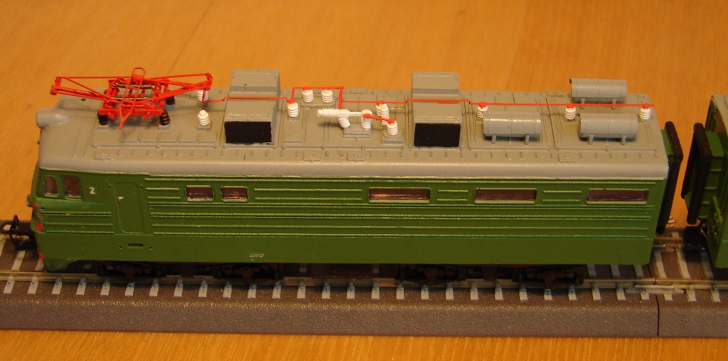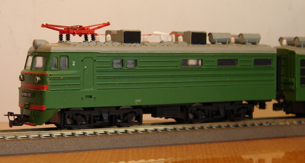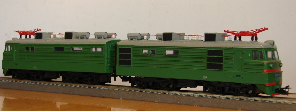 Разновидности: различные окраски и номера Эпоха: IV и V Принадлежность: СЖД, РЖД, УЗ Фирма-производитель: Гончар-ТТ, Киев, Украина Год начала производства: 2018 Описание моделиМодель двухсекционного грузового электровоза ВЛ80 производится украинской мелкосерийной фирмой «Гончар-ТТ» с 2018 г. Корпуса модели и боковины тележек выполнены из полиэфирной смолы. Для изготовления ходовой части, как и в других моделях локомотивов «Гончар-ТТ», использованы узлы и детали от шасси трамваев в типоразмере HOm австрийской фирмы «Халлинг». Мотор установлен в одной секции модели, вторая является прицепной. Для работы освещения в прицепной секции межсекционная сцепка выполнена токопроводящей. Освещение светодиодное, вперед белое, назад красное. У модели проработано всё крышевое оборудование, применены оригинальные токоприемники, характерные для электровозов переменного тока. Прилагаемые дополнительные детали для самостоятельной установки изготовлены методом фототравления. Другие модели электровозов ВЛ80: - от Modellmix (ВЛ80т, малая серия); - от Д.Камушкина (ВЛ80р, малая серия). - от А.Ходакова и А.Прийменко (ВЛ80к); Описание прототипаДвухсекционные грузовые электровозы переменного тока ВЛ80 выпускались с 1962 по 1995 г.г. Новочеркасским электровозостроительным заводом. В процессе выпуска электровоз многократно модернизировался, в основном в части электрооборудования. Конструктивные изменения отражались в буквенном индексе серии. В частности, ВЛ80к, послуживший прототипом описываемой модели, строился с 1964 г. по 1970г. Всего было выпущено 718 локомотивов ВЛ80к. Вместе с другими разновидностями ВЛ80 они распространены по всем железным дорогам СССР, электрифицированным на переменном токе и до сих пор являются основными грузовыми локомотивами на этих линиях. При необходимости применяются и в пассажирском движении. Мощность локомотива 6100 кВт, конструкционная скорость – 110 км/ч. По кузову и ходовой части электровозы ВЛ80 всех индексов в значительной степени унифицированы с электровозами постоянного тока ВЛ10.
