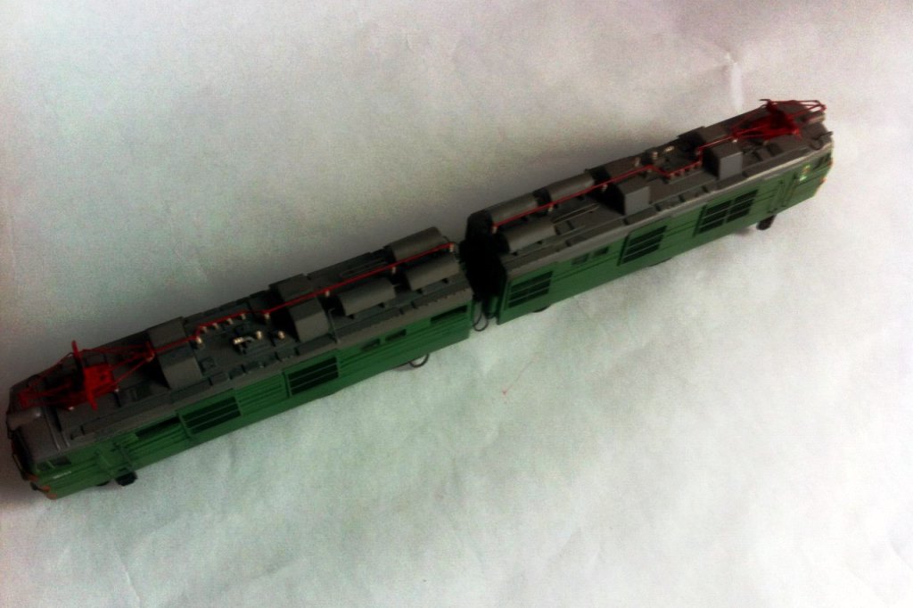 Разновидности: модель выпущена в единственном экземпляре Эпоха: IV Принадлежность: СЖД Фирма-производитель: А.Ходаков, В.Прийменко Год начала производства: 2016 Описание моделиМодель электровоза ВЛ80к - авторская работа петербургского моделиста Антона Ходакова при участии Вячеслава Прийменко (которым выполнено крышевое электроооборудование и некоторые другие детали, а также лёгкое окрасочное "состаривание" модели). Модель стендовая. В качестве основы для изготовления корпуса послужил "кит" электровоза ВЛ10 от "Parovoziki.ru". Для изготовления оригинальных деталей использованы полистирол, ПВХ 1мм, медная проволока и решётки из травлёной латуни. Модель находится в коллекции В.Прийменко. Впервые экспонировалась на выставке в ЦМЖТ, Санкт-Петербург, в марте 2016 года. Другие модели электровозов ВЛ80: - от Modellmix (ВЛ80т, малая серия); - от Д.Камушкина (ВЛ80р, малая серия). - от «Гончар-ТТ» (ВЛ80к). Описание прототипаЭлектровоз ВЛ80 - двухсекционный грузовой магистральный электровоз переменного тока. Рассчитан на переменный ток 25 Кв, 50 Гц. Конструкционная скорость - 110 км/ч. Электровозы ВЛ80 всех индексов строились Новочеркасским электровозостроительным заводом (НЭВЗ) в период с 1961 по 1995 год. С середины 1960-х основной грузовой локомотив на линиях переменного тока железных дорог Советского Союза. В настоящее время электровозы ВЛ80 эксплуатируются всеми железными дорогами России, где имеются линии, электрифицированные на переменном токе, а также железными дорогами Белоруссии, Украины, Казахстана, Узбекистана. Электровоз ВЛ80к строился с 1963 по 1971 год, выпущено 695 единиц. Индекс "к" указвапет на кремниевые выпрямители переменного тока.