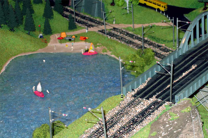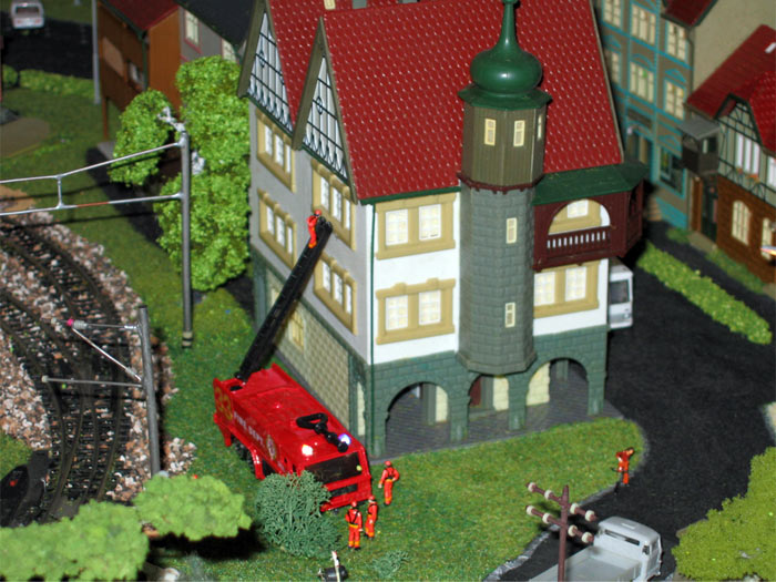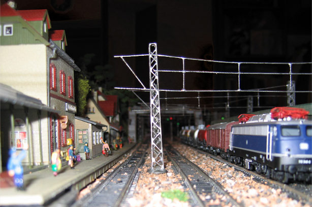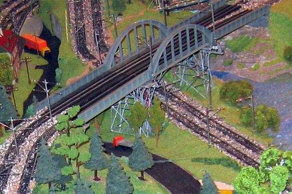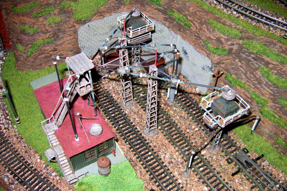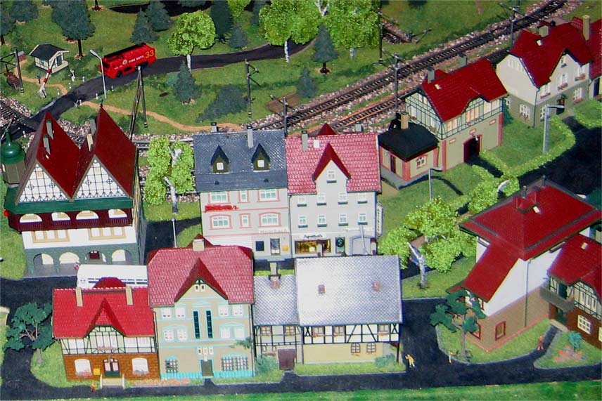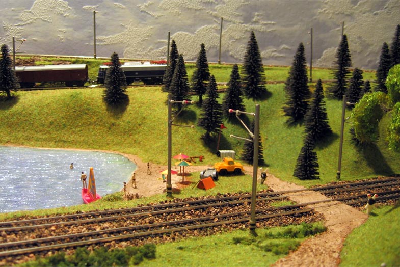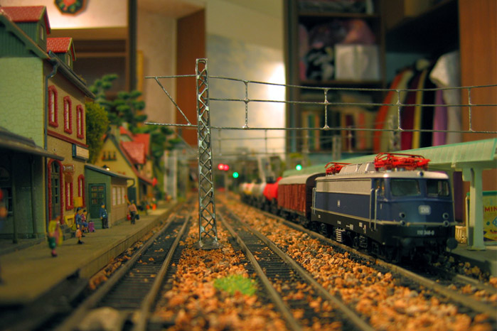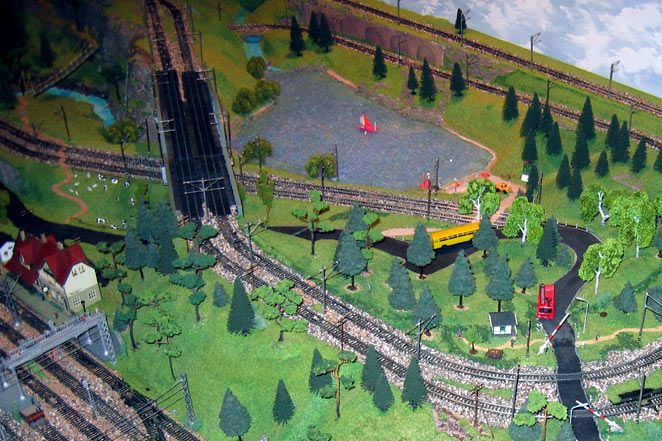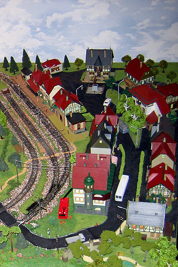 Большой домашний макет Александра Владимировича Плахова был создан два десятилетия тому назад в Туле, успешно пережил два переезда и теперь находится в г.Протвино Московской области. На макете, кроме хорошо знакомых строений немецкого производства, есть немало элементов, изготовленных автором макета самостоятельно. Во-первых, это металлические конструкции, с большим мастерством изготовленные из проволоки и придающие макету самобытный вид: мосты, опоры, контактная сеть, пункт экипировки локомотивов. Во-вторых, все светофоры на макете самодельные, на основе ламп накаливания. (Управление движением поездов производится с использованием самодельного диспетчесркого пульта).