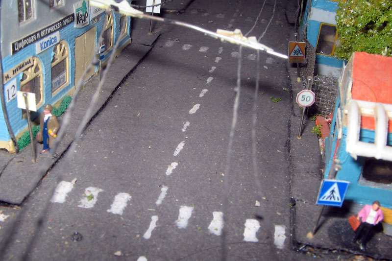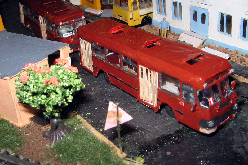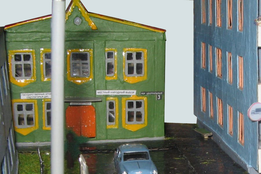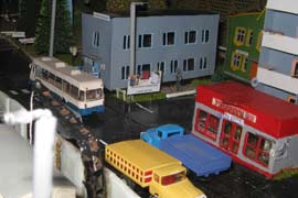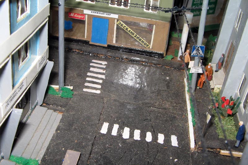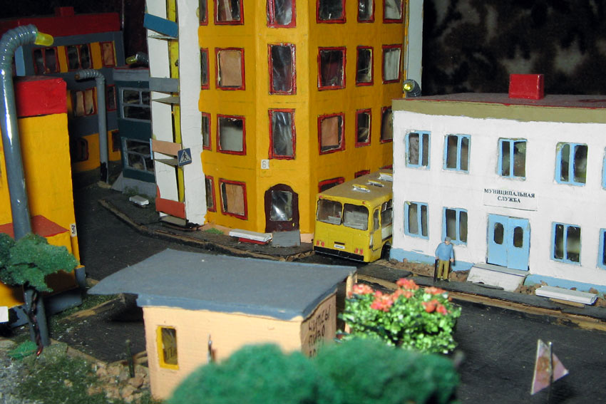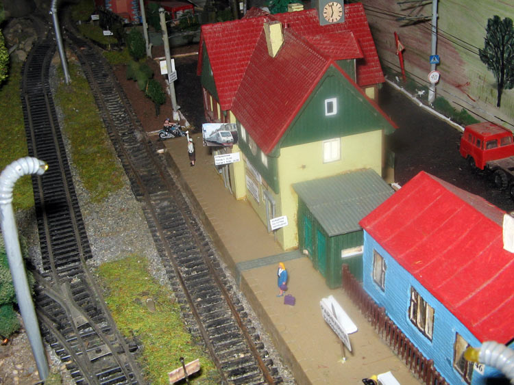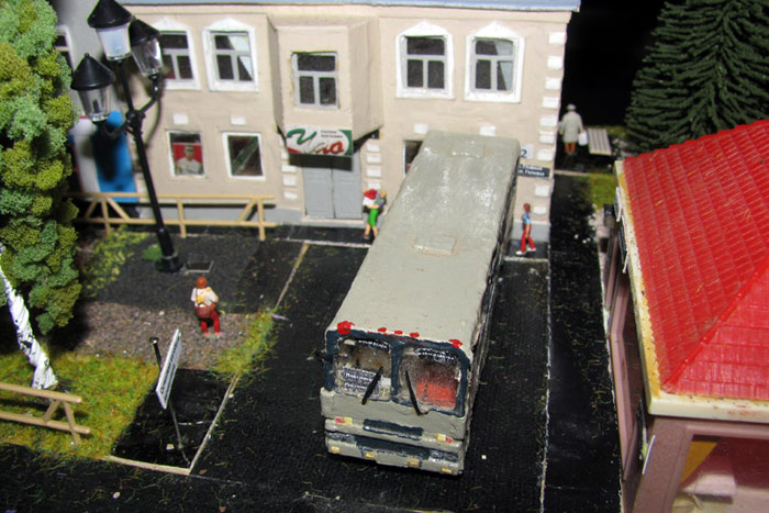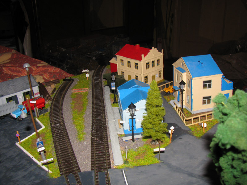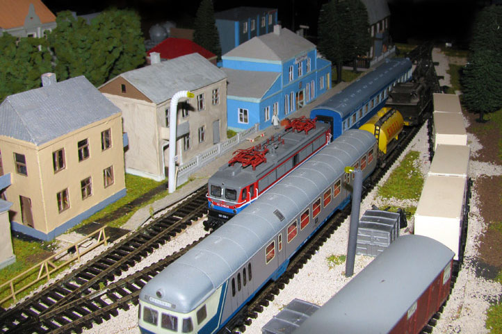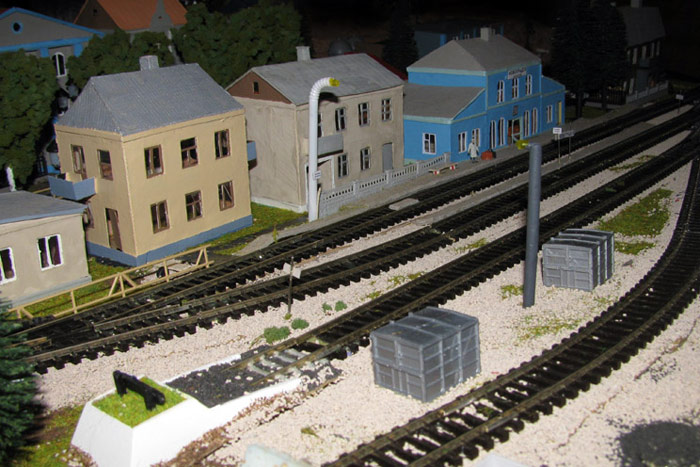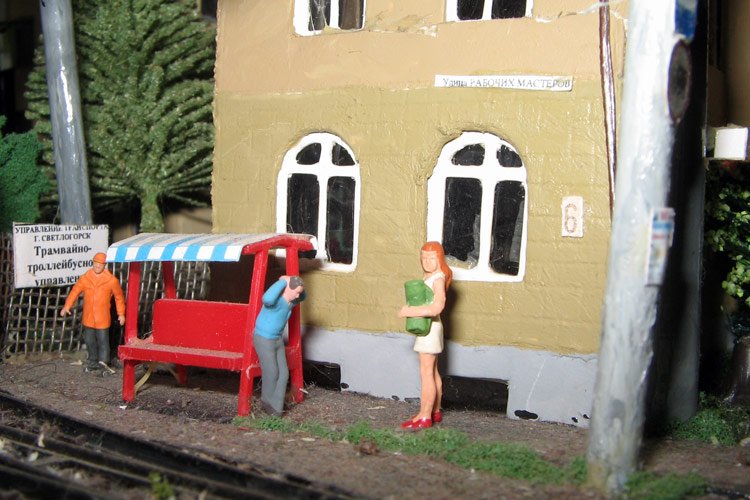 Тульский моделист и любитель транспорта, издатель журнала "Пантограф", создал на своих диорамах необычный мир. Это мир не столько железных дорог, сколько городского наземного транспорта. И всё же здесь - настоящее ТТ! И ещё одна "необычность" - почти все строения здесь сделаны руками автора, и поэтому можно при желании, вглядевшись в эти фотографии, ощутить не "аухагеновский", а вполне российский колорит! Всего есть 17 диорам, на которых расположены два государства и 16 населенных пунктов. Они делятся на два независимых друг от друга государственных образования: СРиД (Союз Райфланда и других земель) и Светлогорье, формально находящихся под одной унией (собственно обе страны имеют одного собственника, но политически независимы). В модельной сфере это заметно по, например, транспортной политике: так Светлогорье ориентируется 100 % на подвижной состав железных дорог СЖД-РЖД-СНГ, а СРиД – в этом плане «всеядный» - имеются как отечественный подвижной состав, так и иномарки, схожая политика присутствует и в формировании автомобильного парка, хотя здесь все менее жестко. Состав СРиД: Центральный округ: 1. г. Райфлянд (название произошло от первого, давно купленного здания вокзала). Приблизительные размеры 1х2 м. Существует и развивается с 1991 года. Транспорт: железная дорога, автобус, троллейбус. 2.пос. Д-Штадт, 1,1х0,5 м, существует с 1997 года. Сейчас находится в процессе удвоения территории и реконструкции. Транспорт: железная дорога (локомотивно-вагонное депо), автобус транзит. 3. д. Захаровка, небольшой населенный пункт, выросший на основе крошечного остатка старого макета А. Захарова (Москва), который был расширен, был построен жилой дом, модернизирована станция, травяной покров, насыпь, установлены заборы, стулья, стол и т.п. Станция однопутная. Новоградский округ: 1. г. Новоград-Карпатский. Создан в 2010 г. Транспорт: железная дорога, междугородний автобус. 2. с.Подзамковое. Создано в 2010 году. Транспорт автобус, железная дорога. 3. пос. Русинка. Построен в январе 2011 года. Транспорт железная дорога и транзитный автобус. Светлогорье: Светлогорский район: 1. г. Светлогорск. 1х2,5 м, существует с 2006 года. Транспорт: железная дорога, трамвай, троллейбус, автобус. 2. пос. Новое поселение. 0,5 х 0,5 м, существует с 2007 года. Транспорт: железная дорога, автобус транзит. 3. пос. Лучегорск и пос. Восточный. Созданы в 2010 году. Транспорт: железная дорога (станция Восточный), пригородный автобусный маршрут № 19. Дивногорский район: 1. пос. Дивногорск. восточная часть: 0,5 х 0,5 м, существует с 2008 года, западная на совместной диораме с Железнодорожным с весны 2009 года. Транспорт: железная дорога, автобус транзит. 2. пос. Железнодорожный. Существует с 2009 года, здесь находится управление железнодорожной компании «Светлогорская магистраль» и депо с небольшой ремонтной базой. Транспорт: пригородный автобус маршруты 12, 20, 21. 3. пос. Радужный. Существует с марта 2010 года, западный ворота Светлогорья, транспорт жд станция и автобус маршрута 21. 4. д. Бахметьево. Существует с осени 2009 года (большая часть, фрагмент с весны 2009 года), жд станция, автобус маршрута 12, 32. Городоцкий район: 1. г. Городок, 1х0,3 м, существует с 1997 года, заметно расширен и модернизирован в 2007 году. Транспорт: железная дорога и автобус. 2. пос. Городище. Существует на диораме с Бахметьево с осени 2009 года. Один жилой дом в саксонском стиле, и торговы