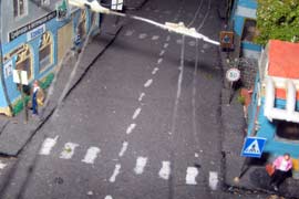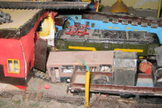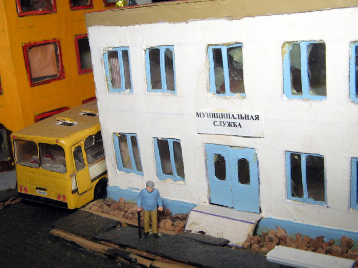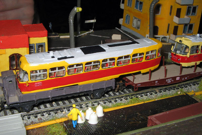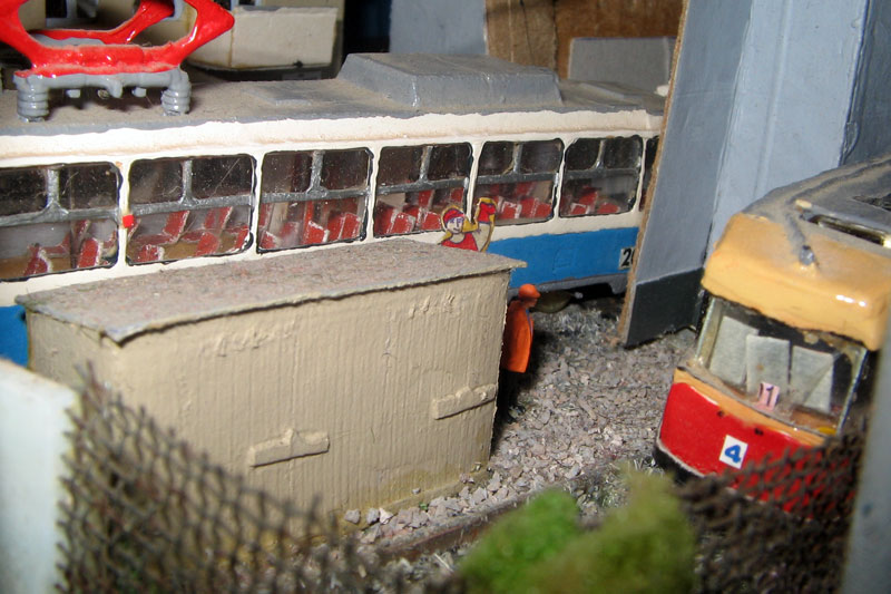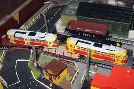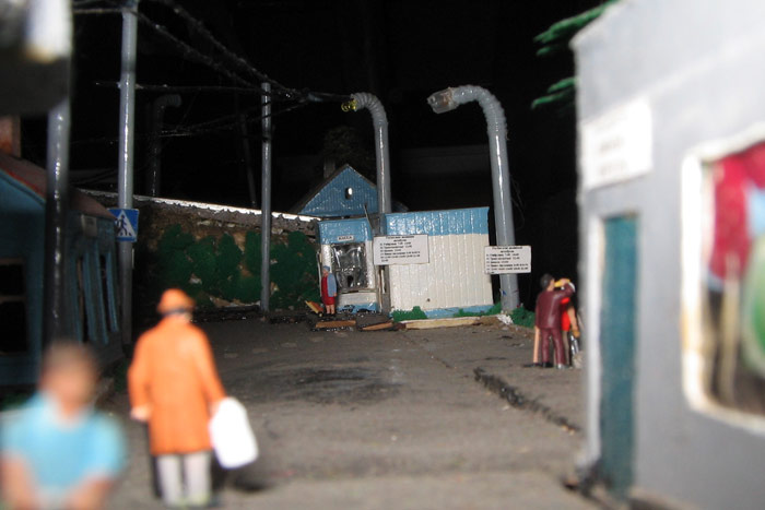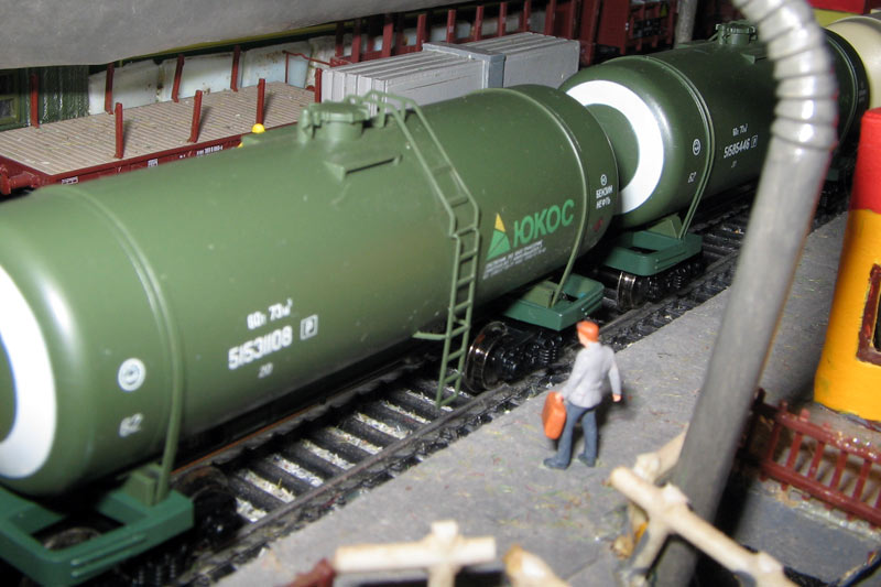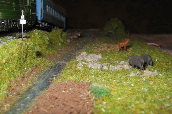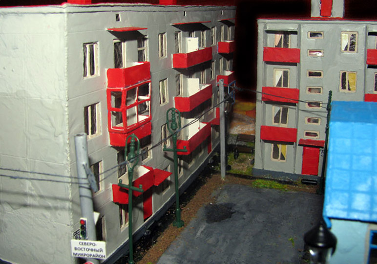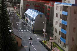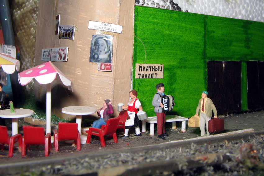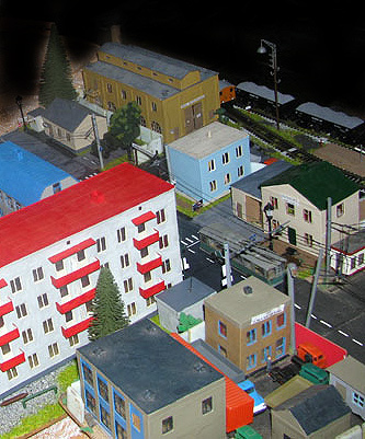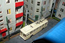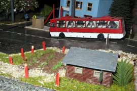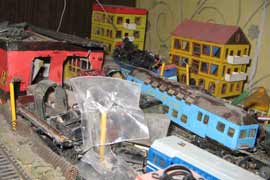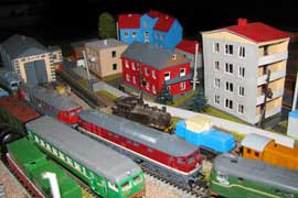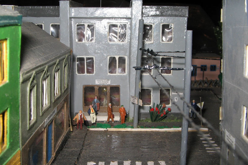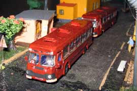 Тульский моделист и любитель транспорта, издатель журнала "Пантограф", создал на своих диорамах необычный мир. Это мир не столько железных дорог, сколько городского наземного транспорта. И всё же здесь - настоящее ТТ! И ещё одна "необычность" - почти все строения здесь сделаны руками автора, и поэтому можно при желании, вглядевшись в эти фотографии, ощутить не "аухагеновский", а вполне российский колорит! Всего есть 17 диорам, на которых расположены два государства и 16 населенных пунктов. Они делятся на два независимых друг от друга государственных образования: СРиД (Союз Райфланда и других земель) и Светлогорье, формально находящихся под одной унией (собственно обе страны имеют одного собственника, но политически независимы). В модельной сфере это заметно по, например, транспортной политике: так Светлогорье ориентируется 100 % на подвижной состав железных дорог СЖД-РЖД-СНГ, а СРиД – в этом плане «всеядный» - имеются как отечественный подвижной состав, так и иномарки, схожая политика присутствует и в формировании автомобильного парка, хотя здесь все менее жестко. Состав СРиД: Центральный округ: 1. г. Райфлянд (название произошло от первого, давно купленного здания вокзала). Приблизительные размеры 1х2 м. Существует и развивается с 1991 года. Транспорт: железная дорога, автобус, троллейбус. 2.пос. Д-Штадт, 1,1х0,5 м, существует с 1997 года. Сейчас находится в процессе удвоения территории и реконструкции. Транспорт: железная дорога (локомотивно-вагонное депо), автобус транзит. 3. д. Захаровка, небольшой населенный пункт, выросший на основе крошечного остатка старого макета А. Захарова (Москва), который был расширен, был построен жилой дом, модернизирована станция, травяной покров, насыпь, установлены заборы, стулья, стол и т.п. Станция однопутная. Новоградский округ: 1. г. Новоград-Карпатский. Создан в 2010 г. Транспорт: железная дорога, междугородний автобус. 2. с.Подзамковое. Создано в 2010 году. Транспорт автобус, железная дорога. 3. пос. Русинка. Построен в январе 2011 года. Транспорт железная дорога и транзитный автобус. Светлогорье: Светлогорский район: 1. г. Светлогорск. 1х2,5 м, существует с 2006 года. Транспорт: железная дорога, трамвай, троллейбус, автобус. 2. пос. Новое поселение. 0,5 х 0,5 м, существует с 2007 года. Транспорт: железная дорога, автобус транзит. 3. пос. Лучегорск и пос. Восточный. Созданы в 2010 году. Транспорт: железная дорога (станция Восточный), пригородный автобусный маршрут № 19. Дивногорский район: 1. пос. Дивногорск. восточная часть: 0,5 х 0,5 м, существует с 2008 года, западная на совместной диораме с Железнодорожным с весны 2009 года. Транспорт: железная дорога, автобус транзит. 2. пос. Железнодорожный. Существует с 2009 года, здесь находится управление железнодорожной компании «Светлогорская магистраль» и депо с небольшой ремонтной базой. Транспорт: пригородный автобус маршруты 12, 20, 21. 3. пос. Радужный. Существует с марта 2010 года, западный ворота Светлогорья, транспорт жд станция и автобус маршрута 21. 4. д. Бахметьево. Существует с осени 2009 года (большая часть, фрагмент с весны 2009 года), жд станция, автобус маршрута 12, 32. Городоцкий район: 1. г. Городок, 1х0,3 м, существует с 1997 года, заметно расширен и модернизирован в 2007 году. Транспорт: железная дорога и автобус. 2. пос. Городище. Существует на диораме с Бахметьево с осени 2009 года. Один жилой дом в саксонском стиле, и торговы
