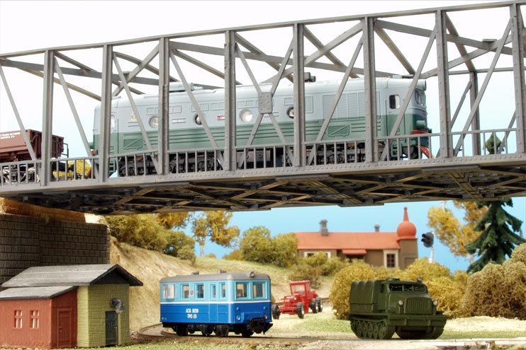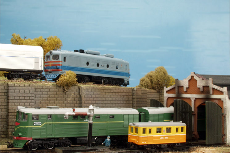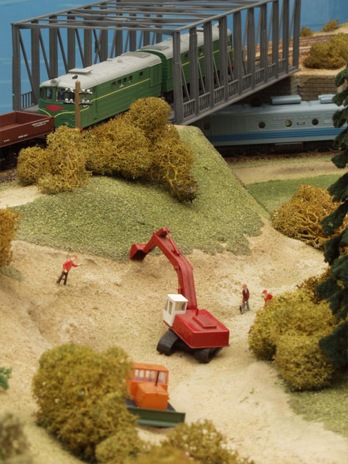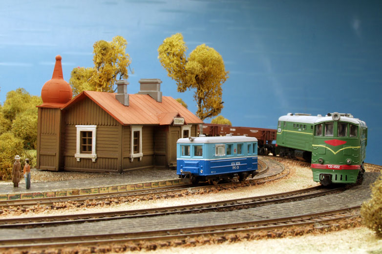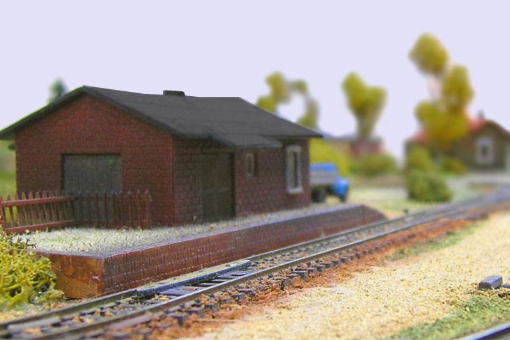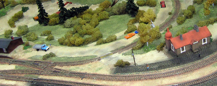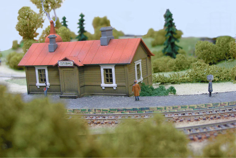 Макт был изготовлен на рубеже 1990-х - 2000-х гг. как демонстрационный, для немецкого представителя фирмы "Пересвета", и отправлен в Германию. Макет отражал тематику "русской глубинки". Он состоял из двух равных пололвин (видно на схеме), его общий размер 150 х 90 см. На нём могли одновременно двигаться три состава - два по кольцевым маршрутам,один - по челночному (из депо под мостом к пакгаузу и обратно). Работала светофорная сигнализация. Кроме моделей ж.д. подвижного состава, макет демонстрировал также модели специальных машин (экскаваторы, бульдозер, грейдер), которые в начале 2000-х гг. выпускались под маркой "Пересвета". Статья с фотографиями макета (которые мы приводим на этой странице) была опубликована в немецкогм журнале "ТТ-Курьер" № 5 за 2004 г. В 2006 г. порядком поизносившийся макет вернулся в родной Петербург и там был демонтирован. Схема макета: ссылка здесь