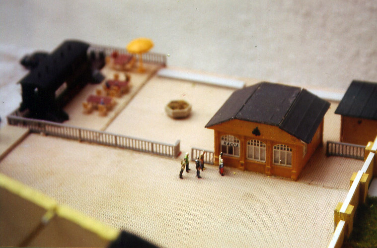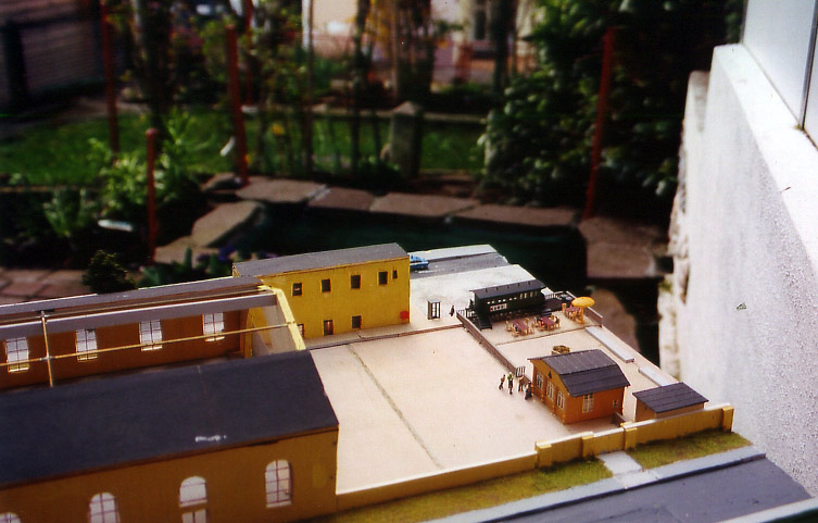 Фото 6. То же. Перед входом в музей автор макета расположил летнее кафе, используя корпус старинного вагона.