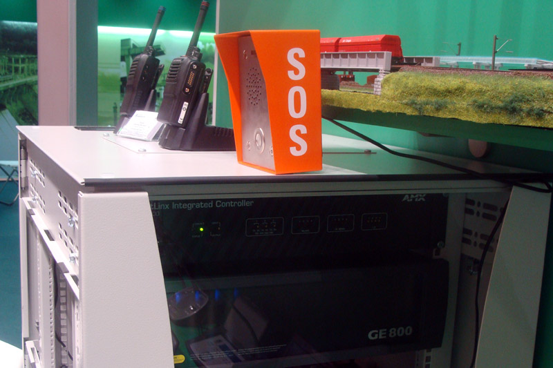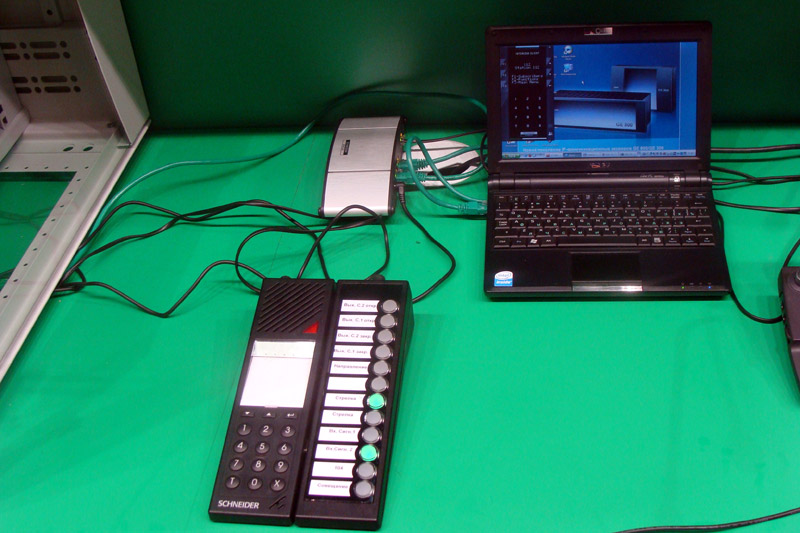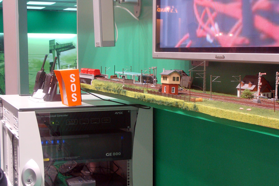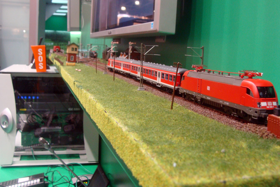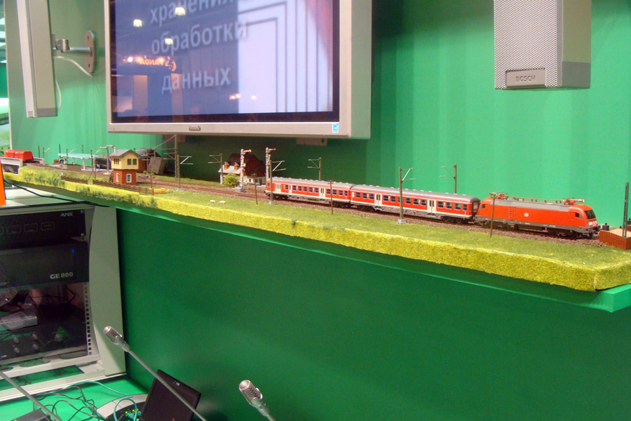 В рамках выставки "Форум Технологии безопасности - 2010", проходившей со 2 по 5 февраля в ВЦ "Крокус-Экспо", функционировал железнодорожный макет, выполненный в типоразмере ТТ. Он входил в состав стенда ЗАО "Компания Безопасность" - партнера компании "Schneider Intercom" и использовался для иллюстрации возможностей управления исполнительными устройствами (на примере ж.д. стрелок и сигналов) через IP-сеть с диспетчерского пульта "Schneider Intercom". Макет выполнен в июне-октябре 2009 г. московским моделистом, директором российского представительства компании "Schneider Intercom" Романом Мишиным Схема движения на макете - реверсивная. Тема макета - DBAG эпохи V - VI. Такой выбор темы выбран ввиду прикладного назначения макета. Возможно, было бы лучше реализовать что-то подобное с вагонами отечественного метрополитена, поскольку одним из самых масштабных проектов, реализованных в России на оборудовании Schneider Intercom, является система диспетчерской связи Петербургского метрополитена. Но отсутствие подходящего модельного подвижного состава пока не позволяет реализовать эту идею. В планах оснащение макета системой управления энергосберегающим освещением пассажирской платформы (также на оборудовании Schneider Intercom).