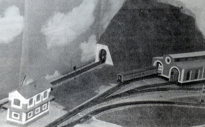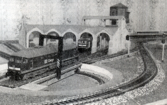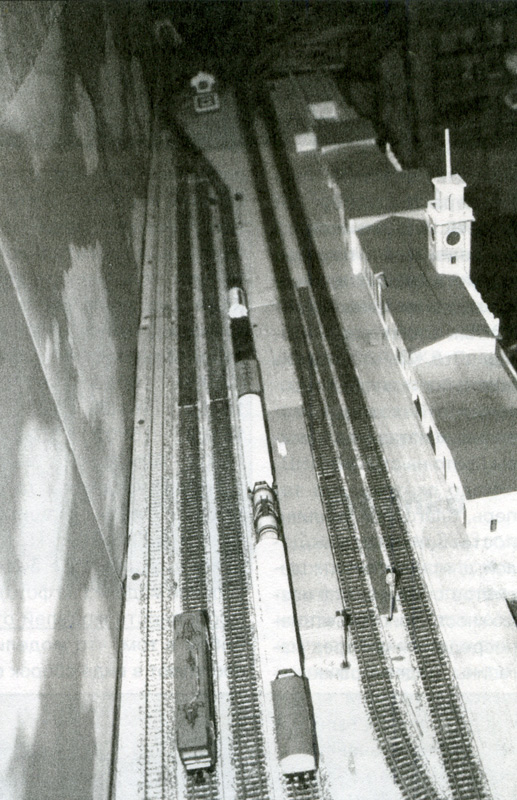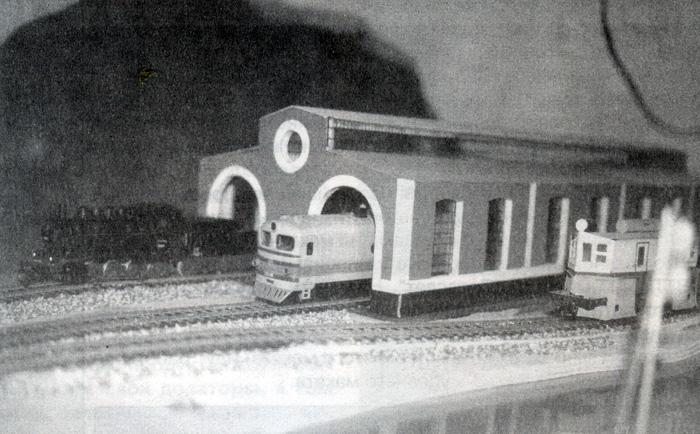 С четырнадцати лет я занимаюсь строительством макетом, каждый раз совершенствуя их конструкцию. Постройку своего четвертого макета я начал с разработки чертежей. Из-за того, что при движении на прежних макетах возникали проблемы с боксованием локомотивов на подъёмах, этот макет я решил сделать в одном уровне. Конструкция подмакетника, для удобства работы, была выполнена из трех секционных фрагментов. Раму каждого собрал из брусков 50х20 мм, а затем обшил 6-миллиметровой фанерой. Общая длина макета составила четыре метра. Макет прямоугольного типа, расположен вдоль стены. Общая схема макета выполнена в виде простого овала, в центральной части которого встречные линии образуют, соответственно, 4 и 2 станционных пути, не имеющих соединения во встречном направлении. Это максимально упрощает электрическую схему, а кроме того, обеспечивает непрерывное движение составов по всему макету, что немаловажно при небольших размерах всего сооружения. Правая и левая секции макета отведены для круговых петель. На левой секции имеются склад топлива, поворотный круг, водонапорная башня, и достраивается веерное дестятистойловое депо. В центральной части расположена станция с шестью путями, здание вокзала и здание МРЦ (пост маршрутно-релейной сигнализации). Название для станции пока не придумано, хотя она имеет конкретный прототип – здания вокзалов Волховстрой (-I и -II) города Волхов. Чертежи и модель здания я выполнил по фотографии. Окраска здания: кровля – сурик; стены – светлая охра; фрагменты, наличники окон, архитектурные деталь – белые. Башня имеет часы и украшена шпилем. Город Волхов имеет две станции Волховстрой, вокзальные здания которых выполнены по схожим проектам. Особенность расположения вокзального здания на макете состоит в том, что здание расположено на переднем плане, и фронтальный вид на макет представляет собой вид вокзала со стороны города. В то же время сторона вокзала, обращенная к перрону, также тщательно проработана. На третьей секции расположилось двухстойловое тепловозное депо. Здесь же находится отрог горного хребта, сквозь толщу которого пробит тоннель. Небольшое озеро дополняет природный ландшафт. Весь рельсовый материал взят производства фирмы «Крюгер»; стрелки оснащены электроприводом, расположенным под макетом. Поворотный круг изготовлен самостоятельно, и также имеет электрический привод. Пока на макете используется простейшая электросхема, предполагающая ручное управление, но в дальнейшем движение будет автоматизировано. Предполагается также изготовление стеклянного колпака для защиты от пыли. Задник макета сделан из обоев с изображением облаков. На макете эксплуатируется подвижной состав от фирм «Tillig», «ROCO», «ВТТВ», «ТТ-Модель», «Пересвет». На макете появилась и модель снегоочистителя, выполненная самостоятельно. Параллельно с завершением строительства этого макета, ведутся работы по изготовлению другого, трёхуровневого макета. Автор макета и текста - Е.Полянский. По материалам журнала "Локотранс", 2003, № 6.