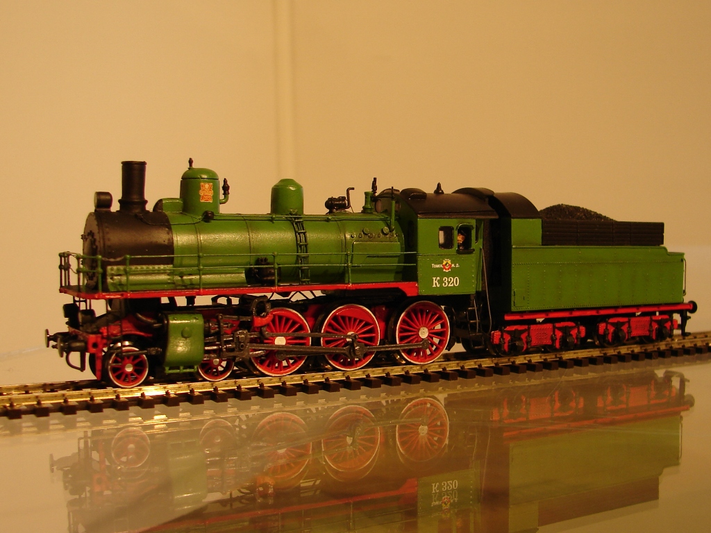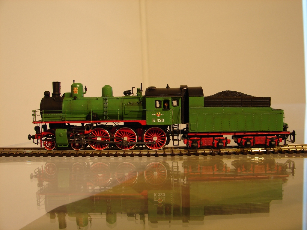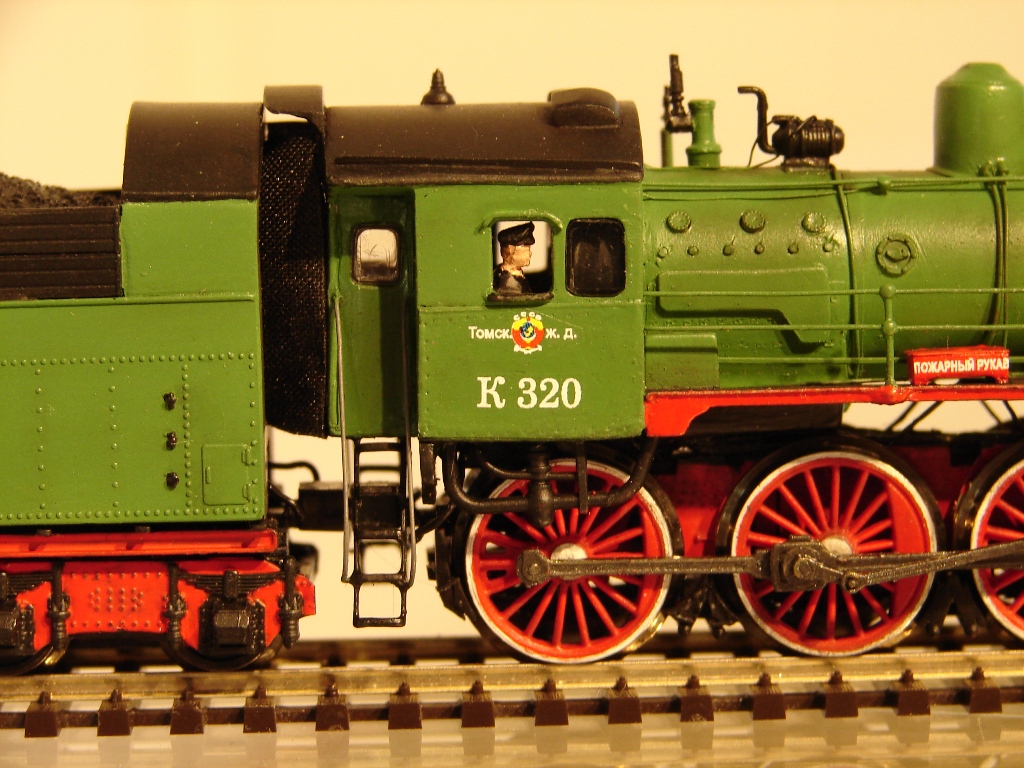 Разновидности: нет Эпоха: III Принадлежность: СЖД Фирма-производитель: Братский С. Год начала производства: 2022 Описание моделиМодель пассажирского паровоза серии К изготовлена московским моделистом С.В.Братским в 2022 году. Она впервые была представлена публике на весенней выставке «Железнодорожная модель -2022» в Санкт-Петербурге. Прототипом послужил паровоз серии К образца 1910 года. Модель выполнена полностью вручную из пластика и металла, отдельные детали использованы от моделей промышленного производства. В качестве ходовой части паровоза использовано шасси немецкого паровоза серии 38 производства фирмы «Тиллиг», которое подходит по основным размерам. Тендер сделан полностью самостоятельно. Модель покрашена в зелёный цвет, характерный для отечественных пассажирских паровозов, надписи нанесены специально изготовленными декалями. Свет переключается в сторону движения. Из интересных особенностей модели нужно отметить масштабные фигурки членов локомотивной бригады в будке машиниста. Модель паровоза К изготовлена на заказ, находится в частной коллекции. Описание прототипаПассажирский паровоз серии К был разработан Коломенским машиностроительным заводом по заказу частной Московско-Казанской железной дороги. Он был предназначен в первую очередь для замены менее мощных серий Ж и З. Паровоз К примечателен тем, что именно на нём впервые топка и котёл были подняты над рамой для увеличения площади колосниковой решётки. Такое инженерное решение на долгие годы придало последующим Российским и Советским паровозам характерный внешний облик с высоко расположенным котлом. Паровозы серии К были признаны удачными и выпускались с 1907 года партиями, постепенно в конструкцию вносились некоторые изменения по итогам эксплуатации уже выпущенных машин. Всего до 1912 года Коломенским и Путиловским заводами было построено 145 единиц. Они поступили на многие частные и государственные железные дороги. Паровозы серии К проработали с пассажирскими поездами до середины 1950х годов. Ни один из этих локомотивов не сохранился.