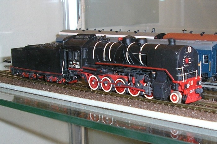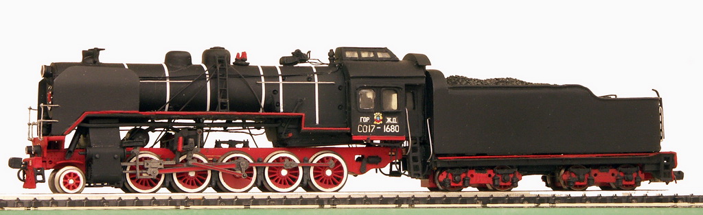 Разновидности: модель выполнена в одном экземпляре Эпоха: III Принадлежность: СЖД Фирма-производитель: Братский С. Год начала производства: 2008 Описание моделиМодель паровоза СО17-1680 изготовлена московским моделистом С.В.Братским и впервые экспонировалась на выставке "РЖД в моделях" в Политехническом музее Москвы (октябрь-ноябрь 2008 г.). Для изготовления паровоза использовалась ходовая часть модели паровоза серии 52 от "Tillig", включая обмоторенный тендер (ходовка тендера использована без изменений). В настоящее время модель находится в коллекции Александра Нигияна. Другие модели паровоза СО: - от В.Дёмина (СОк); - от С.Братского (СО17-2956). - от С.Братского (СО17-135 с тендером от паровоза Эм). Описание прототипаПаровозы серии СО ("Серго Орждоникидзе") строились с 1934. Они имели практически те же габариты, что и паровозы сериия Э, но были мощнее и хорошо зарекомендовали себя в эксплуатации, в силу чего получили на советских ж.д. относительно широкое распространение. Цифра 17 после обозначения серии (СО17) свидетельствовала о нагрузке на ось 17 т. Всего в период до 1944 г. было выпущено 384 паровоза СО и 443 паровоза СОв (с вентиляторной тягой), а также 1438 паровозов СОк (с конденсацией пара). В период с 1945 по 1951 гг. было построено ещё 2222 паровоза серии СО. Итоговое количество - 4487 штук! - уступает только знаменитому паровозу серии Э (всех индексов). В музеи России попало целых 7 паровозов этой серии. В Петербурге можно встретить СО17-2413 и СОм14-1137, в Новосибирском музее - СОм17-508, в Московском музее истории ж.д. техники - СО17-2211, в Нижнем Новгороде - СО17-2956, в Ростове-на-Дону - СО17-2724, в техническом музее в Тольятти - СО17-65. В ближнем зарубежье можно встретить СО17-3268, который стоит в Брестском ж.д. музее. Ряд паровозов серии СО установлен в городах России в качестве паровозов-памятников.