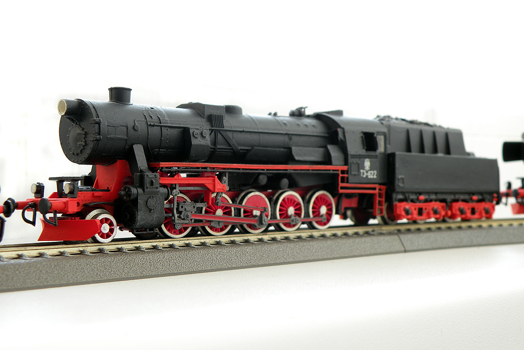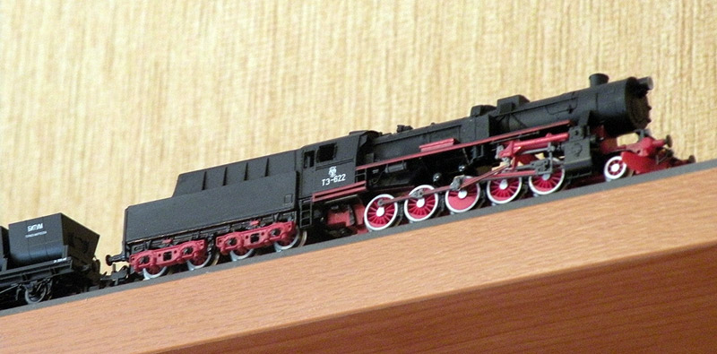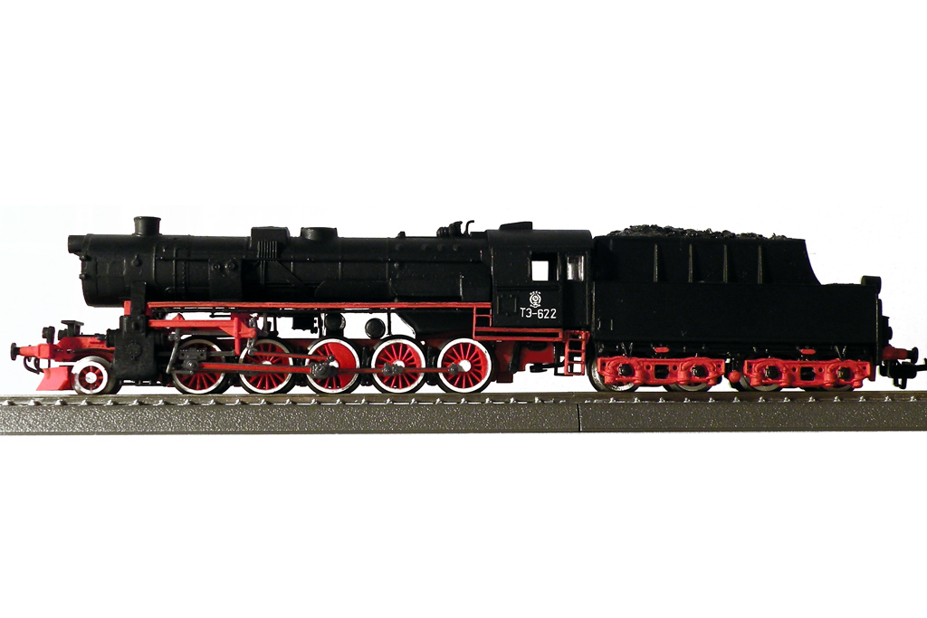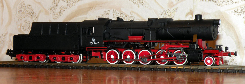 Эпоха: III Принадлежность: СЖД Фирма-производитель: И.Сергеев (конверсия). Год начала производства: 2009 Описание моделиМодель паровоза ТЭ-322 - конверсия, выполненная Игорем Сергеевым (Санкт-Петербург) в 2009 г. Для конверсии использованы: - корпус (ходовка, котёл, будка) модели паровоза серии 52 от Tillig; - тендер модели паровоза серии 35 от ВТТВ; - нрабор накладных деталей (турбогенератор, пожарный ящик, три защитных кожуха, фронтонный лист советского образца с прожектором и уменьшенным люком), изготовленный Сергеем Ермоленко. Удалены дымоотбойники. Модель стендовая. Дальнейшая доработка модели предполагает нанесение надписей. Описание прототипаСерия ТЭ в 1952 г. присвоена МПС СССР трофейным паровозам серии 52, строившимся на европейских заводах для фронтовых перевозок фашистской Германии с сентября 1942 г. В период с 1942 по 1944 г. в Германии и на оккупированных землях было построено 6244 паровоза серии 52. Из них более двух тысяч было захвачено в качестве трофеев и получено по репарациям на ж.д. СССР. Паровозы серии 52 называли «военными паровозами», что связано не только с периодом изготовления, но и с рядом конструктивных особенностей. Среди них важнейшие: закрытая со всех сторон будка машиниста, ограниченное использование цветных металлов, сокращённая более чем в полтора раза номенклатура деталей. Паровозы имели колёсную формулу 1-5-0, были укомплектованы четырёхосными тендерами (в подавляющем большинстве использовались тендеры ванного типа, однако на сети СЖД работали трофейные паровозы этой серии и с тендерами прямоугольной формы и жёсткой укороченной базой, а также тендерами по типу тендеров паровозов серии 50 - "мирного" прообраза 52й серии). Паровозы серии отличалась большой надёжностью и хорошей мощностью, эквивалентной отечественным паровозам серии Э; отсюда и советское название – ТЭ: «трофейный, по мощности равен серии Э». По данным А.А. Васильева, в послевоенном СССР эксплуатировалось 2053 паровоза бывшей 52-й серии – больше, чем в любой другой отдельно взятой стране Европы. Паровозы серии ТЭ работали на Белорусской, Октябрьской, Прибалтийской, Львовской и других дорогах западной части СССР до середины 1970-х гг. После этого некоторые из списанных паровозов были отданы промышленным предприятиям, часть была отправлена на железные дороги стран социалистического содружества, однако немалая часть сохранялась на базах запаса до конца 1990-х – начала 2000-х гг., а затем была разделана в металлолом. Сегодня паровозы ТЭ являются одними из самых распространеных экспонатов железнодорожных музеев. Прототип модели - паровоз ТЭ-622 с тендером по типу тендеров паровоза немецкой серии 50 - экспонируется в ж.д. музее Нижнего Новгорода.