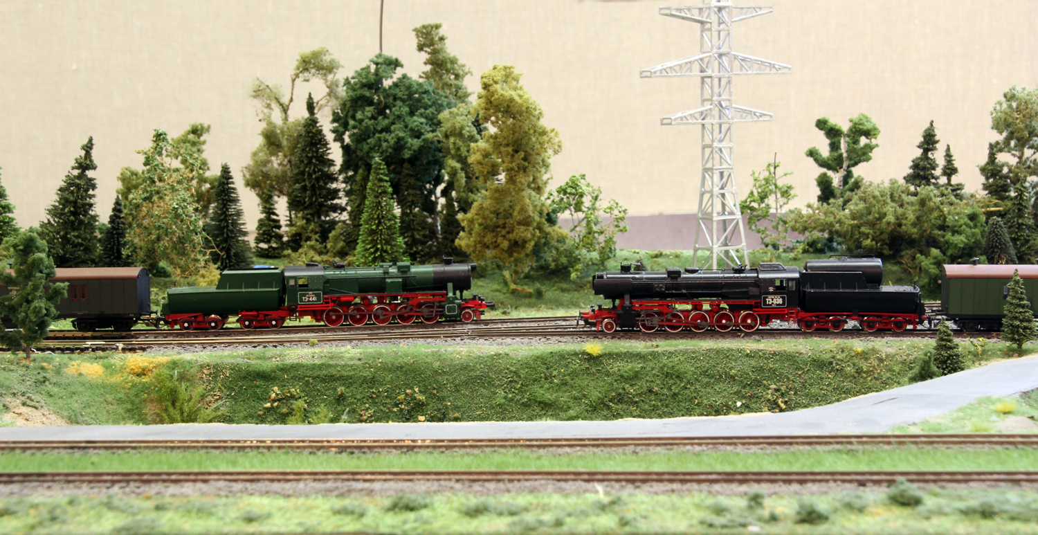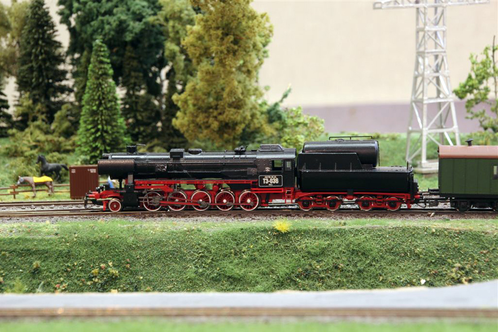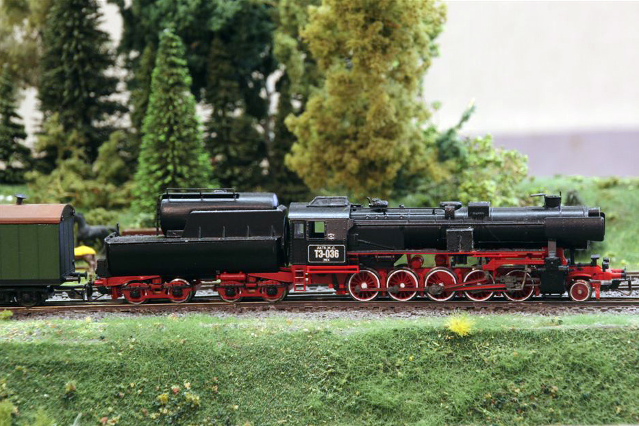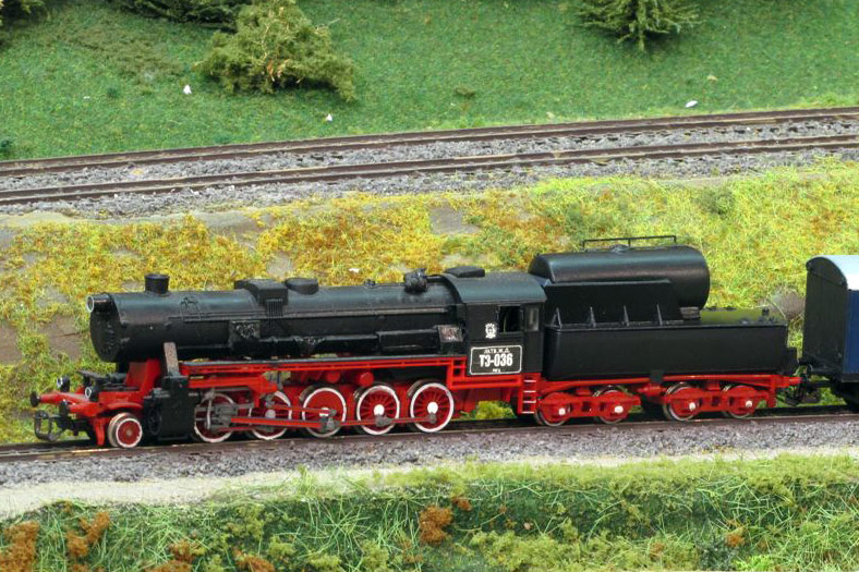 Эпоха: III Принадлежность: СЖД Фирма-производитель: А.Андреев Описание моделиМодель паровоза ТЭ-036 - конверсия, выполнанная Александром Андреевым (Москва) на базе модели паровоза 52 с ванным тендером от Tillig. Модель изображает прототип, переделанный для работы на жидком топливе. В качестве нефтяной цистерны, установленной на тендере, использована модель 2-осной немецкой цистерны в типоразмере N. Номер на модели - условный. Реальный прототип ТЭ-036 - зелёная машина пассажирской службы с тендером ванного типа - стоит в Рижском музее ж.д. транспорта Описание прототипаСерия ТЭ в 1952 г. присвоена МПС СССР трофейным паровозам серии 52, строившимся на европейских заводах для фронтовых перевозок фашистской Германии с сентября 1942 г. В период с 1942 по 1944 г. в Германии и на оккупированных землях было построено 6244 паровоза серии 52. Из них более двух тысяч было захвачено в качестве трофеев и получено по репарациям на ж.д. СССР. Паровозы серии 52 называли «военными паровозами», что связано не только с периодом изготовления, но и с рядом конструктивных особенностей. Среди них важнейшие: закрытая со всех сторон будка машиниста, ограниченное использование цветных металлов, сокращённая более чем в полтора раза номенклатура деталей. Паровозы имели колёсную формулу 1-5-0, были укомплектованы четырёхосными тендерами (в подавляющем большинстве использовались тендеры ванного типа, однако на сети СЖД работали трофейные паровозы этой серии и с тендерами прямоугольной формы и жёсткой укороченной базой, а также тендерами по типу тендеров паровозов серии 50 - "мирного" прообраза 52й серии). Паровозы серии отличалась большой надёжностью и хорошей мощностью, эквивалентной отечественным паровозам серии Э; отсюда и советское название – ТЭ: «трофейный, по мощности равен серии Э». По данным А.А. Васильева, в послевоенном СССР эксплуатировалось 2053 паровоза бывшей 52-й серии – больше, чем в любой другой отдельно взятой стране Европы. Паровозы серии ТЭ работали на Белорусской, Октябрьской, Прибалтийской, Львовской и других дорогах западной части СССР до середины 1970-х гг. После этого некоторые из списанных паровозов были отданы промышленным предприятиям, часть была отправлена на железные дороги стран социалистического содружества, однако немалая часть сохранялась на базах запаса до конца 1990-х – начала 2000-х гг., а затем была разделана в металлолом. Сегодня паровозы ТЭ являются одними из самых распространеных экспонатов железнодорожных музеев. В России их можно встретить в Москве (ТЭ-5415 с ванным тендером), Санкт-Петербурге (ТЭ-6769 с жесткорамным тендером), Нижнем Новгороде (ТЭ-622 с тендером по типу тендеров паровоза немецкой серии 50), Ростове-на-Дону (ТЭ-322 с ванным тендером), Калининграде (ТЭ-4564 с жесткорамным тендером), Тольятти (ТЭ-4844 с жесткорамным тендером). В СНГ эти паровозы стоят в музеях Донецка (ТЭ-6115), Бреста (4 паровоза, среди них ТЭ-074 с ванным тендером, ТЭ-2596 с жесткорамным тендером, зеленый ТЭ-8026 с ванным тендером, а также один паровоз колеи 1435 мм), Риги (зелёный ТЭ-0036), Хаапсалу (ТЭ-3368), Ташкента. Первый паровоз-памятник этой серии в России – ТЭ-3643 (Черняховск Калининградской ж.д.).