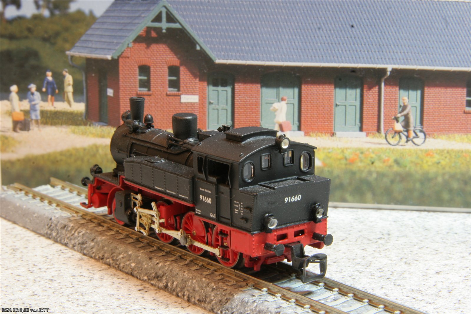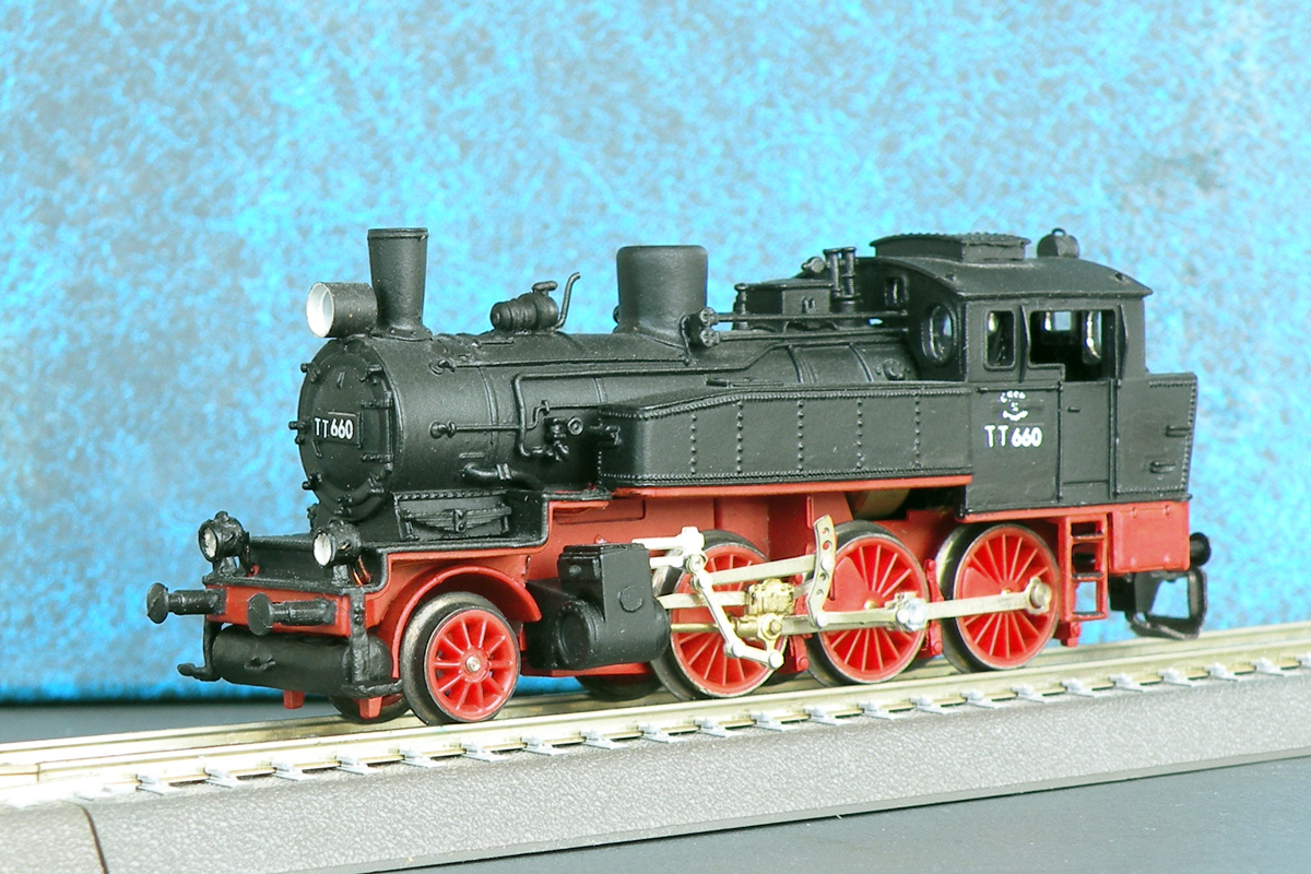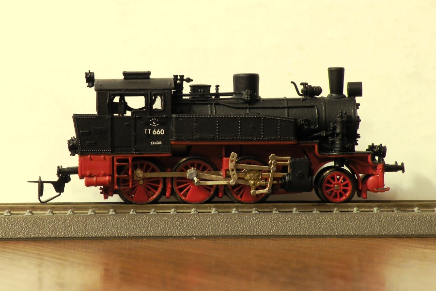 Эпоха: III Принадлежность: СЖД Фирма-производитель: JaTT - Jago Modellbau (конверсия) Артикул: 191 01 (JaTT) Год начала производства: (1997?) Год окончания производства: (2000?) Описание моделиМодель паровоза немецкой серии 91 (ранее Т9(3)) одной из первых появилась в производственной программе фирмы JaТТ во второй половине 1990-х гг. В начале 2000-х гг., после того как фирма JaТТ прекратила своё существование, модель попала в каталог фирмы Tillig, но её производство Тиллигом так и не было возобновлено. Впоследствии модель продавалась под маркой Jago. Из-за малого тиража и непродолжительного периода производства эта модель, к сожалению, является большой редкостью. Корпус и шасси модели выполнены из металла. Действующее освещение не предусмотрено. Полная конверсия модели паровоза 91 в паровоз ТТ СЖД предполагает, кроме изменения надписей, удаление колокола, установку турбогенератора советского образца, замену верхних прожекторов на более крупные, а также (что крайне затруднительно) – замену фронтонного листа дымовой коробки (ср. фото модели и прототипа). На этой странице представлены фотографии частичной конверсии, выполненной петербургским моделистом Игорем Сергеевым. Что касается полной конверсии, то как нам известно, она пока ещё не была проведена никем из моделистов. (Существует и другая модель паровоза немецкой серии 91, выпускавшаяся фирмой Pmt, соответствующая прототипу паровоза Т4 Мекленбургских железных дорог. Он был построен в 1097- 1922 годах, в количестве пятидесяти штук, получил на DRG серию BR91.19 и нумерацию c 1901 по 1950. Однако эта конструктивная разновидность BR91, по всей вероятности, никогда не использовалась на советских ж.д.). Описание прототипаТанк-паровозы серии ТТ, получившие на немецких железных дорогах DRG серию 91, а ещё ранее – Прусскую серию Т9(3) и Вюртенбергскую Т9, строились с 1900 года. В период с 1900-го по 1914-й год для Прусских железных дорог было построено 2054 паровоза (по другим данным 2055). Паровозы данного типа строились по всей Германии, на 12ти паровозостроительных заводах. 133 паровоза были заказаны государственными дорогами Эльзаса и Лотарингии. Для и Вюртенбергских железных дорог было построено 10 таких паровозов, так же некоторое количество паровозов (минимум 13) данного типа были произведены для небольших частных железных дорог: 3 паровоза для HBE , 2 для NbE. После Первой Мировой Войны примерно четверть паровозов данного типа была отчуждена в качестве контрибуции как на востоке - Восточная Пруссия так и на западе - SAAR и Франция. После первой мировой воины и объединении немецких «земельных железных дорог» под эгидой DRG На DRG поступили 1505 паровозов данной серии. Прусские паровозы T9(3) получили обозначения BR91.3 - BR91.18 номера с 303 по 1805 с пробелами, а Вюртенбергские BR91.20 номера с 2001 по 2010. В 1935-м году по возвращении SAAR-а в состав Германии вернулись и 30 паровозов серии Т9(3) получившие номера с 1806 по 1836. Локомотивы данной серии продолжали работать на железных дорогах Германии и после Второй Мировой Войны. Массово списываться они начали во второй половине 1950-х годов. На DB последний локомотив данной серии был оставлен до работы в 1965-м году, на DR четыре паровоза серии BR91.3 - BR91.18 « докатились» до 4-й эпохи, тем не менее и они были отставлены от работы до конца 1971 года. После Второй мировой войны часть паровозов данной серии поступила в СССР как трофеи и по репарациям, другая ча