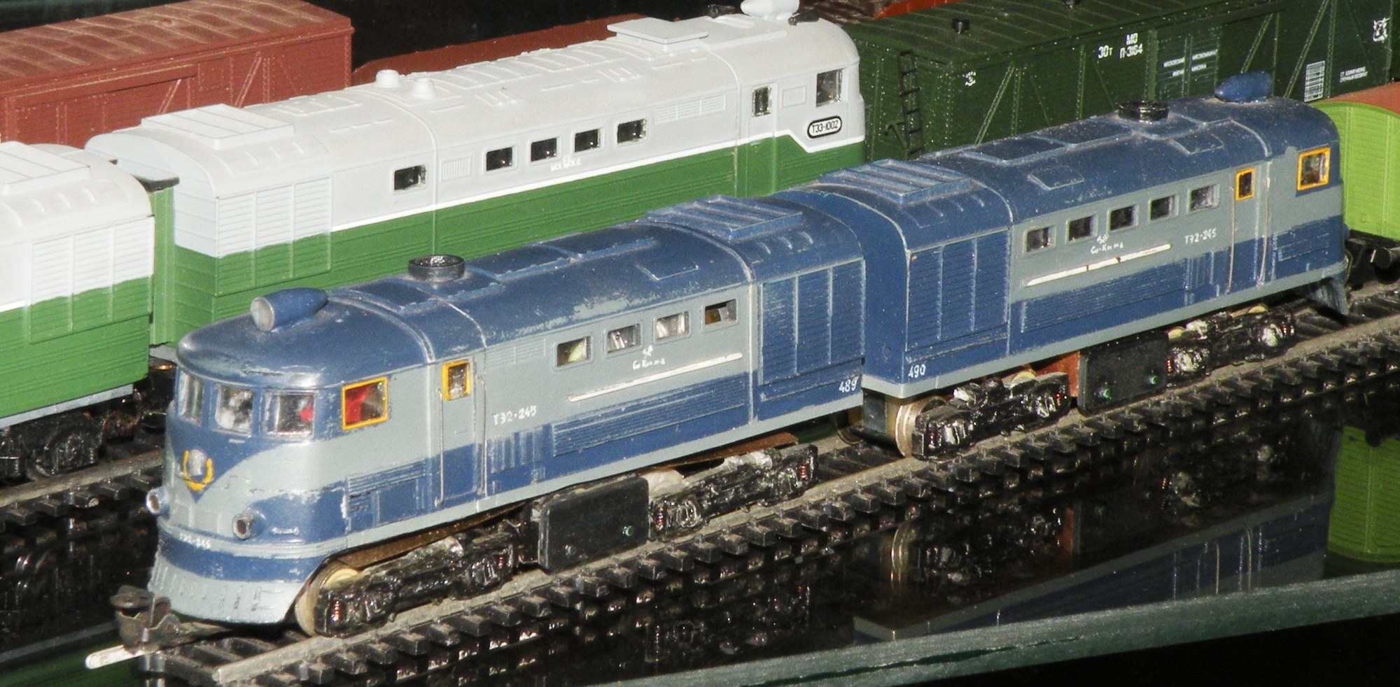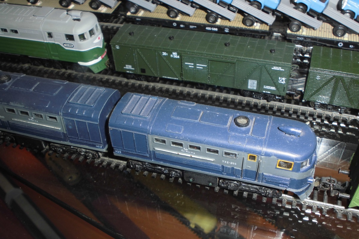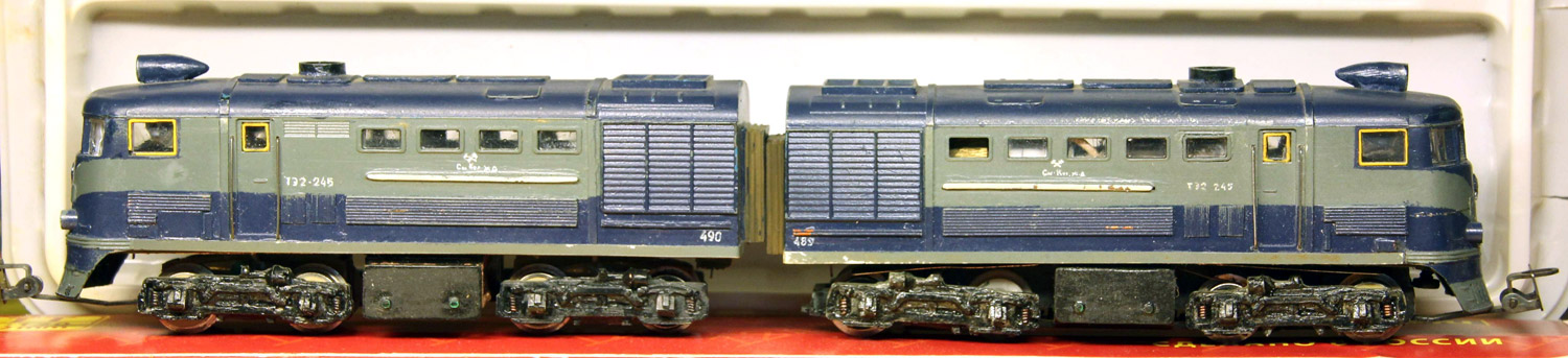 Разновидности: модель выполнена в единственном экземпляре Эпоха: III Принадлежность: СЖД Фирма-производитель: С.Ермоленко Описание моделиМодель тепловоза ТЭ2 была выполнена моделистом Сергеем Ермоленко (Ростов на Дону). Для изготовления корпуса частично использованы детали модели тепловоза ТЭ3 со старотипной кабиной производства "Пересвет". Модель ходовая. Обмоторена одна секция: ходовка на основе старого ЧМЭ2 (ВТТВ), снабженного мотором ДПМ, привод на две оси. Токосъём с 7 осей из 8. Оригинальные боковины тележек и топливные баки изготовлены самостоятельно. Другие модели тепловоза ТЭ2: - от В.Бражника (малая серия);тепловоза ТЭ2: - от И.Сергеева; - от С.Братского; - от А.Шувикова.