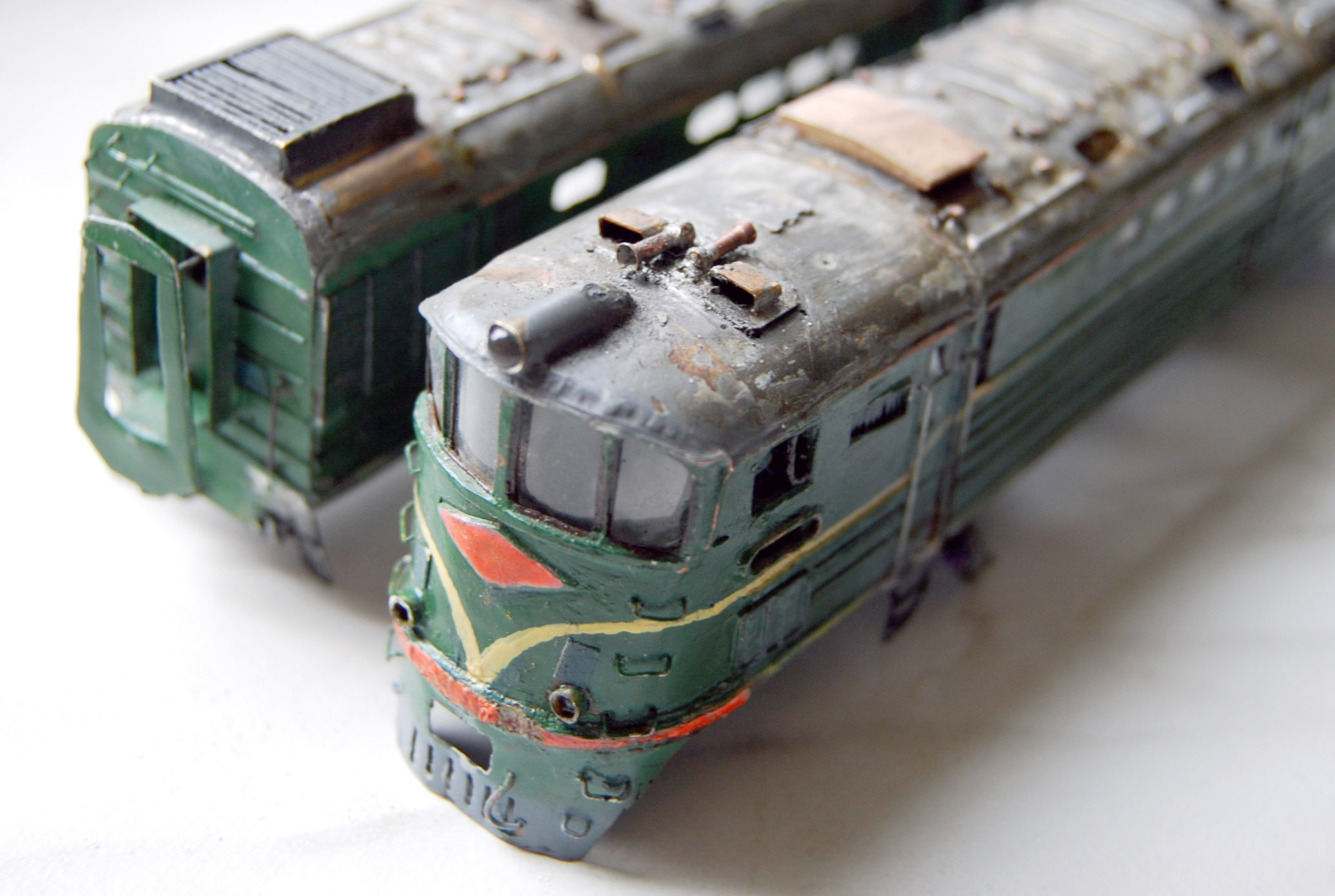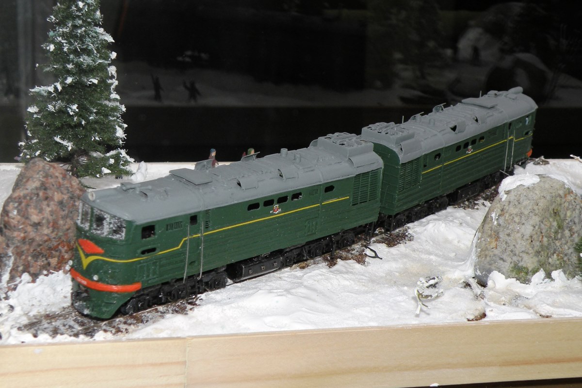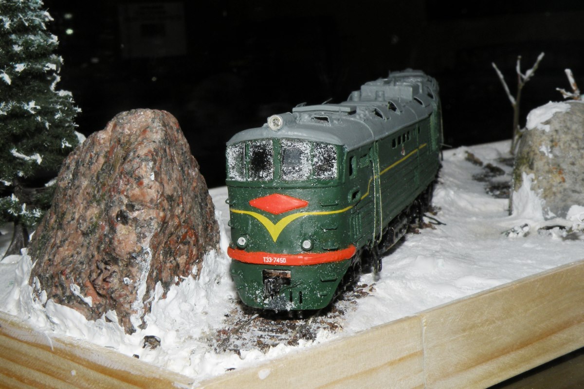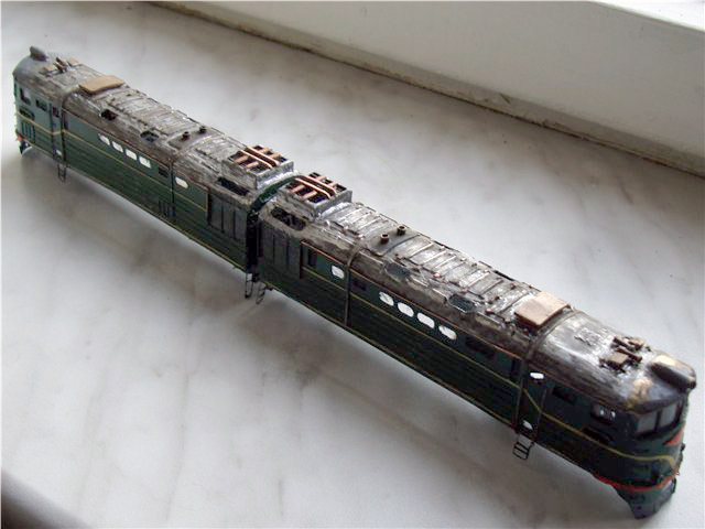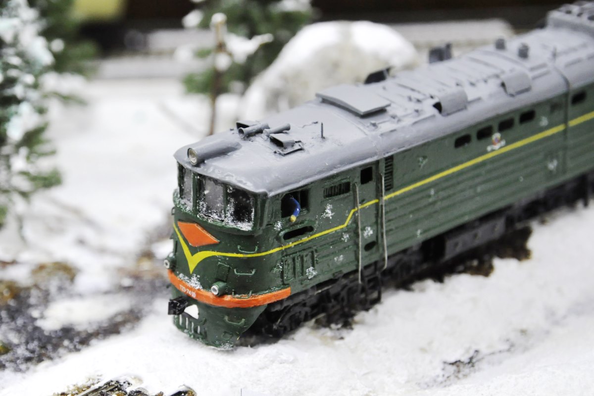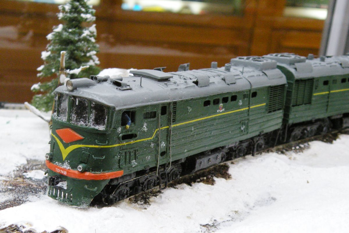 Разновидности: модель выполнена в одном экземпляре Эпоха: IV Принадлежность: СЖД Фирма-производитель: Запорожченко Е. Год начала производства: давно Год окончания производства: модель в работе Описание моделиМодель тепловоза ТЭ3-7450 - авторская работа петербургского моделиста Евгения Запорожченко. Корпус выполнен из металла. На протяжении 2010-х гг. модели проходила капитальный ремонт и доработку, получив освещение несколько динамических элементов, управляемых микроконтроллерами (таких как жалюзи холодильника и вращающиеся вентиляторы). Обновлённая модель впервые демонстрировалась на XXVI-й выставке "Железнодорожная модель - 2018" в Центральном музее ж.д. транспорта (Санкт-Петербург) на авторской диораме Е.Запорожченко "Зима, или ..." и стала победителем ежегодного Конкурса зрительских симпатий. Другие модели тепловоза ТЭ3: - от фирмы "Пересвет" (серийная модель, снята с производства); - от Д.Попова (малая серия). Описание прототипаТепловоз ТЭ3 – это целая эпоха российских железных дорог. Двухсекционный грузовой тепловоз ТЭ3 выпускался с 1953 по 1973 гг. и долгое время являлся самым распространённым тепловозом на всей железнодорожной сети бывшего СССР. В разные годы он строился Коломенским, Харьковским и Луганским (Ворошиловградским) тепловозостроительными заводами. В общей сложности было выпущено 6809 машин. Локомотивы, построенные до 1957 г., отличались иной формой кабины машиниста и расположением верхнего прожектора. На базе ТЭ3 были созданы пассажирский тепловоз ТЭ7 и усиленный трёхсекционный 3ТЭ3. Осевая формула локомотива 2(30-30), мощность дизелей 2 х 200 л.с., скорость – 100 км/ч. С 1990-х гг. происходит массовое списание ТЭ3, и эта массовая серия стремительно исчезает с железнодорожного пространства России. Сегодня мы ещё можем встретить ТЭ3 на многих железных дорогах России, но он уже становится одним из самых популярных экспонатов музеев железнодорожной техники. ТЭ3 разных периодов постройки экспонируются в музеях Санкт-Петербурга (ТЭ3-1001 с первоначальной формой кабины), Москвы (ТЭ3-5151) Новосибирска (ТЭ3-7376, настоящий № 7576), Екатеринбурга (ТЭ3-4820), Челябинска (ТЭ3-275), Ростова-на-Дону (ТЭ3-6938). В музеях стран СНГ этот тепловоз тоже очень распространенный экспонат: можно назвать ТЭ3-6965 в Бресте, ТЭ3-7643 в Донецке, ТЭ3-7593 в Риге и ТЭ3 с неустановленным номером в Ташкенте. В городах России ТЭ3 установлен как памятник в Краснодаре (одна секция, № 2255А, настоящий № ТЭ3-7544), Сургуте (ТЭ3-6249), на станции Орск-Грузовой (одна секция, ТЭ3-003), в депо Карасук (одна секция, ТЭ3-006) и Кулунда (другая секция того же ТЭ3-006).