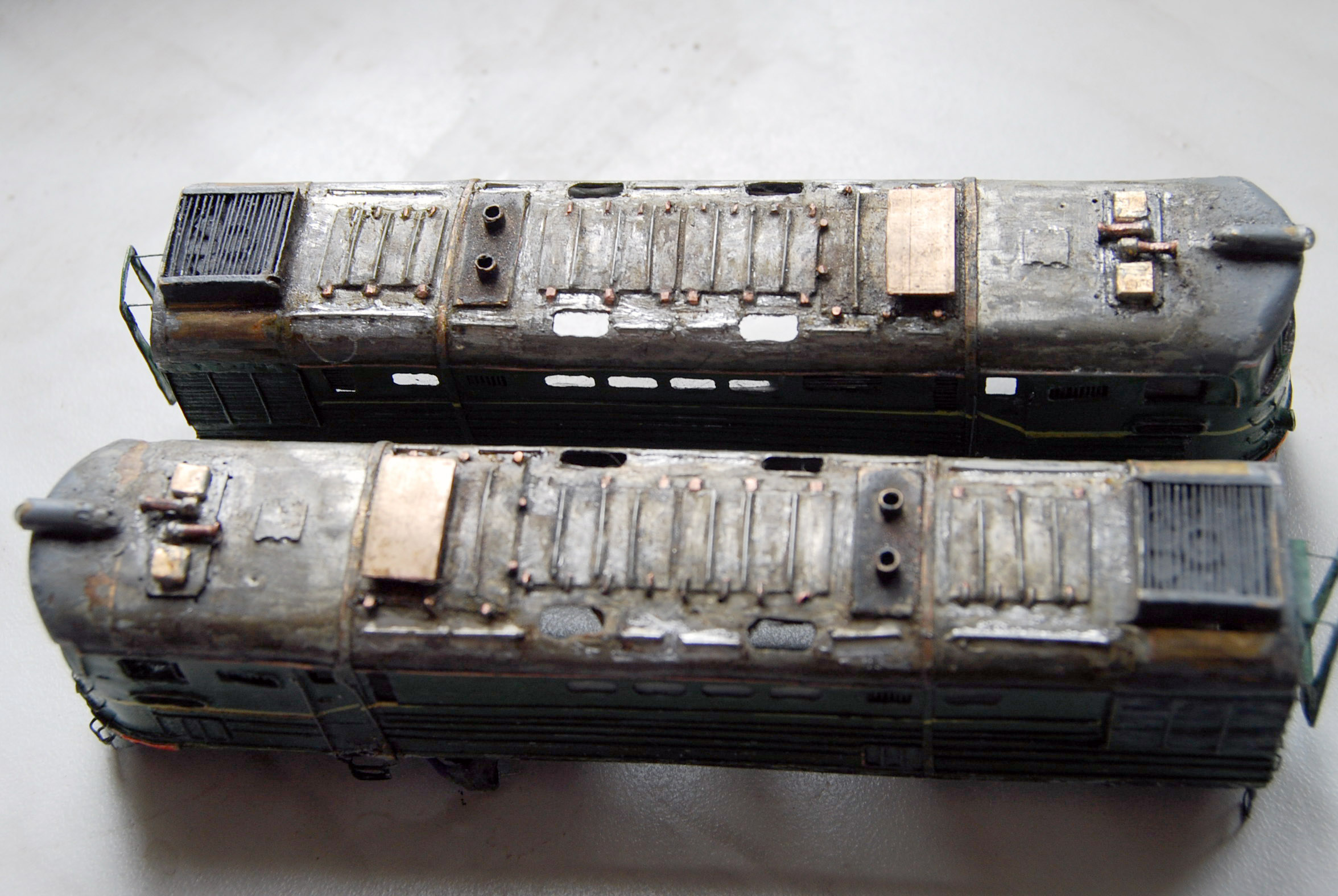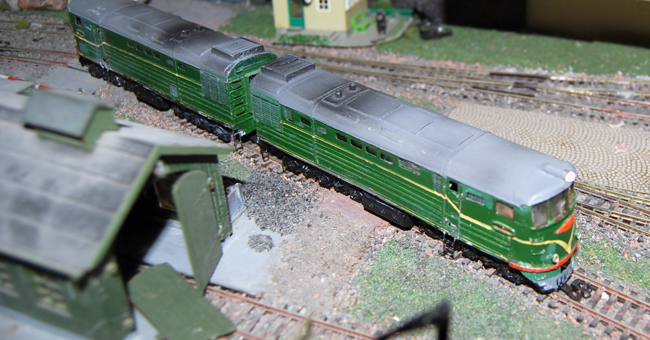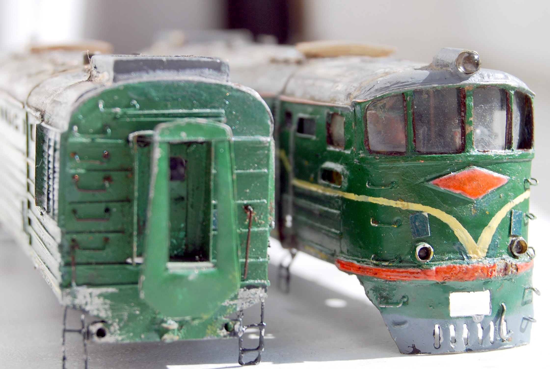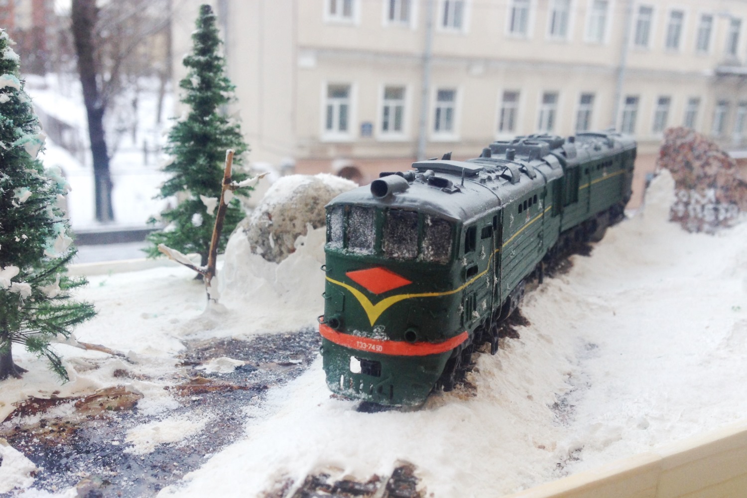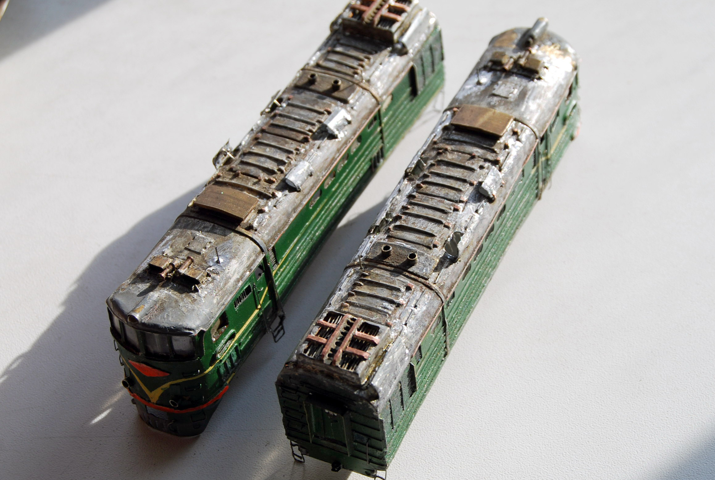 Разновидности: модель выполнена в одном экземпляре Эпоха: IV Принадлежность: СЖД Фирма-производитель: Запорожченко Е. Год начала производства: давно Год окончания производства: модель в работе Описание моделиМодель тепловоза ТЭ3-7450 - авторская работа петербургского моделиста Евгения Запорожченко. Корпус выполнен из металла. На протяжении 2010-х гг. модели проходила капитальный ремонт и доработку, получив освещение несколько динамических элементов, управляемых микроконтроллерами (таких как жалюзи холодильника и вращающиеся вентиляторы). Обновлённая модель впервые демонстрировалась на XXVI-й выставке "Железнодорожная модель - 2018" в Центральном музее ж.д. транспорта (Санкт-Петербург) на авторской диораме Е.Запорожченко "Зима, или ..." и стала победителем ежегодного Конкурса зрительских симпатий. Другие модели тепловоза ТЭ3: - от фирмы "Пересвет" (серийная модель, снята с производства); - от Д.Попова (малая серия). Описание прототипаТепловоз ТЭ3 – это целая эпоха российских железных дорог. Двухсекционный грузовой тепловоз ТЭ3 выпускался с 1953 по 1973 гг. и долгое время являлся самым распространённым тепловозом на всей железнодорожной сети бывшего СССР. В разные годы он строился Коломенским, Харьковским и Луганским (Ворошиловградским) тепловозостроительными заводами. В общей сложности было выпущено 6809 машин. Локомотивы, построенные до 1957 г., отличались иной формой кабины машиниста и расположением верхнего прожектора. На базе ТЭ3 были созданы пассажирский тепловоз ТЭ7 и усиленный трёхсекционный 3ТЭ3. Осевая формула локомотива 2(30-30), мощность дизелей 2 х 200 л.с., скорость – 100 км/ч. С 1990-х гг. происходит массовое списание ТЭ3, и эта массовая серия стремительно исчезает с железнодорожного пространства России. Сегодня мы ещё можем встретить ТЭ3 на многих железных дорогах России, но он уже становится одним из самых популярных экспонатов музеев железнодорожной техники. ТЭ3 разных периодов постройки экспонируются в музеях Санкт-Петербурга (ТЭ3-1001 с первоначальной формой кабины), Москвы (ТЭ3-5151) Новосибирска (ТЭ3-7376, настоящий № 7576), Екатеринбурга (ТЭ3-4820), Челябинска (ТЭ3-275), Ростова-на-Дону (ТЭ3-6938). В музеях стран СНГ этот тепловоз тоже очень распространенный экспонат: можно назвать ТЭ3-6965 в Бресте, ТЭ3-7643 в Донецке, ТЭ3-7593 в Риге и ТЭ3 с неустановленным номером в Ташкенте. В городах России ТЭ3 установлен как памятник в Краснодаре (одна секция, № 2255А, настоящий № ТЭ3-7544), Сургуте (ТЭ3-6249), на станции Орск-Грузовой (одна секция, ТЭ3-003), в депо Карасук (одна секция, ТЭ3-006) и Кулунда (другая секция того же ТЭ3-006).