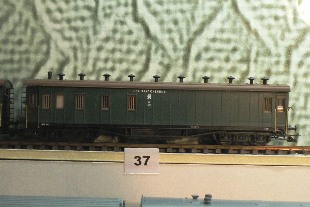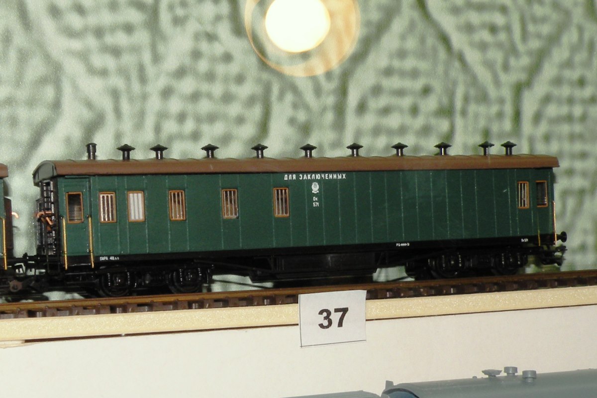Эпоха: III Принадлежность: СЖД Фирма-производитель: Демин В. Год начала производства: 2018 Описание моделиМодель 18-метрового вагона для перевозки спецконтингента (заключённых) выполнена петербургским моделистом Виктором Дёминым. Технология - литьё из пластика под высоким давлением. Для изготовления модели специально изготовлены пресс-формы для стенок и крыши. Использованы серийные комплектующие производства фирмы "Пересвет" (тамбур, окна, дефлекторы, тележки типа АРВ, которые не являются аутентичными для 18-метровых вагонов). Модель (впервые экспонировалась на выставке в ЦМЖТ, Петербург, в 2018 г. Описание прототипаПрототип - вагон длиной 18 м. с металлической рамой, дореволюционной постройки.