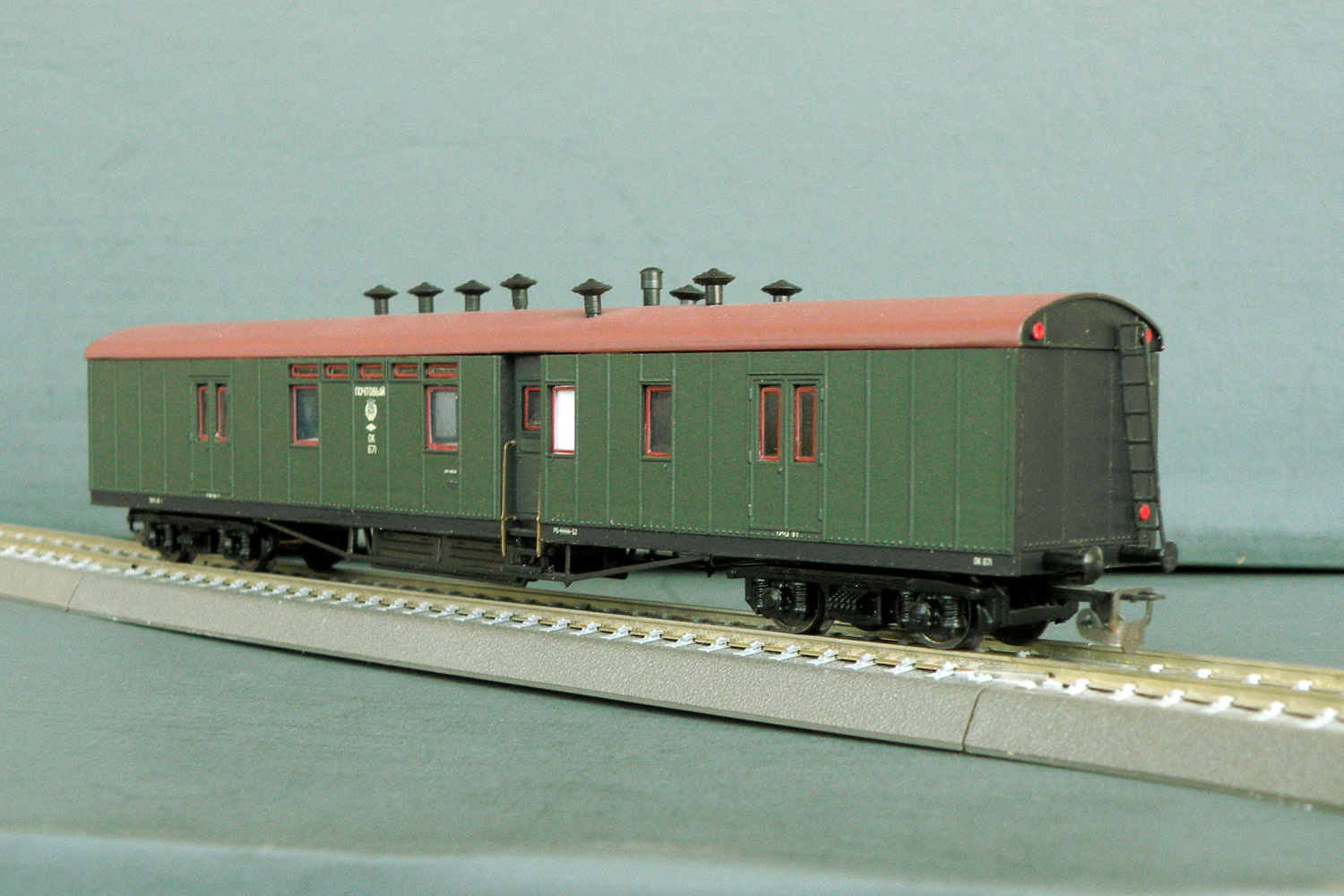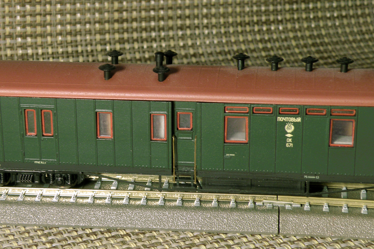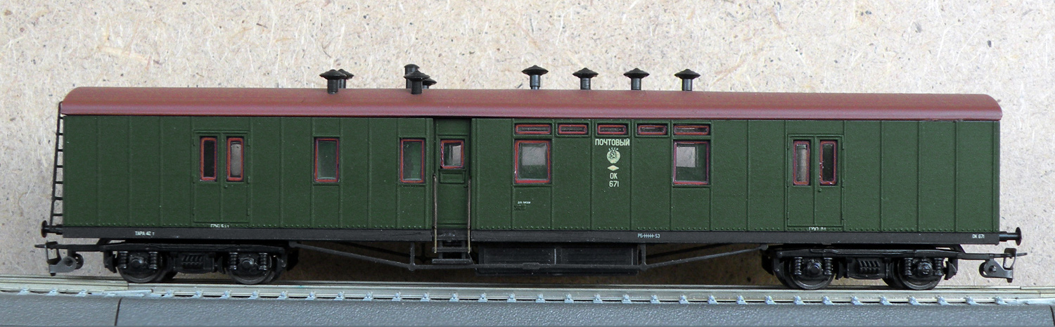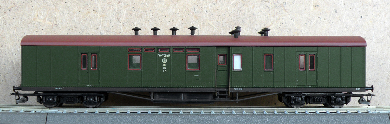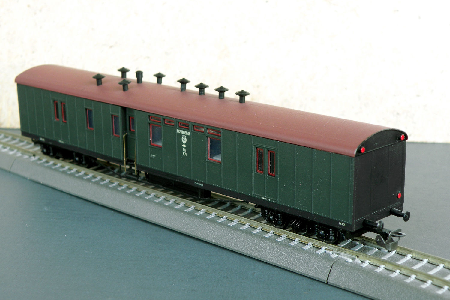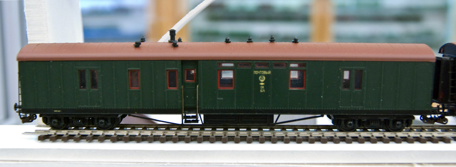 Разновидности: окраска, номера Эпоха: III Принадлежность: СЖД Фирма-производитель: Московский ТТ-Клуб Год начала производства: 2010 Описание моделиПочтовый вагон длиной 20 м. - малосерийный проект Московского ТТ-Клуба. Материал корпуса – полистирол, надписи - тампопечать. Узлы ходовой части унифицированы с вагонами фирмы «Пересвет». Первая партия была в марте 2011 г. выпущена в классическом зелёном варианте. Ожидавшийся вслед за этим выпуск в синей окраске ранней "Красной стрелы" был отложен. Модель почтового 20-м. вагона может быть использована для формирования модельных составов III эпохи вместе с различными типами «егоровских» вагонов производства фирмы «Пересвет». Предсерийные образцы модели почтовых вагонов в двух окрасках, изготовленные В.Дёминым, экспонировались на выставке в ЦМЖТ (Санкт-Петербург) в марте 2010 г. Описание прототипаЭти вагоны, известные как «егоровские» по имени базового завода-производителя (Завода им. И.Е.Егорова), хотя и строились в основном Тверским (Калининским) вагоностроительным заводом, ходили в 1920-50-е гг. в составах почтово-багажных, пассажирских и скорых поездов, в т.ч. и с первыми составами «Красной Стрелы». Из отличительных особенностей - тверские 20-метровые почтари имели увеличенную до 14500мм базу (против 13970 у 20,2-метровых багажных и пассажирских и 13770 у 20-метровых мягких)
