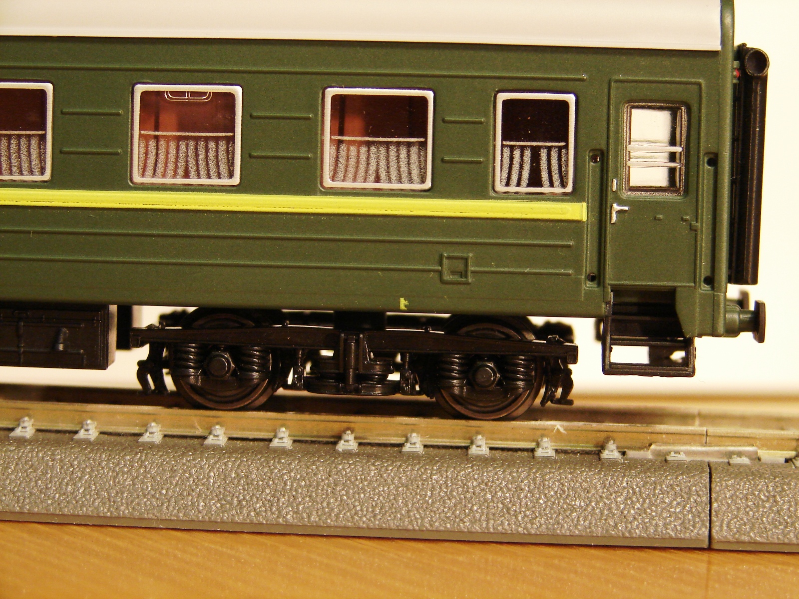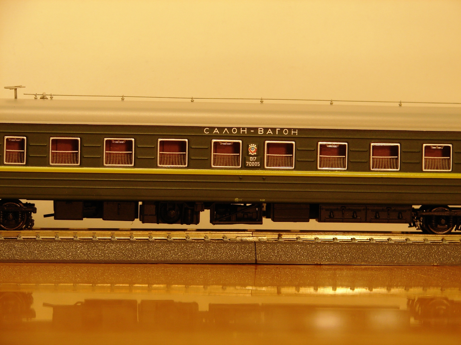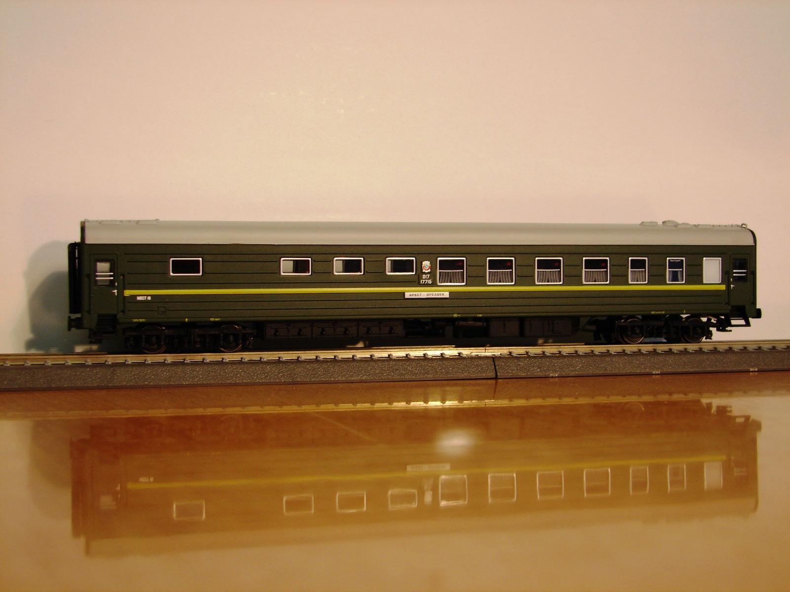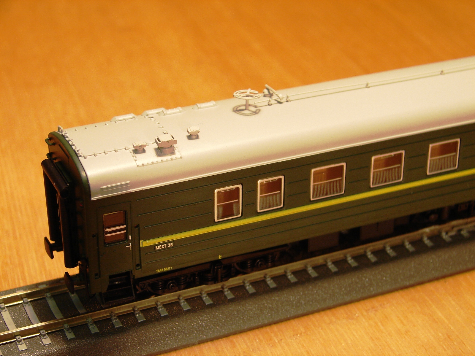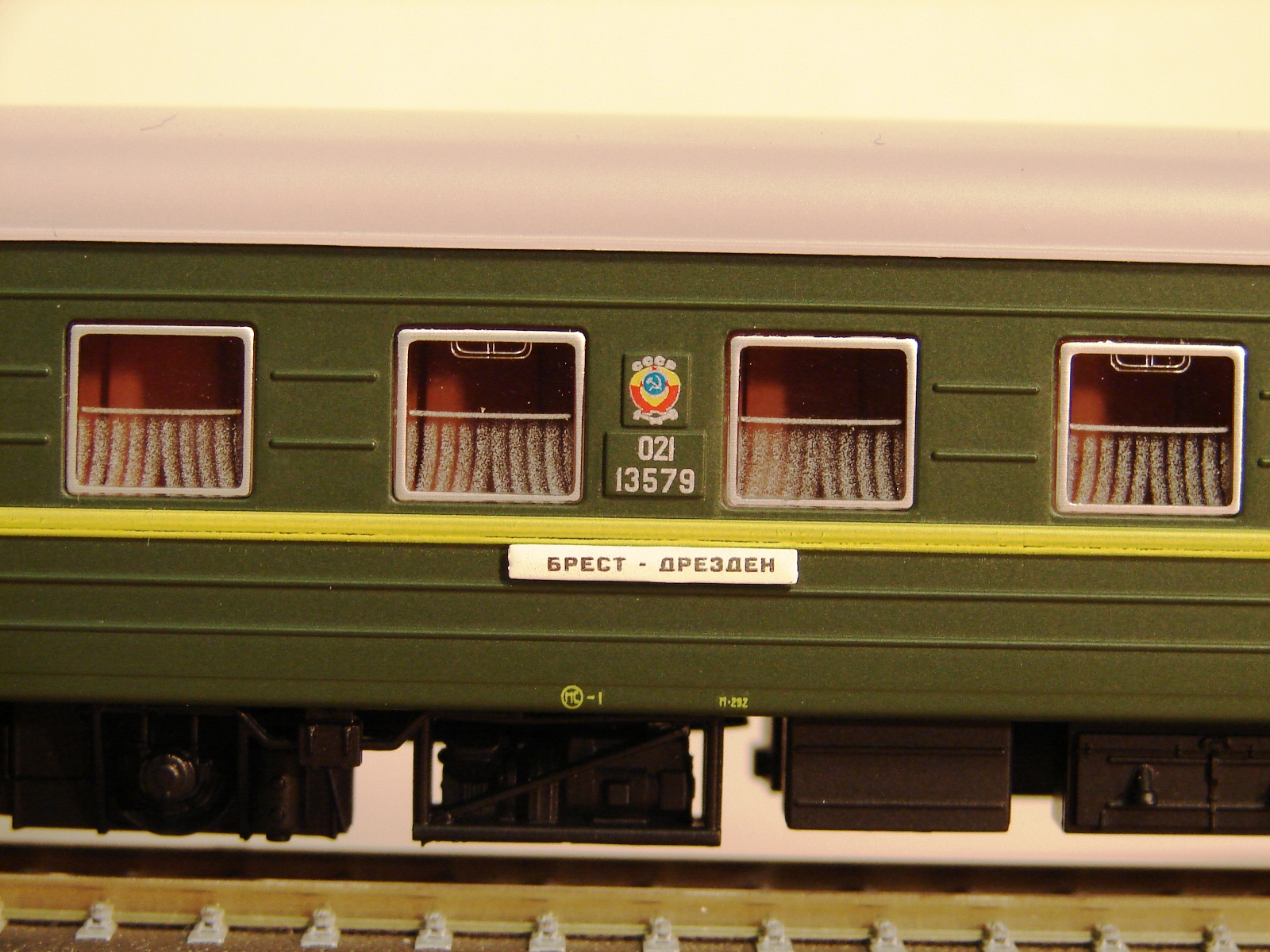 Разновидности: купейный вагон, штабной вагон, вагон-бар Эпоха: IV Принадлежность: СЖД Фирма-производитель: Херис, г. Мёнхенгладбах, Германия Год начала производства: 2018 Описание моделиПассажирские вагоны ЦМВ, как и другие модели в ТТ, разработаны и выпускаются фирмой Херис по заказу немецкой сети игрушечных магазинов «Шпилемакс» для эксклюзивной продажи на территории Германии только в этих магазинах. В другие страны поставляются свободно. Модели выполнены из пластика АБС на современном техническом уровне. Они оснащены механизмом динамической сцепки, хорошо проработанными интерьером и подвагонным оборудованием, многочисленными накладными деталями. Все накладные детали, кроме поручней, установлены уже на заводе. Модели выпущены, конечно, в первую очередь для немецких любителей ТТ и изображают условный состав для перевозки военнослужащих ГСВГ. Поэтому они имеют маршрутные указатели «Брест-Дрезден» и тележки типа «Gorlitz V» для движения по колее 1435 мм. Необходимо отметить, что вагоны ЦМВ, как и другие ТТ модели фирмы Херис, не комплектуются головками сцепок. Предполагается, что покупатель должен самостоятельно установить на вагоны головки той системы, которую предпочитает. На начало 2019 г. поступили в продажу 8 разновидностей вагонов: - купейный вагон ( 5 различных бортовых номеров ) - штабной вагон с антенной - штабной вагон с антенной с надписью «вагон-салон» - вагон-бар По утверждению фирмы Херис, каждая следующая партия вагонов будет изготовлена с новыми бортовыми номерами. При удачных продажах уже выпущенных вагонов не исключается появление новых окрасок и новых вариантов кузовов. В первую очередь предполагается выпуск вагона-ресторана. Другие модели аналогичных вагонов ЦМВ: - Купейный вагон ЦМВ от "ТТ-Модель" (серийная модель); - Вагон-бар (малосерийный проект С.Иванова в кооперации с "ТТ-Модель"). - Вагон-ресторан ЦМВ от "ТТ-Модель" (серийная модель); Описание прототипаУнифицированные вагоны пассажирских поездов СЖД послевоенной разработки, которые для простоты обобщенно называются «Вагоны ЦМВ», строились многими заводами СССР и социалистических стран с 1946 г. и до начала нового века. За долгие годы производства детали конструкции вагонов многократно менялись заводами-производителями с учётом своих различных технологических возможностей. Поэтому количество вариантов, модификаций и комплектаций вагонов ЦМВ с трудом поддаётся подсчёту. Систематизация истории этих вагонов ещё предстоит. Прототипом модели купейных вагонов фирмы Херис служит вагон постройки завода в г. Аммендорф (ГДР) периода второй половины 1980 г.г., а вагона-бара и перспективного вагона-ресторана – соответственно вагоны завода в г. Гёрлитц (ГДР) тех же лет постройки. Вагоны, используемые в международном сообщении комплектовались дополнительной парой тележек колеи 1435 мм. Они подкатываются под вагоны при пересечении границы на специальных пунктах замены тележек. В наши дни классические ЦМВ постепенно уступают место на сети РЖД новым пассажирским вагонам. Но огромное количество выпущенных за долгие годы ЦМВ даёт уверенность, что ещё долгие годы они будут определять собой привычный нам облик отечественных железных дорог.