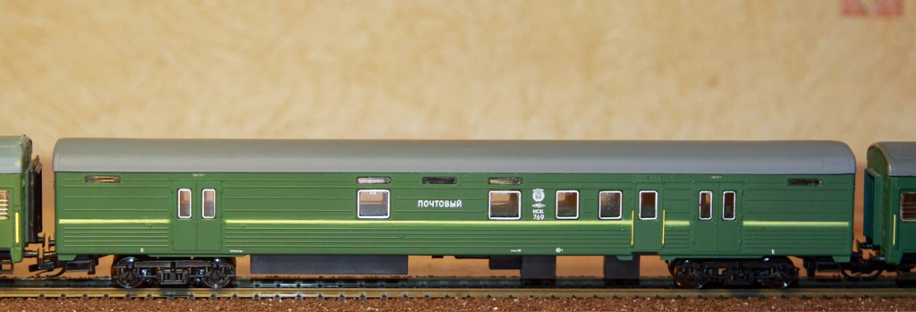 Разновидности: номер, дорога приписки, крыша Эпоха: III-V Принадлежность: СЖД, РЖД Фирма-производитель: ТТ-Модель Год начала производства: 2013 Год окончания производства: производится по настоящее время Артикул: 2510 Описание моделиПодготовка к выпуску почтового ЦМВ велась на фирме "ТТ-Модель" несколько лет. Уже в 2011 году, на мартовской выставке в ЦМЖТ, было объявлено об ожидаемом появлении этой модели. Впервые, после значительного перерыва, фирмой "ТТ-Модель" была изготовлена новая пресс-форма для литья корпусов из пластика (точнее, новые вставкии для изготовления боковых стенок в старую пресс-форму для моделей ЦМВ). Наконец, в сентябре 2013 г. появились первые серийные образцы. Первые из них представляют прототипы, курсировавшие на СЖД в 60-х гг. прошлого века (два варианта приписки: Ок.ж.д. - арт. 2510-о и Мск.ж.д. - арт. 2510-м) и в различных эпохах: III, IV. Модели первой партии имели гладкую крышу без крышевых дефлекторов; более поздние модели получили более правильную крышу с 12-ю вытяжными (вентиляционными) дефлекторами, не считая дополнительно устанавливаемого печного дефлектора (входит в комлект накладных деталей), характерную для почтовых вагонов 22СБ, выпускавшихся с 1964 г. В настоящее время производится модель с гофрированной крышей, характерной для почтовых вагонов выпуска 70-80-х гг. К сожалению, несмотря на хорошую деталировку боковых стенок и новую крышу, модель отличают определённые упрощения. Во-первых, использовано днище от купейного ЦМВ, а не от почтового (это днище используется на всех ЦМВ фирмы "ТТ-Модель", включая багажный вагон и вагон-ресторан). В случае с почтовым вагоном это упрощение осложнено несоответствием между ступеньками (которые размещены по краям днища) и дверью (в средней части боковой стенки). Фирмой "ТТ-Модель" в связи с этим рекомендуется "ступеньки по сторонам отщипнуть и 2 приклеить к одинарным дверям", но на практике это приводит к порче ступенек. Во-вторых, использованы традиционные для фирмы "ТТ-Модель" тележки, не соответствующие прототипу, несмотря на то, что в начале 2013 г. появились аутентичные тележки для ЦМВ от А.Мурашова и фирмы "Пересвет". Интересный факт. Предыдущая серийная модель этой фирмы - вагон-ресторан ЦМВ - увидела свет ещё в 2005 году. Другие модели почтового ЦМВ: - от фирмы "ТТ-Модель"/А.Шапорды (малая серия, эпоксидная смола); - от А.Шапорды (современный ЦМВ); - от Мануфактуры "Норкин-Модель" (малая серия, травлёная латунь). Почтовый ЦМВ - одна из самых востребованных моделей на российском ТТ-рынке. Она является хорошим дополнением к другим типам цельнометаллических вагонов (купейный, багажный, ресторан от "ТТ-Модель", вагон РИЦ от Tillig), позволяя сформировать полноценные составы пассажирских и почтово-багажных поездов конца III-й, IV-й и V-й модельных эпох. Описание прототипаПрототип имеет обозначение модели (типа) 22СБ.