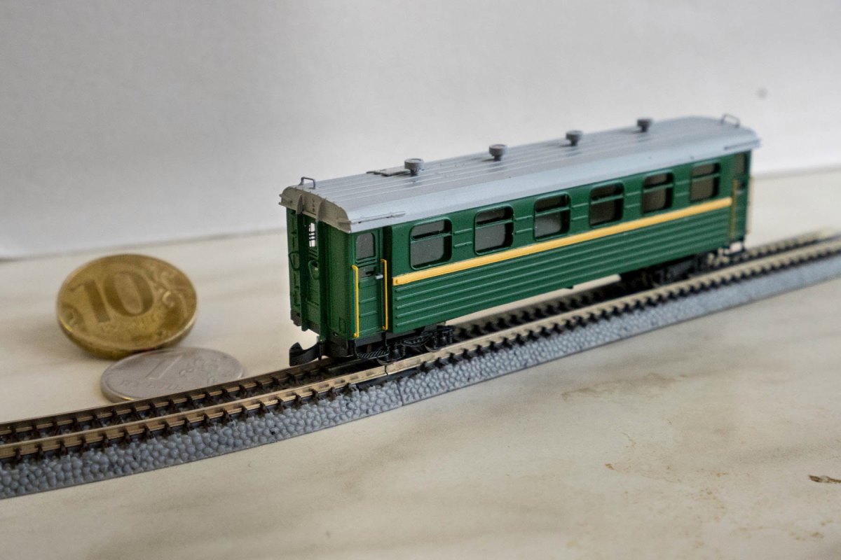 Разновидности: эпоха, цвет, деталировка - по желанию заказчика Эпоха: III-V Принадлежность: СЖД, РЖД Фирма-производитель: Норкин-модель Год начала производства: 2017 Год окончания производства: малая серия Описание моделиМодель узкоколейного вагона ПВ-40 была впервые представлена в корпоративной экспозиции Мануфактуры "Норкин-Модель" на традиционной выставке в ЦМЖТ (Санкт-Петербург) в 2017 г. Типоразмер модели - ТТе (масштаб 1:120, ширина колеи 6 мм). Модель выполнена из травлёной латуни, отличается высокой деталировкой и возможностью изготовления в различных вариациях. Первая партия полностью готовых моделей поступила в реализацию в феврале 2018 г. Заказ модели: - в Москве - в Санкт-Петербурге Описание прототипа4-осный цельнометаллический вагон ПВ-40 для узкоколейных дорог колеи 750 мм выпускался Демиховским машиностроительным заводом с 1955 г. и вплотьб до конца советского периода. Вагоны оборудованы ручным и автоматическим тормозами, санузлом и водяным отоплением, пассажировместимость — 40 мест для сидения. Распространён на детских железных дорогах и других железных дорогах колеи 750 мм стран бывшего СССР.