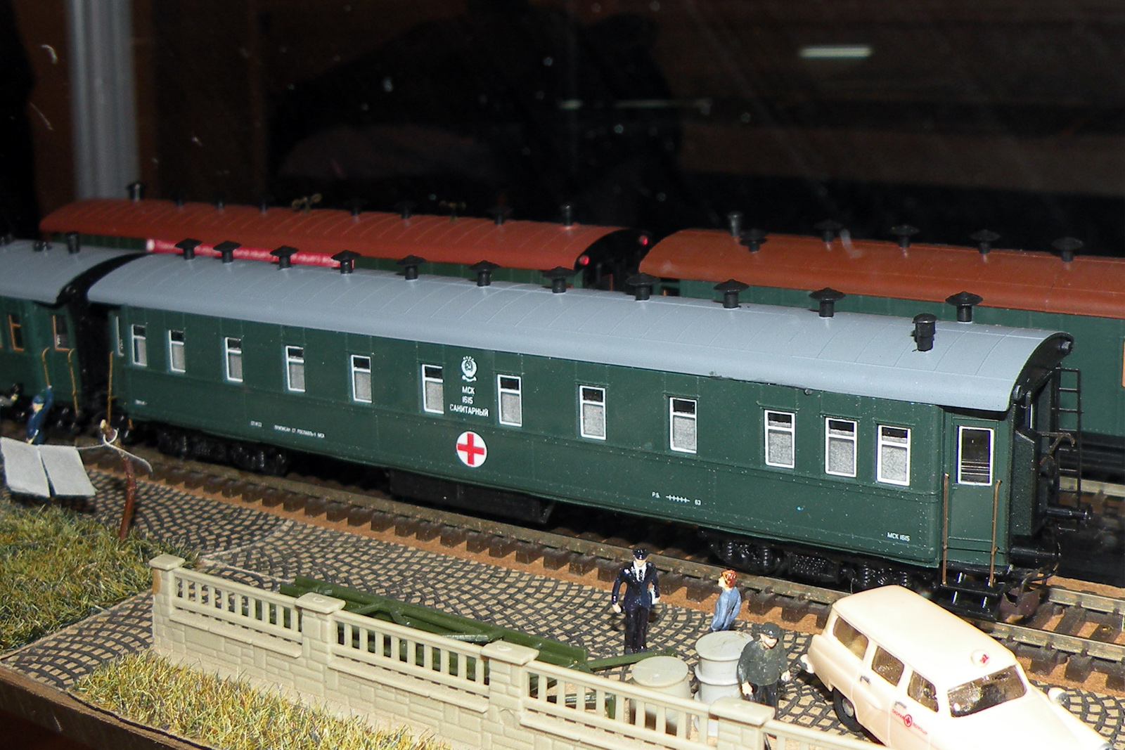 Кадр 1. Модель санитарного вагона, переоборудованного из плацкартного вагона "владикавказского" типа.