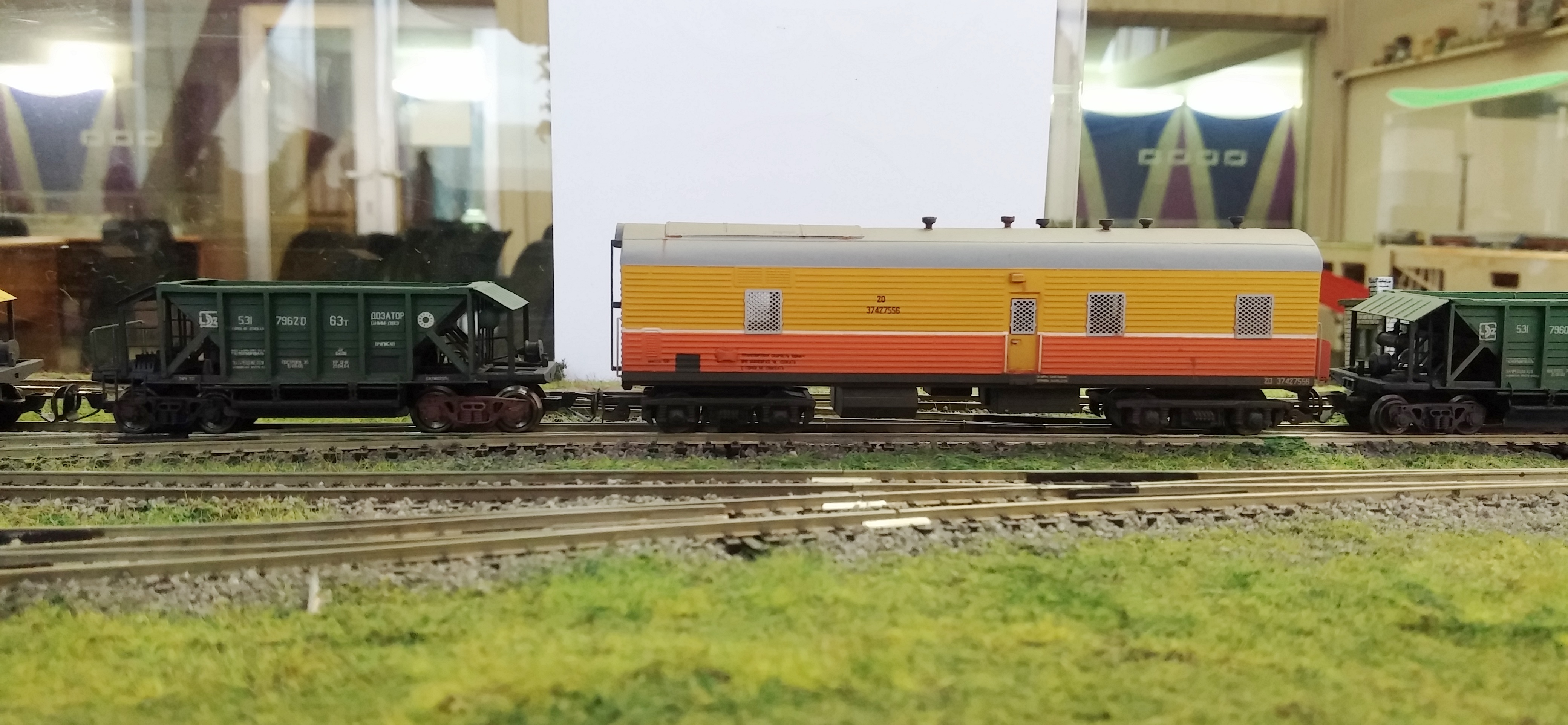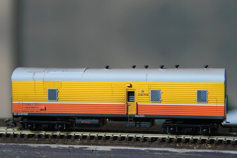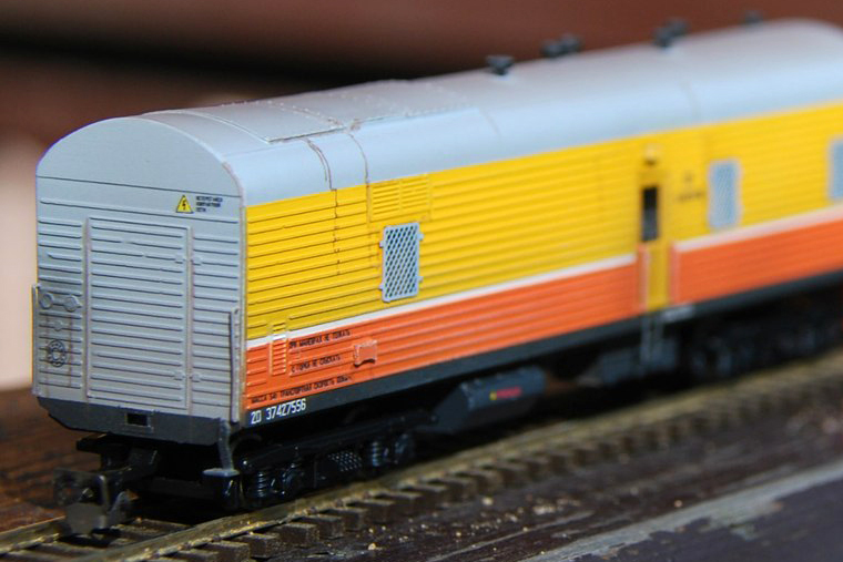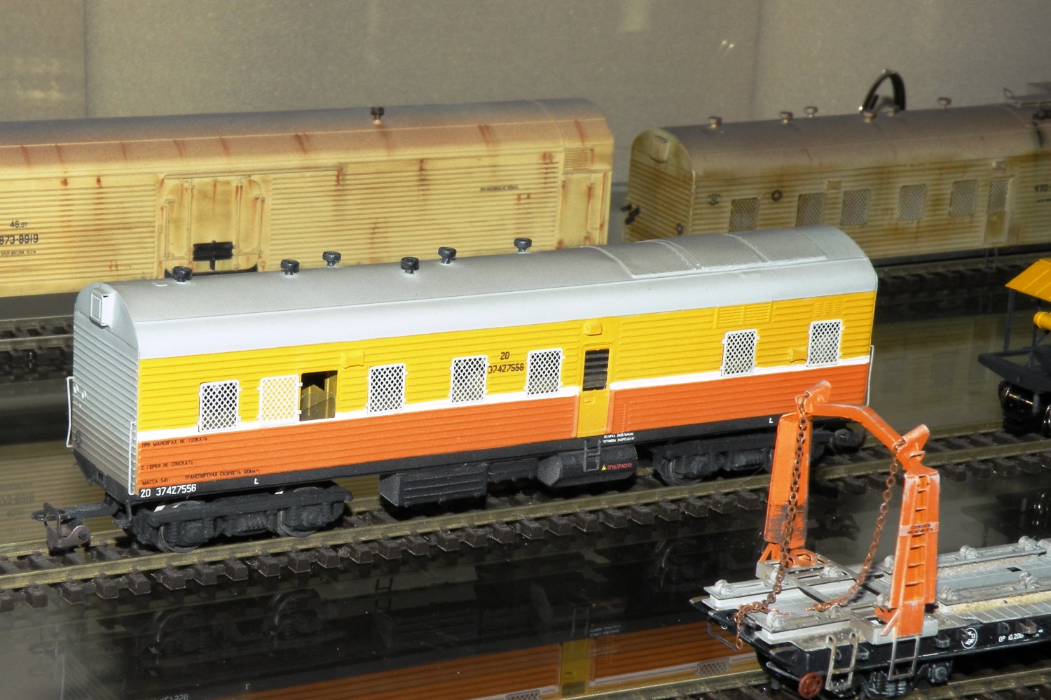 Разновидности: под заказ Эпоха: V Принадлежность: РЖД Фирма-производитель: Норкин-модель Год начала производства: 2009 Год окончания производства: до настоящего времени Артикул: 2001 Описание моделиВ середине 2009 г. фирма "Норкин-Модель" (г. Москва) приступла к изготовлению наборов для самостоятельной сборки агрегатного вагона рефсекции ZB-5. Во второй половине 2009 г. начато штучное (под заказ) изготовление готовых моделей агрегатного вагона. Один из типичных вариантов этой модели представляет собой вагон-"бригадник" (в составе путеукладочного поезда или ПМС), переоборудованый из списанного агрегатного вагона рефсекции. Модель отличается высокой степенью деталировки и возможностью вариативной конфигурации (открытые-закрытые двери, наличие-отстутствие решёток на окнах и др.).