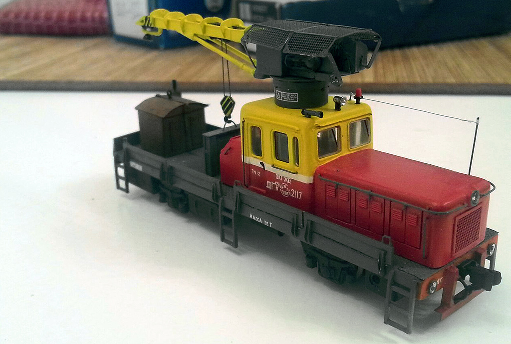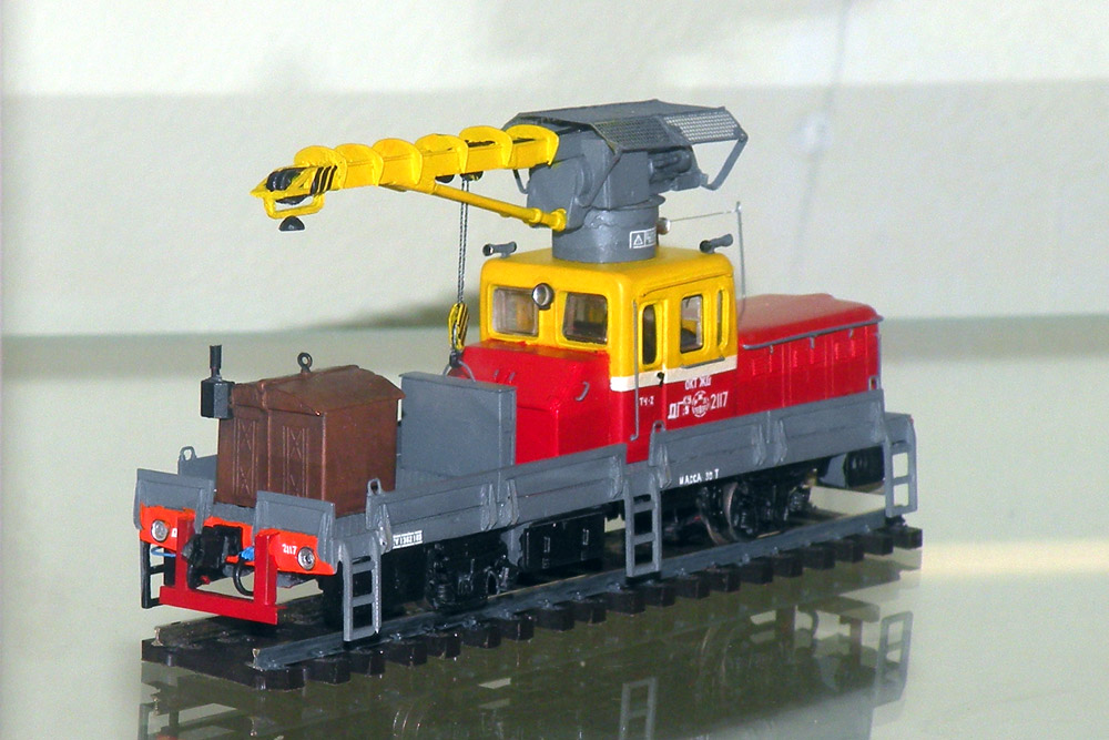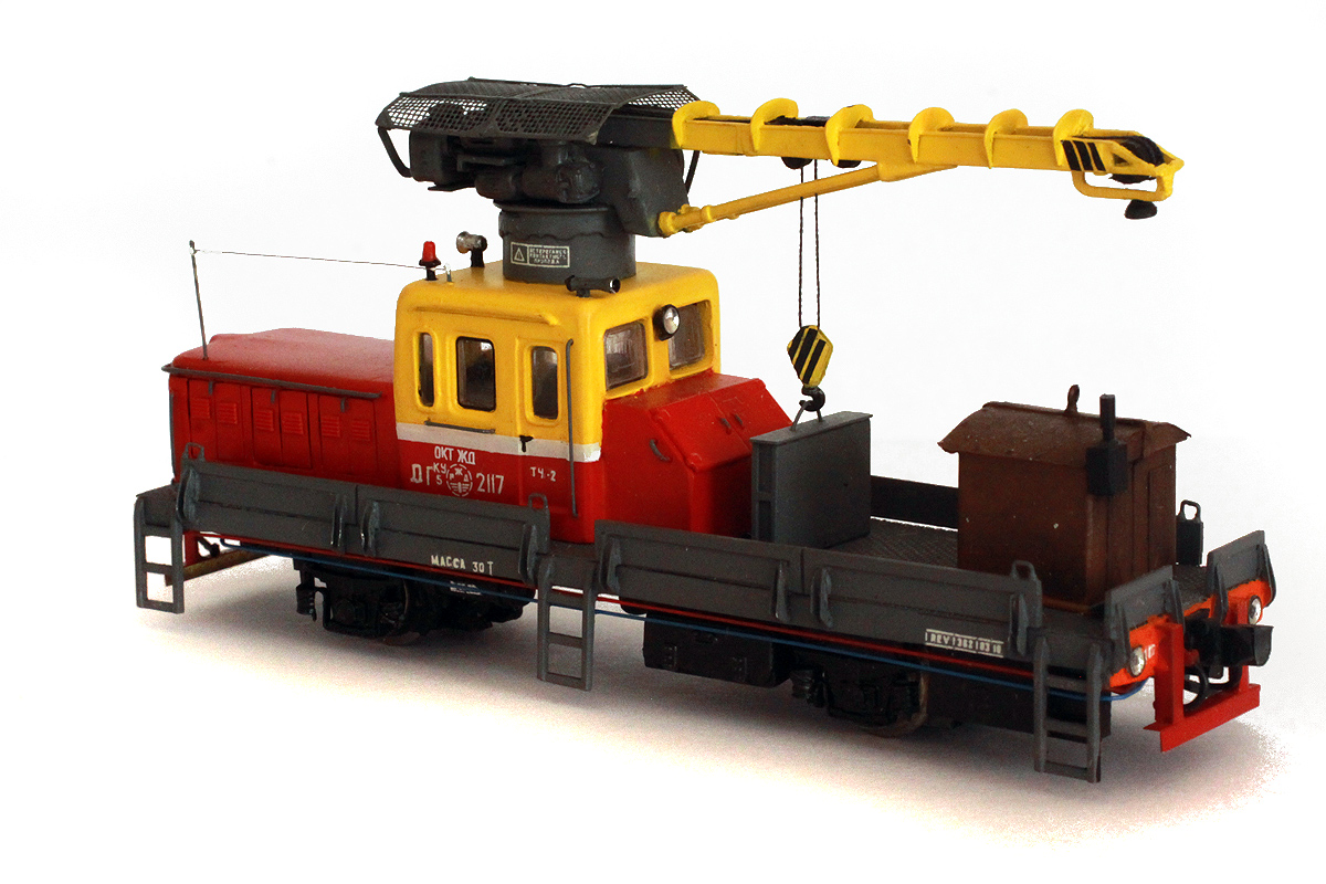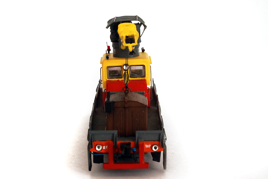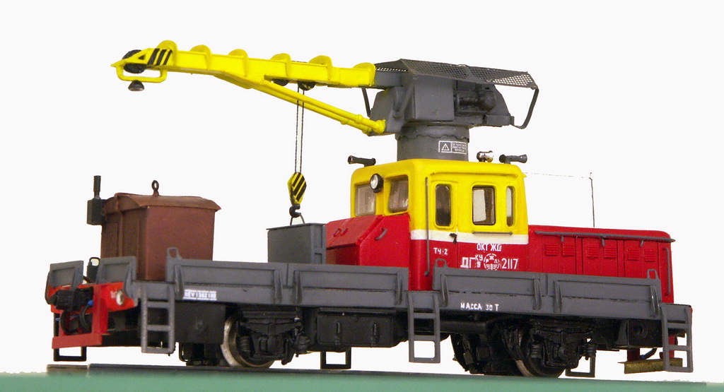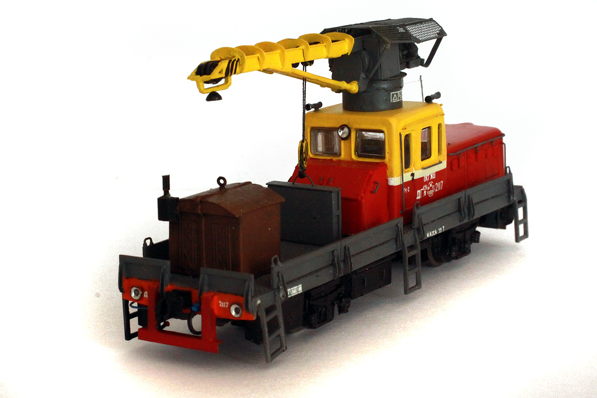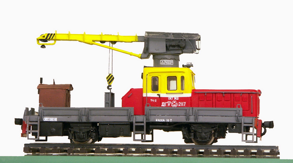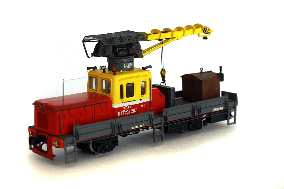 Эпоха: V Принадлежность: РЖД Фирма-производитель: С.Братский Описание моделиМодель крана-дрезины ДГКу приписки Октябрьской ж.д. выполнена московским моделистом С.В.Братским. Модель впервые экспонировалась на выставке "Чугунка в моделях" в московском Политехническом музее в ноябре 2012 г. В настоящее время модель находится в коллекции Сергея Животкова (Москва). Другие модели ДГКу: - от В.Прийменко; - от С.Набатова и С.Загорулько (малая серия); - от И.Гаврилова; - от "Hekttor" (травлёный "кит"). Описание прототипаАвтодрезина ДГКу предназначена для выполнения широкого комплекса работ, среди которых: -погрузка и выгрузка, перевозка грузов на собственной и прицепной платформах; -перевозка рабочих бригад к месту работ; -питание электроэнергий 380/220 В 50 Гц и сжатым воздухом 8 атм потребителей; -подтаскивание грузов лебёдкой со стороны в зону работы крана и др. Грузоподъёмность платформы 6 т, крана - до 3 т. Скорость - 80 км/ч. Пассажировместимость - 5 чел. Дрезина широко распространена на сети железных дорог России, Украины, Беларуси.