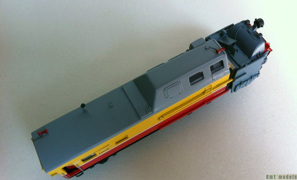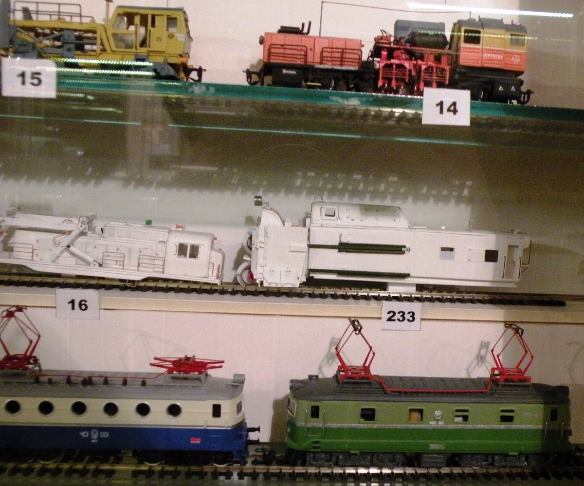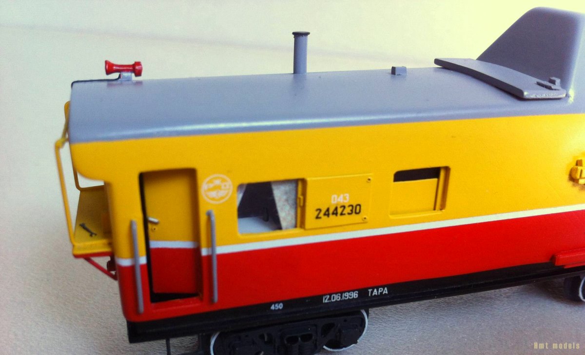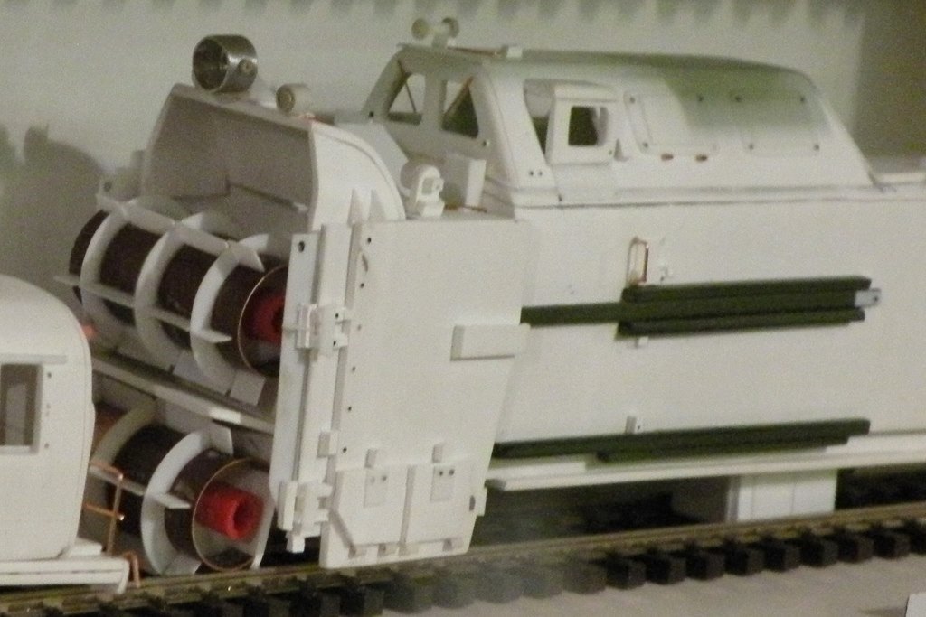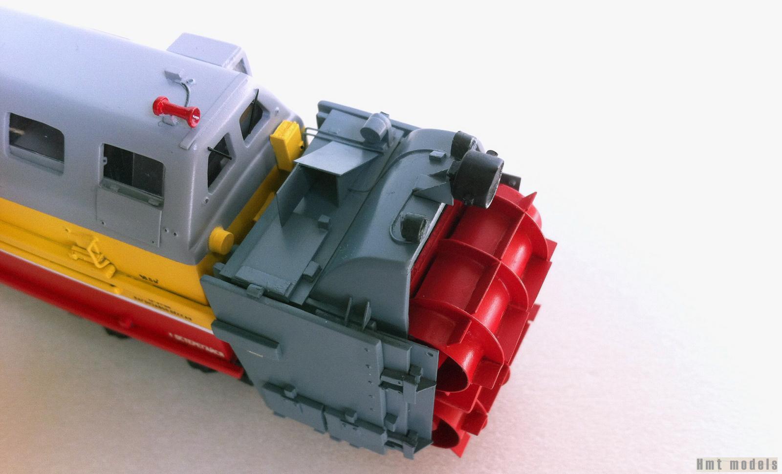 Разновидности: модель выполнена в единственном экземпляре Эпоха: V Принадлежность: РЖД Фирма-производитель: Прийменко В. Год начала производства: 2017 Описание моделиМодель снегоочистителя ЭСО - авторская работа петербургского моделиста Вячеслава Прийменко. Модель выполнена "с нуля", для ее изготовления использованы ПВХ пластик толщиной 1,5 мм, полистирол, медная проволока. Использованы тележки ЦНИИ-Х3О фирмы "Пересвет", на основе которых изготовлена в том числе и трёхосная передняя тележка. Проработаны мелкие детали и интерьеры кабины управления и купе блигады. Описание прототипаСнегоочиститель ЭСО трехроторный электрический с питателями предназначен для очистки железнодорожных путей от снега любой плотности высотой снежного заноса до 4,5 м. (ширина - от 3,5 до 5 м.). Снегоочистительное устройство состоит из двух питателей, ротора, подрезного ножа, рассекателя, основных крыльев и подкрылков. Питатель представляет собой барабан с лопатками, на концах которых укреплены ножи. Выброс снега производится в сторону от очищаемых путей. Скорость движения машины при высоте снежного заноса 4,5 м составляет 0,5 км/ч. Мощность электродвигателей 960 кВт. Численность обслуживающего персонала 2 чел. Производился Кировским машиностроительным заводом имени Первого Мая. В Новосибирском музее ж.д. техники (ст. Сеятель) экспонируется роторный снегоочиститель ЭСО 1960 г.выпуска.
